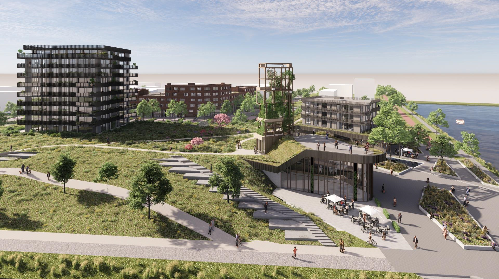 Welkom in het nieuwe centrum van de wijk De Groote Wielen! Hier, in het kloppend hart van de wijk kun je straks wonen, je boodschappen doen, een rondje wandelen langs de kade en genieten van een hapje en drankje op het terras aan het water. Ook voor een bezoek aan je huisarts of fysiotherapeut kun je er terecht in het nieuwe gezondheidscentrum.