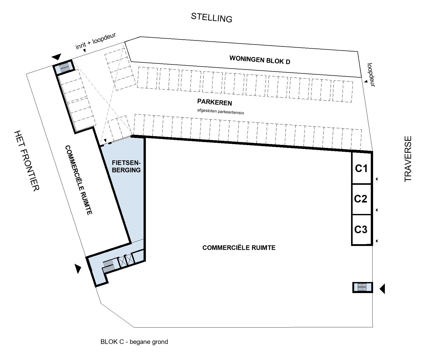Parkeren van je auto kan op het grotendeels overdekte parkeerterrein aan de binnenzijde van het plan. Ook is er een gemeenschappelijke fietsenberging aanwezig.