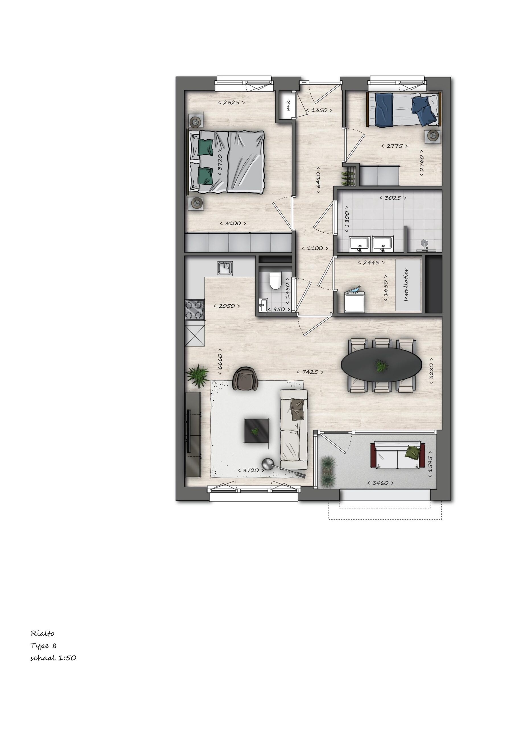 - 2 slaapkamers