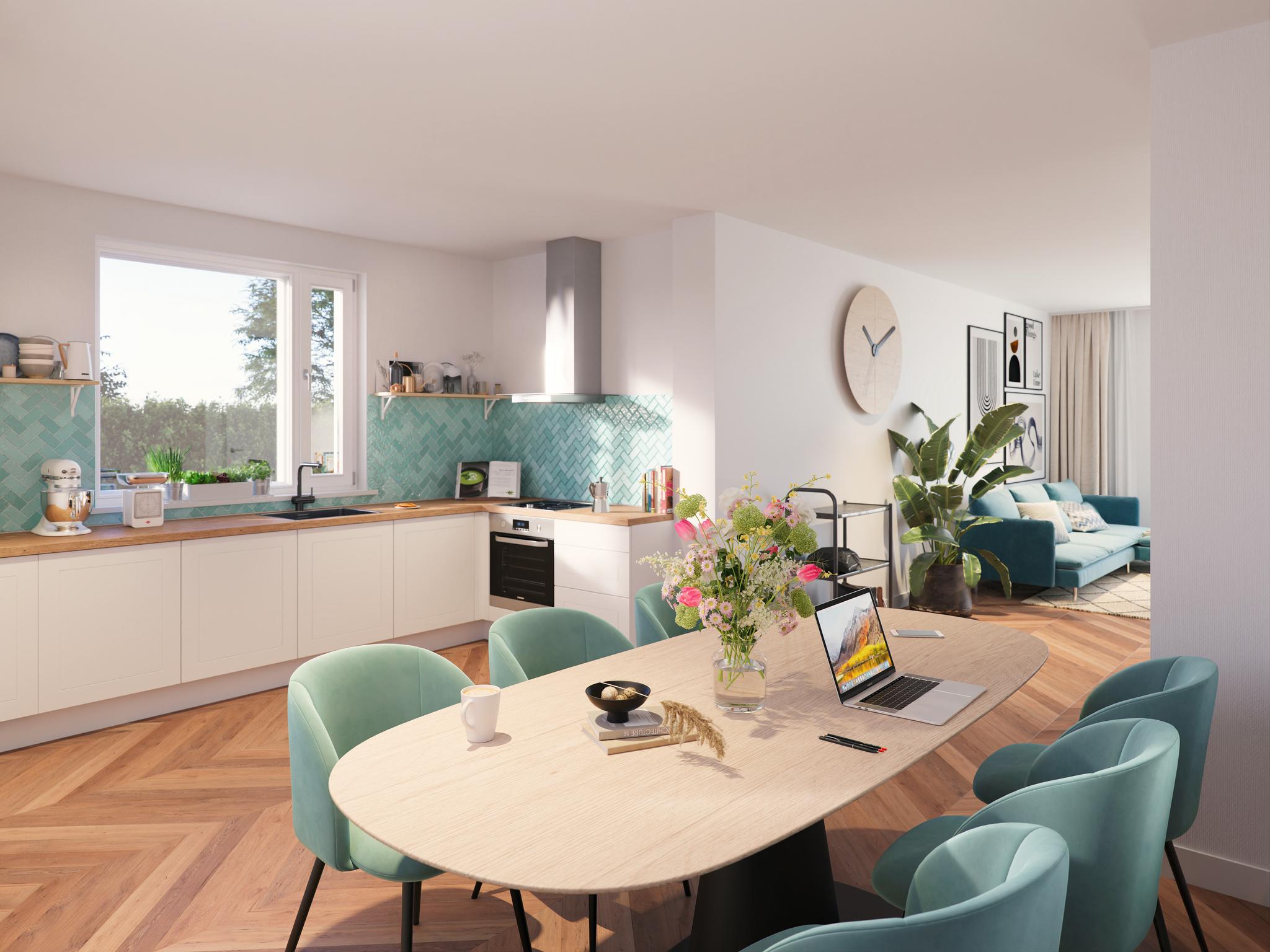 Niet alleen je woonomgeving is groen, maar ook je woning zelf. Alle woningen voldoen aan de BENG-norm (Bijna Energie Neutraal Gebouw) en worden als eerste woningen in de wijk De Groote Wielen voorzien van een bodemwarmtepomp en voorzien van voldoende zonnepanelen. Dit betekent dat je geen last hebt van de sterk stijgende gasprijzen.