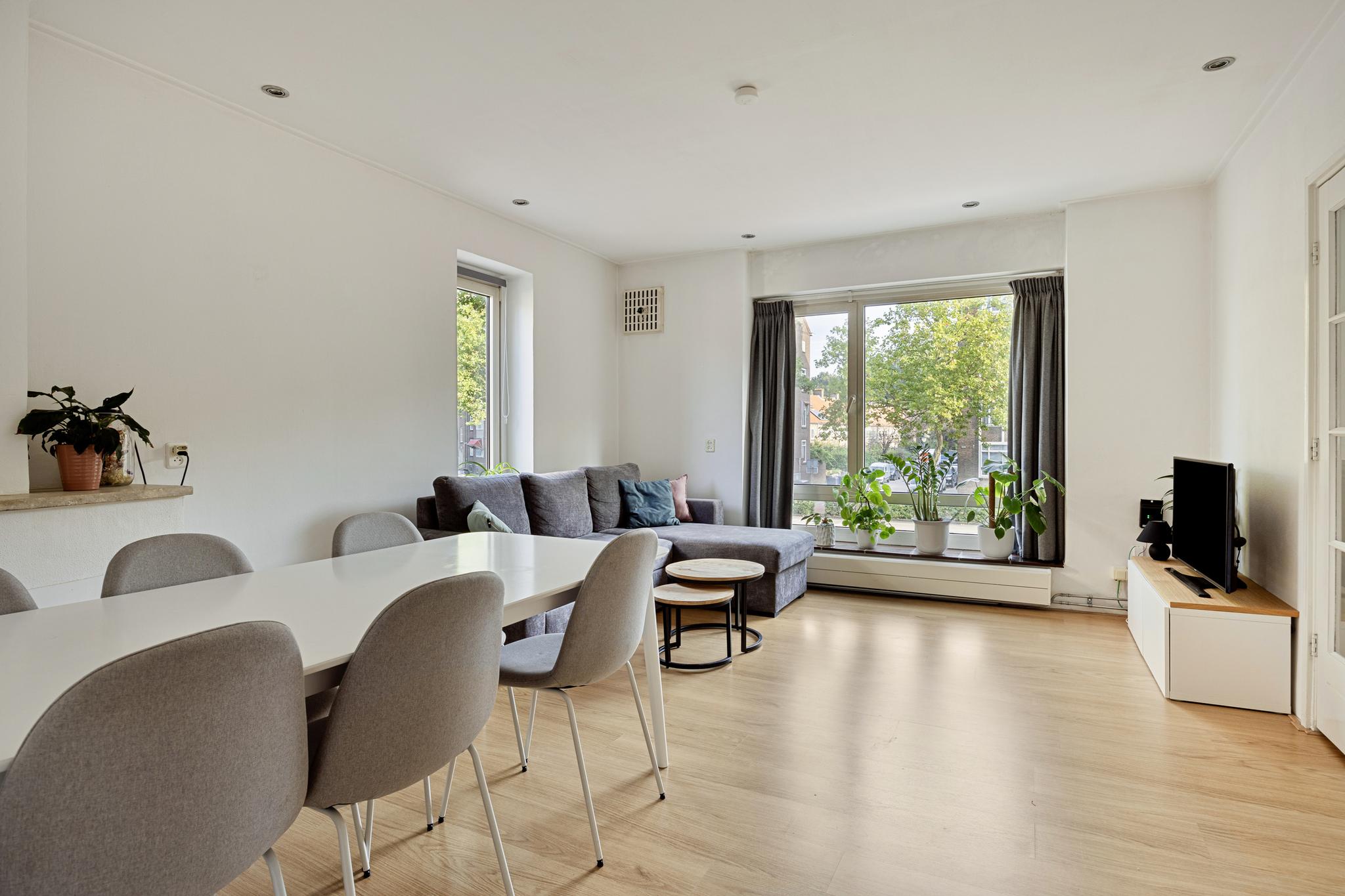 Je betreedt het pand via een goed onderhouden portiekhal en neemt de trap naar de eerste verdieping, waar je het appartement kunt betreden. Bij binnenkomst in de hal heb je toegang tot het toilet, de meterkast en de badkamer. Via de hal kom je in de lichte woonkamer met een laminaatvloer en inbouwspots.