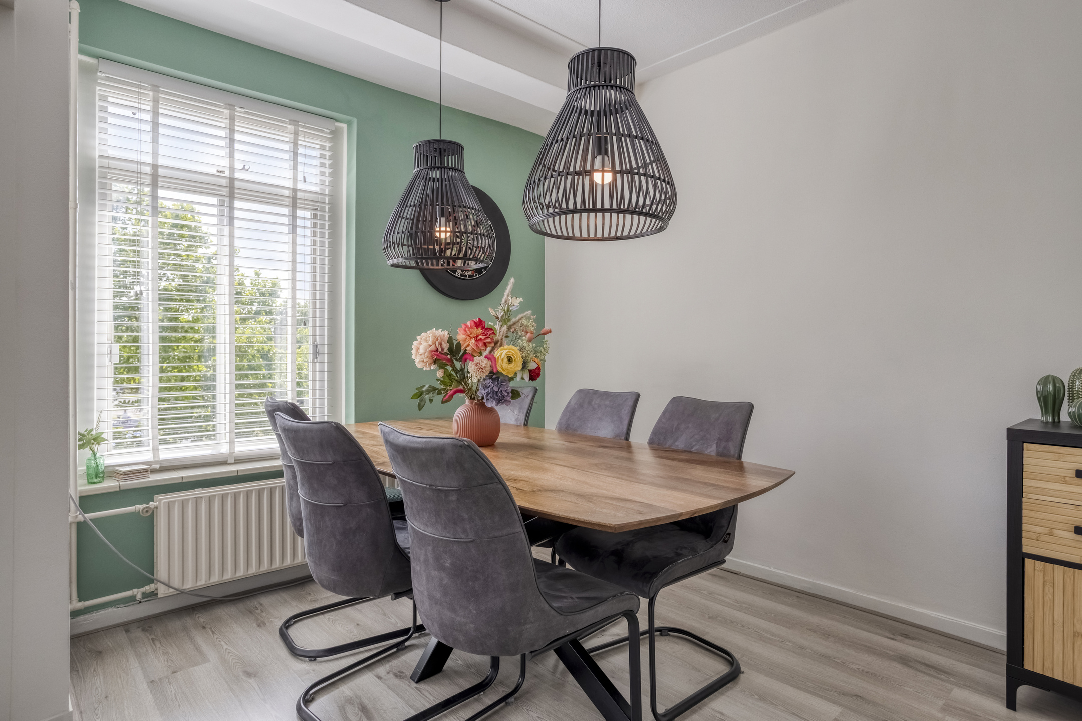 – de eetkamer grenst direct aan de woonkamer en biedt ruimte voor een grote eettafel, ideaal voor gezellige diners of werk aan huis;