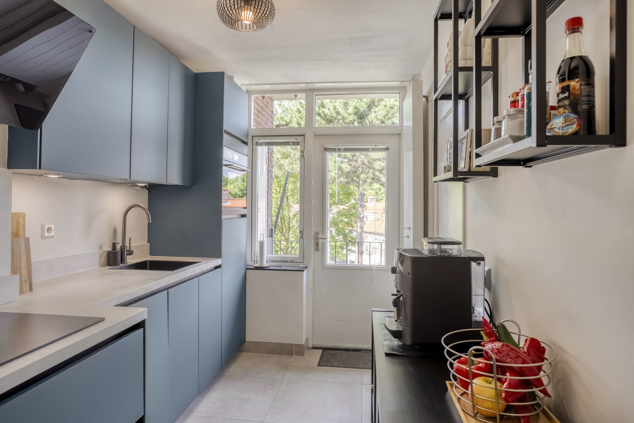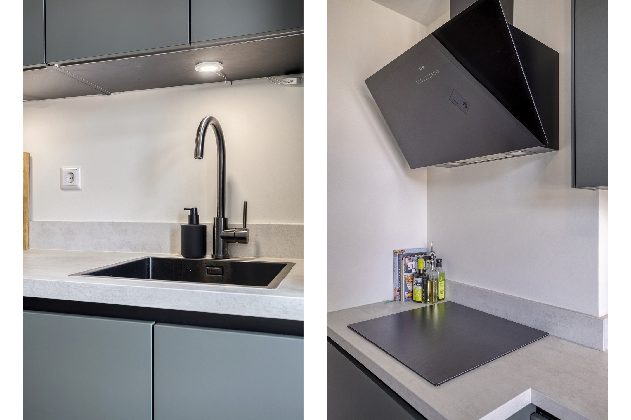– de moderne keuken is in 2023 vernieuwd en voorzien van moderne, greeploze kasten, een inductiekookplaat, afzuigkap, oven, koelkast en een vaatwasser;