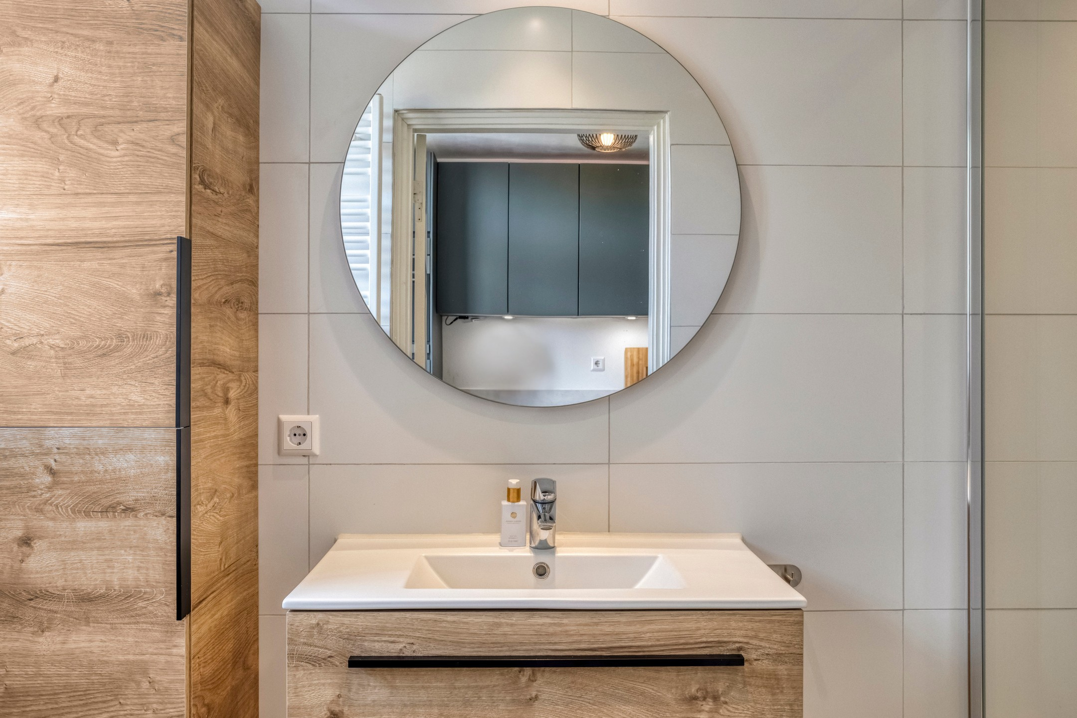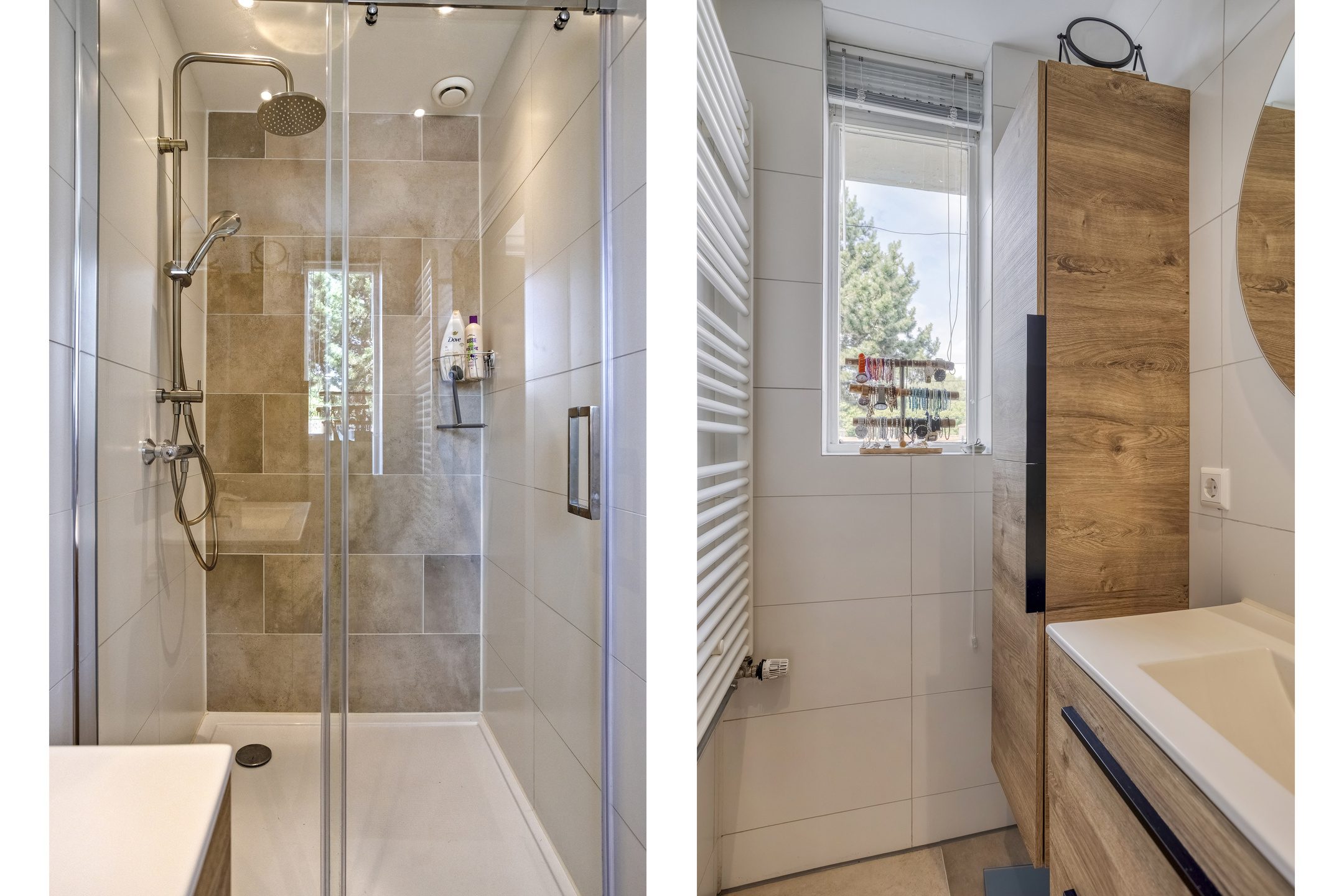– de badkamer (2023) is geheel gemoderniseerd en uitgevoerd met een inloopdouche met regendouche, een wastafelmeubel met spiegel en modern tegelwerk;