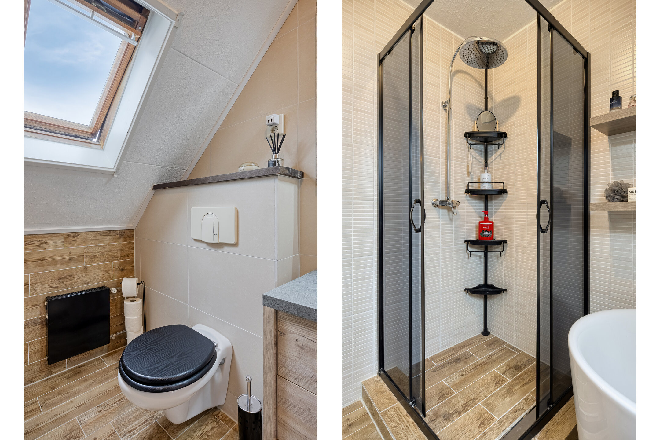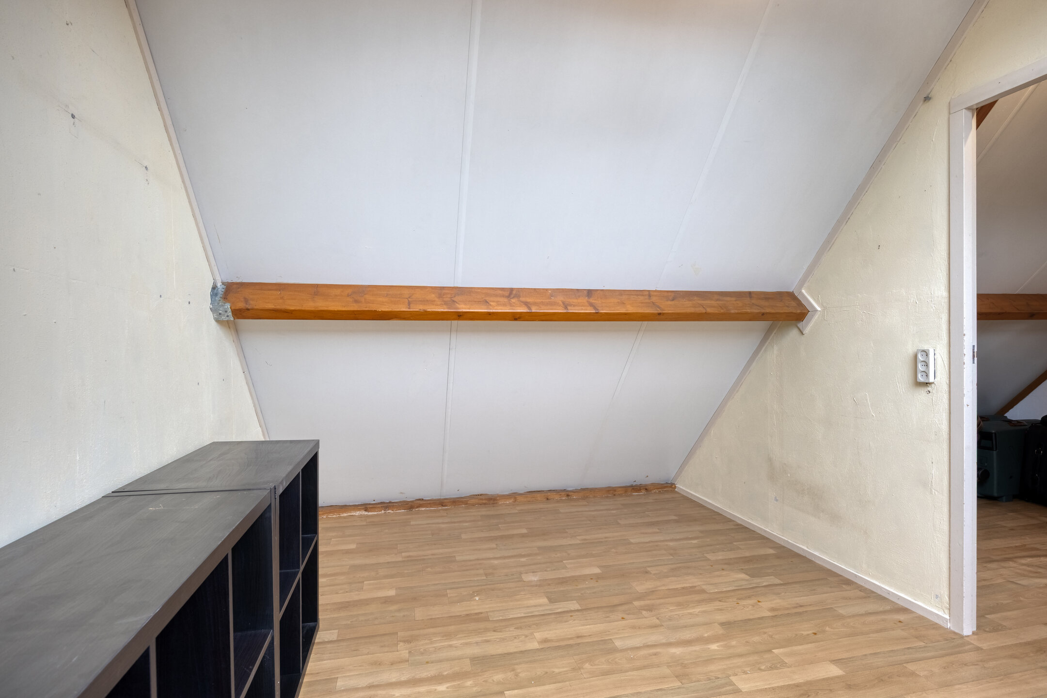 – op de tweede verdieping een vierde slaapkamer is gerealiseerd met dakraam, nette afwerking en extra bergruimte achter de knieschotten;