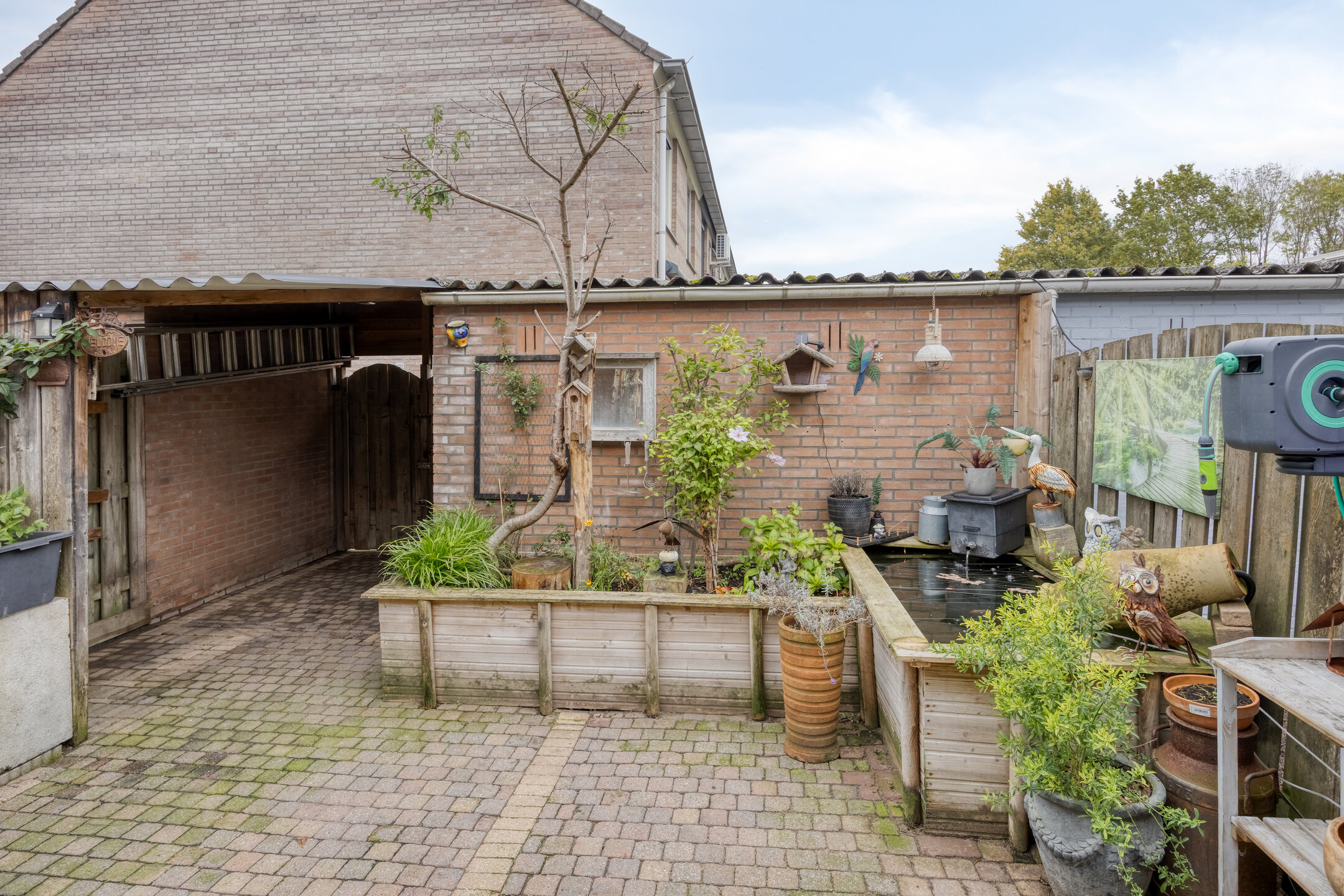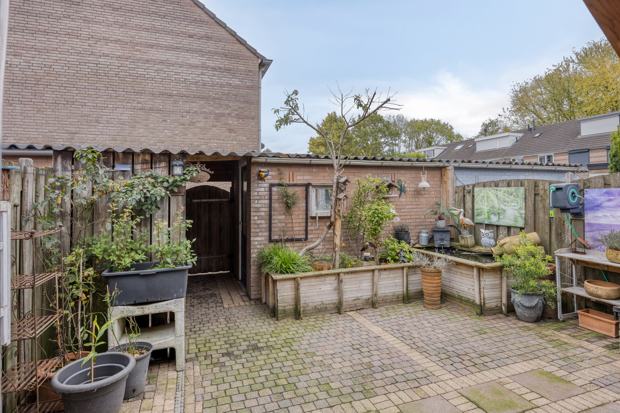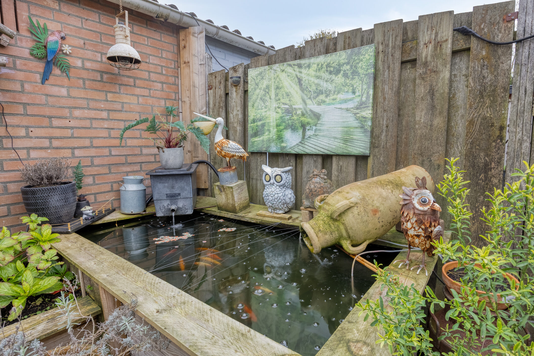 – de ruime achtertuin op het noordoosten onderhoudsvriendelijk is aangelegd en beschikt over een stenen berging en een sfeervolle houten overkapping met houtkachel, waar je zowel in de zomer als in de koelere maanden heerlijk kunt zitten;