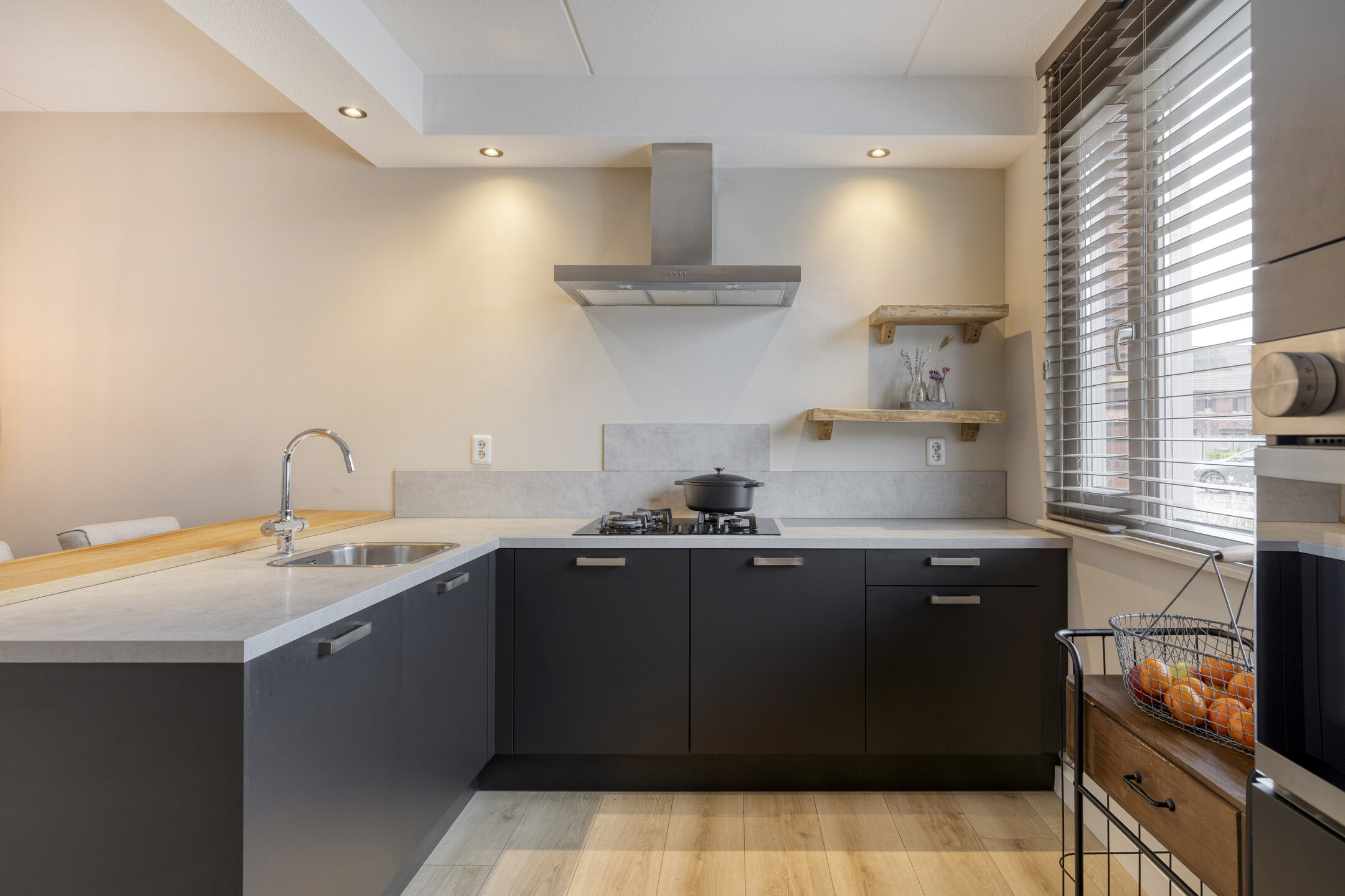 – de gehele woning strak is afgewerkt met laminaatvloeren en neutrale tinten;