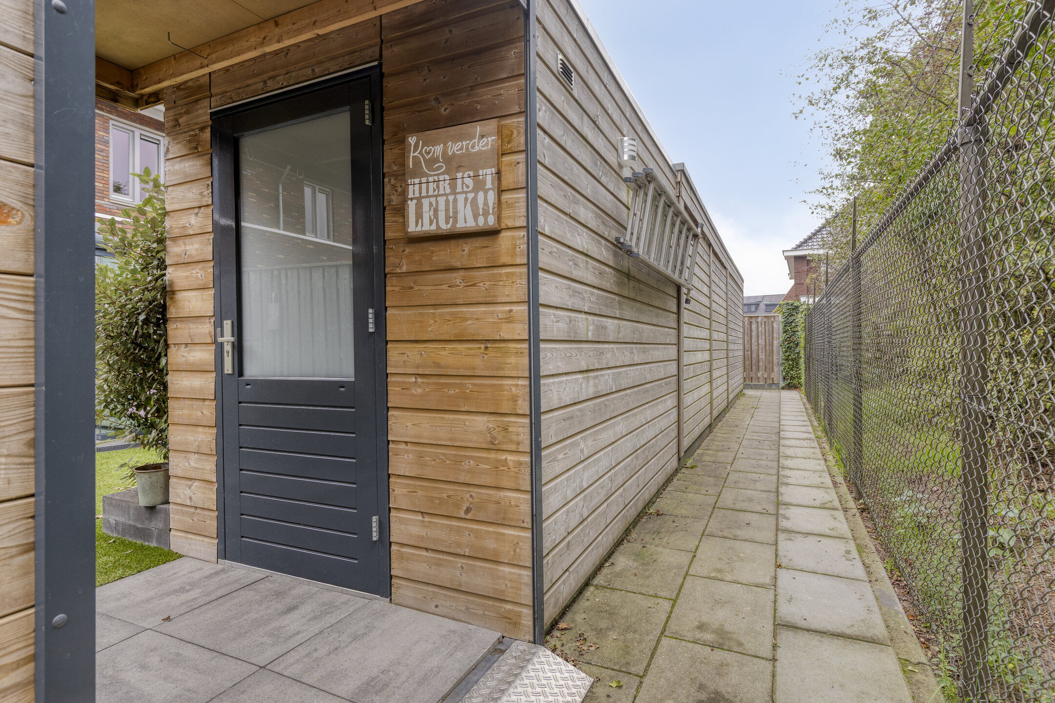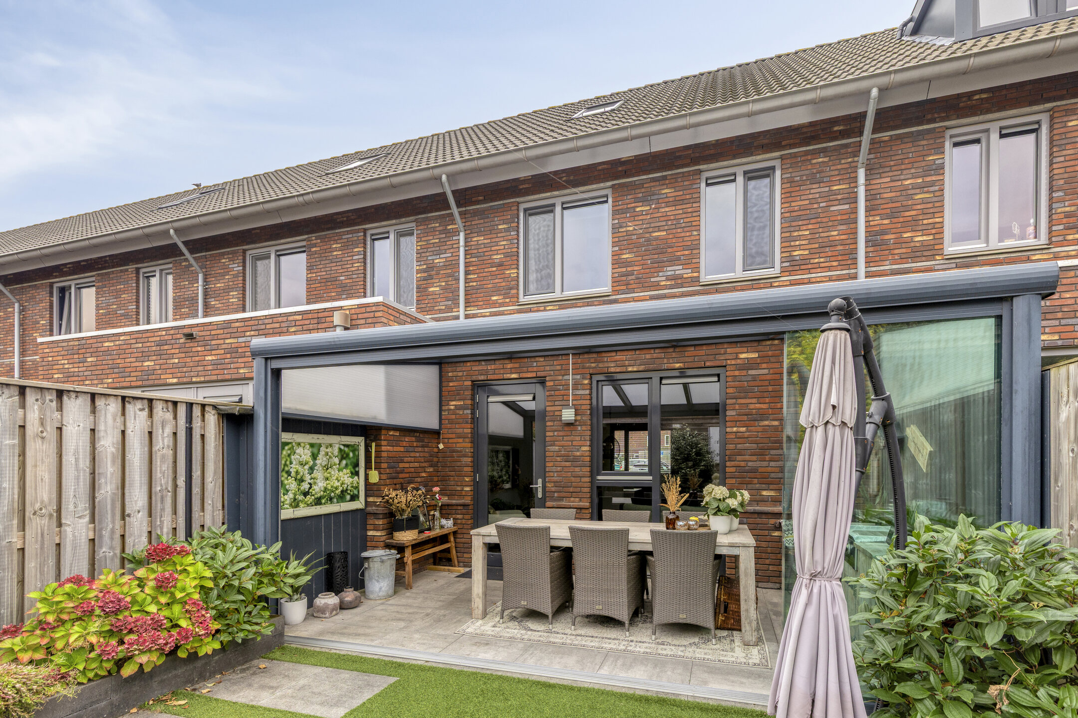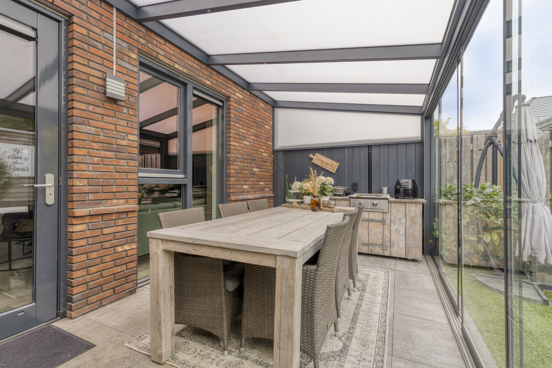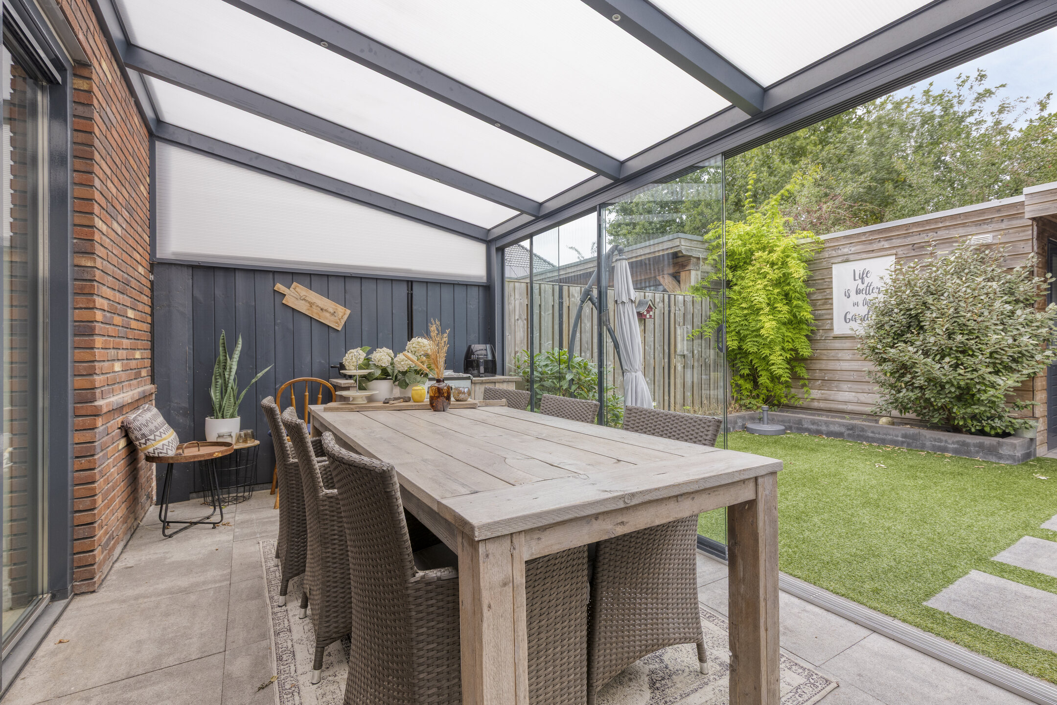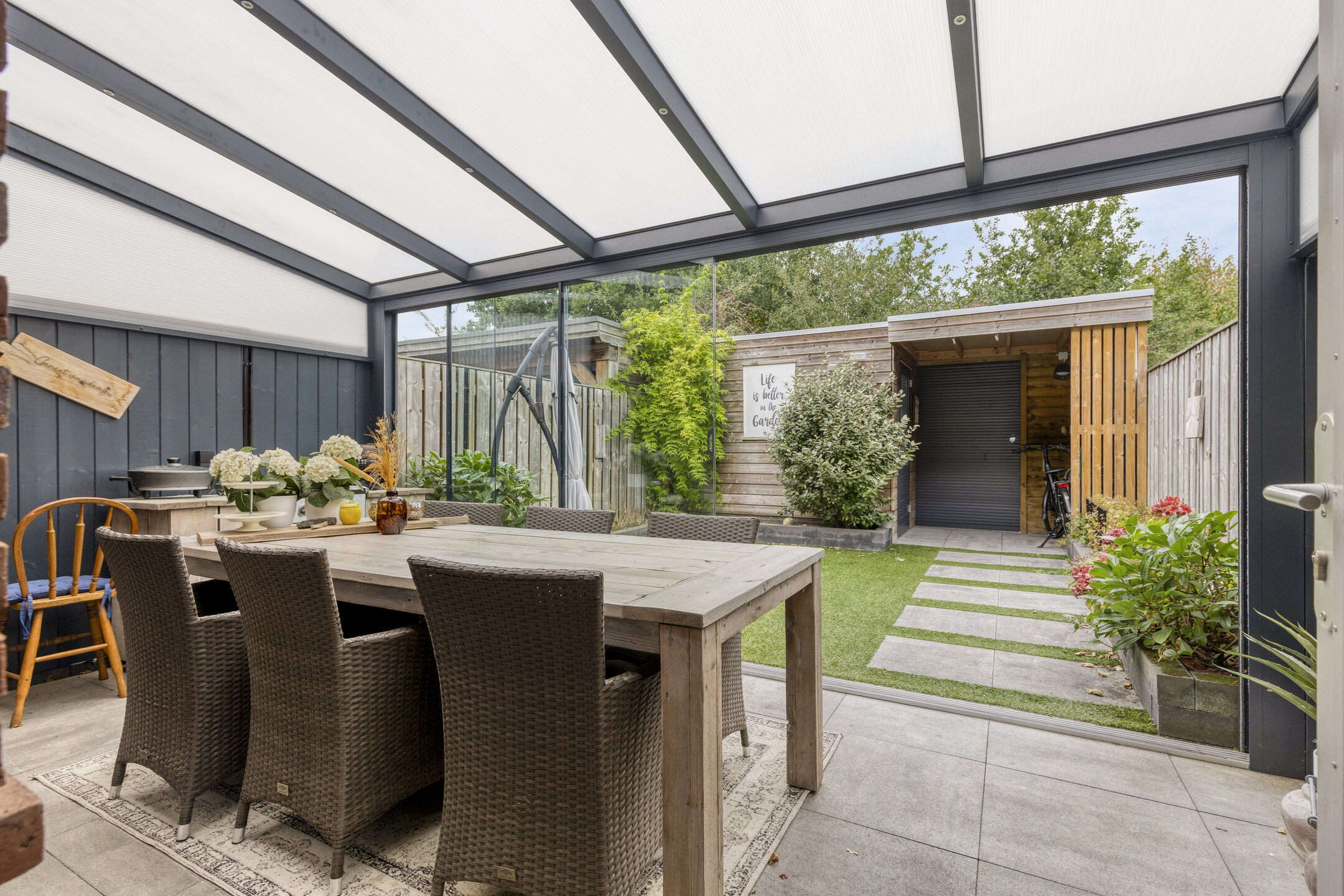 – de aluminium overkapping (afsluitbaar met een glazen schuifwand) aan de achterzijde vormt een verlengstuk van de woonkamer en een fijne plek biedt om het hele jaar door te genieten van het buitenleven;