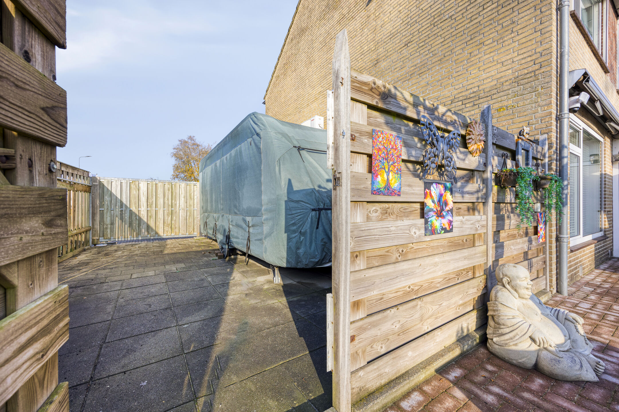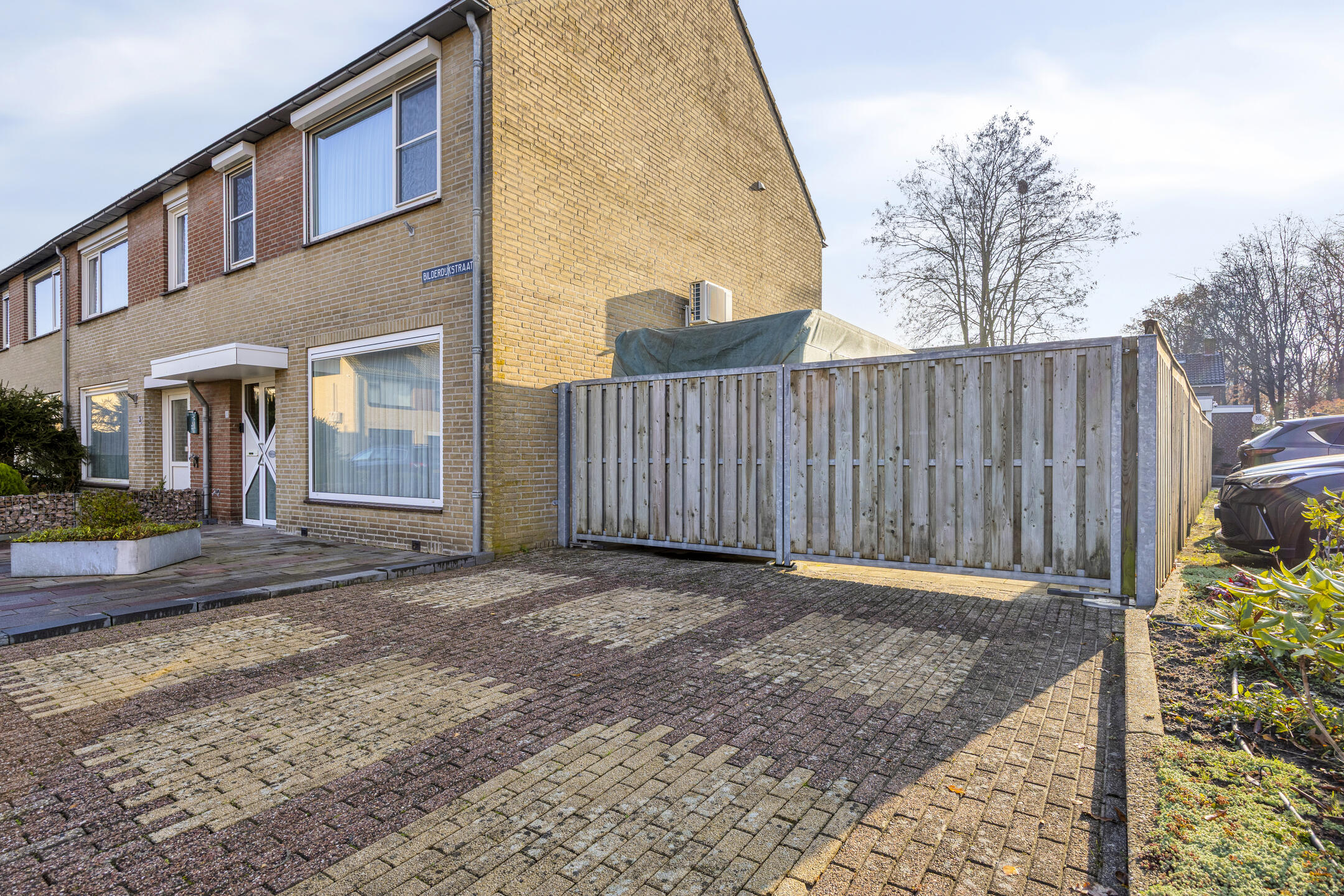 – er is een ruime, dubbele oprit aanwezig voor het parkeren van zeker 4 auto’s. Je kunt er ook voor kiezen om hier een caravan of boot te stallen;