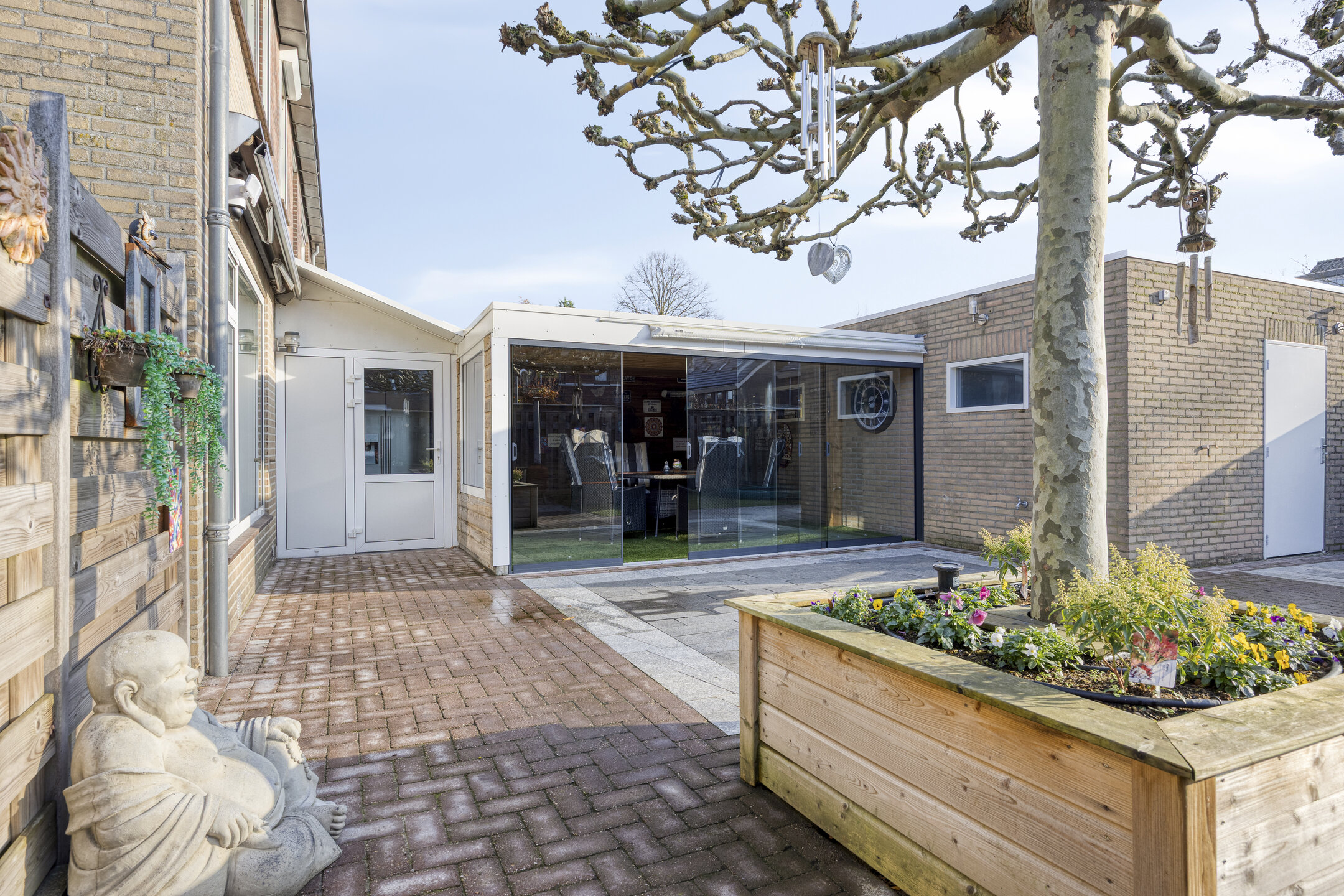 – in de tuin is een fraaie tuinkamer gerealiseerd, een heerlijke plek om het hele jaar door te zitten;