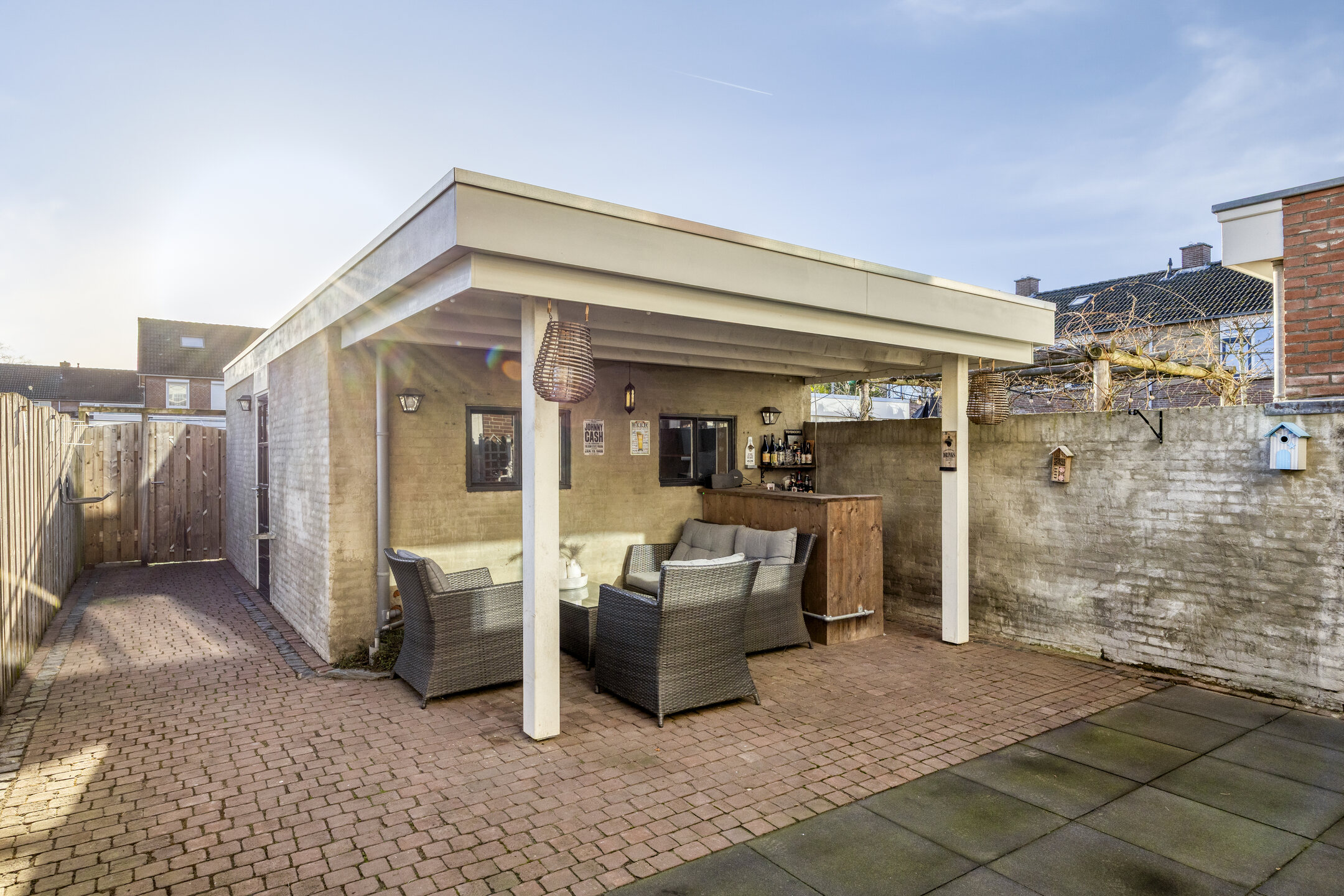 – de onderhoudsvriendelijke achtertuin op het zuidwesten is aangelegd met een terras en een sfeervolle overkapping, ideaal om het hele jaar door buiten te genieten;