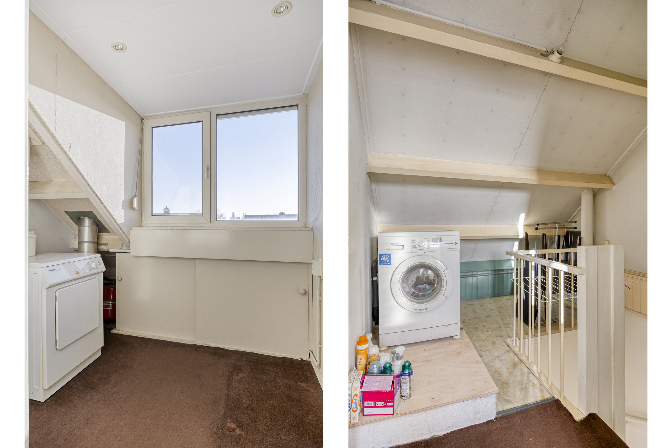 – op de overloop bevindt zich het aansluitpunt voor de wasmachine;