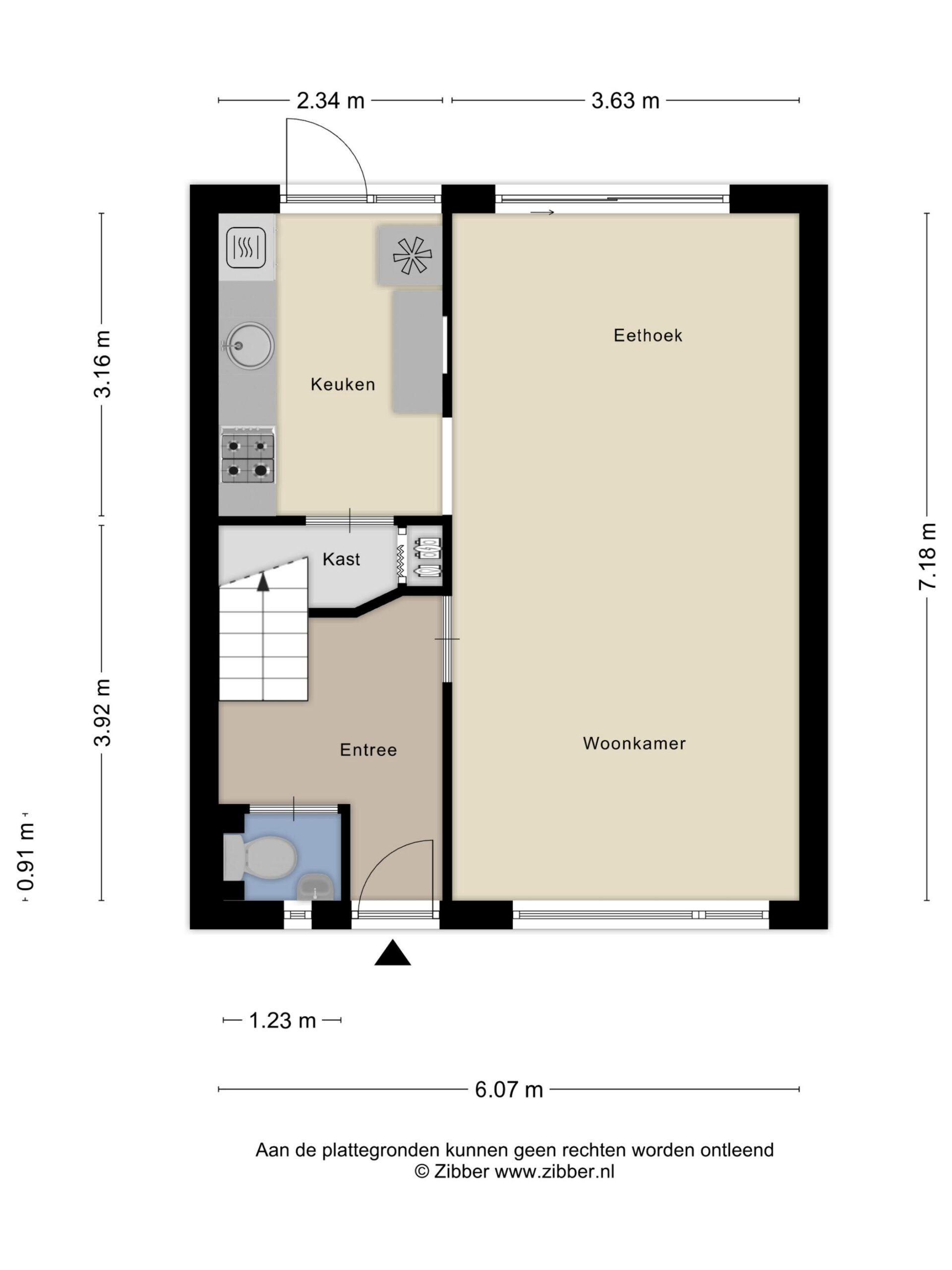 – de hal toegang biedt tot de toiletruimte, trapopgang en de woonkamer;