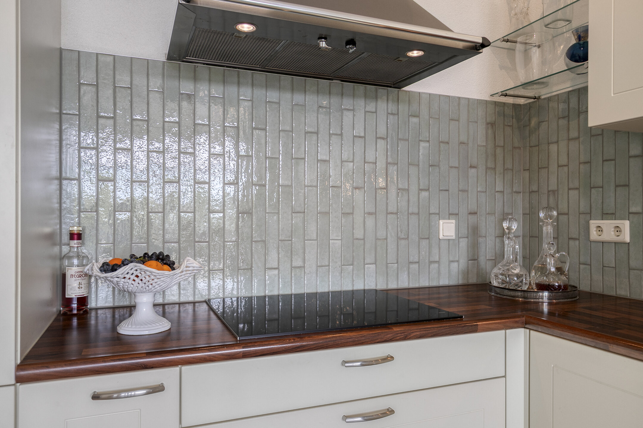 – de open keuken, in hoekopstelling, is voorzien van veel bergruimte (waaronder een apothekerskast) en inbouwapparatuur, te weten: een inductie kookplaat, afzuigkap, koel-/vriescombinatie, combi-oven en een vaatwasser;
