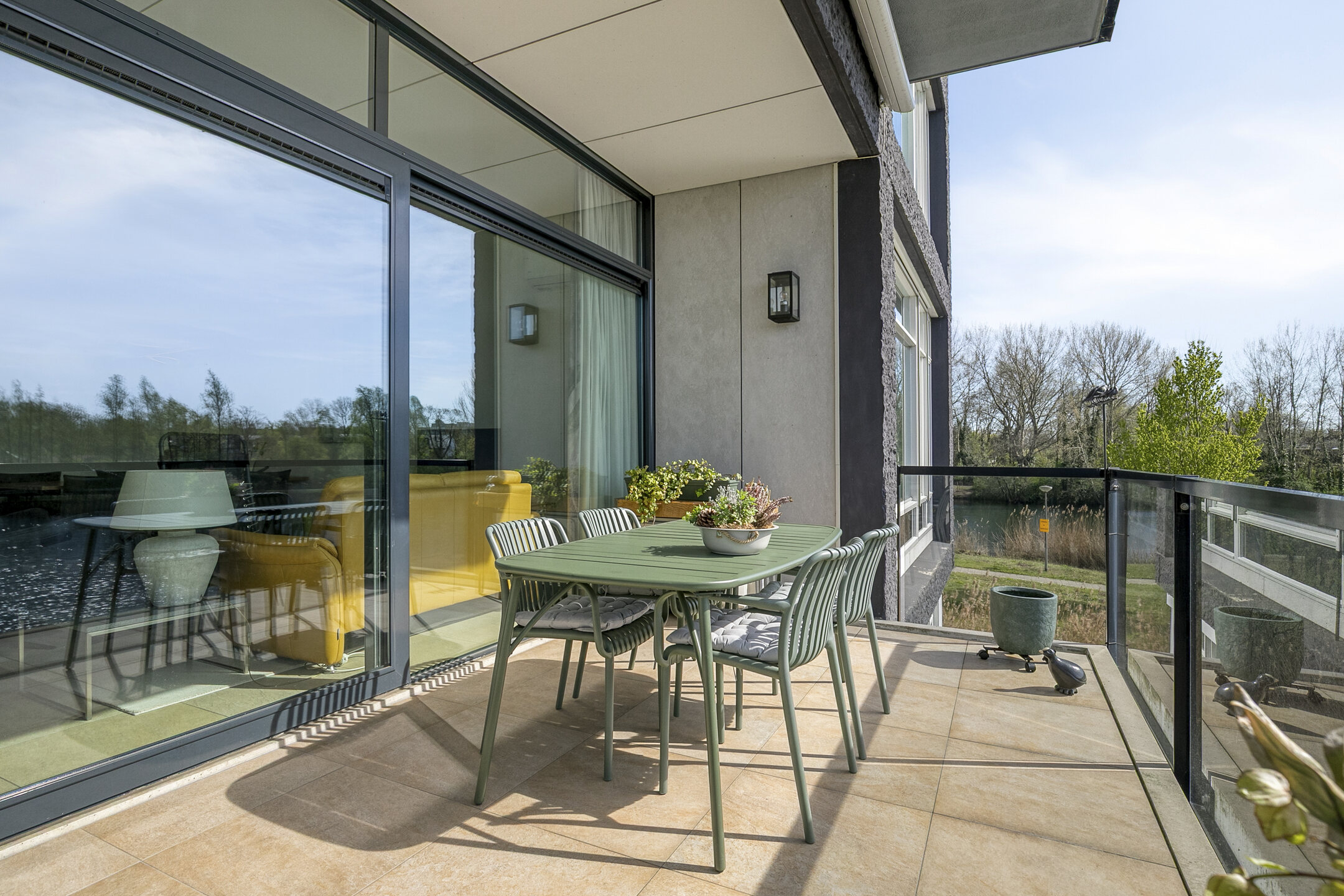 – u via een schuifpui het balkon bereikt waardoor u het binnen bij het buiten betrekt en andersom. Een prachtig verlengstuk van de woonkamer;