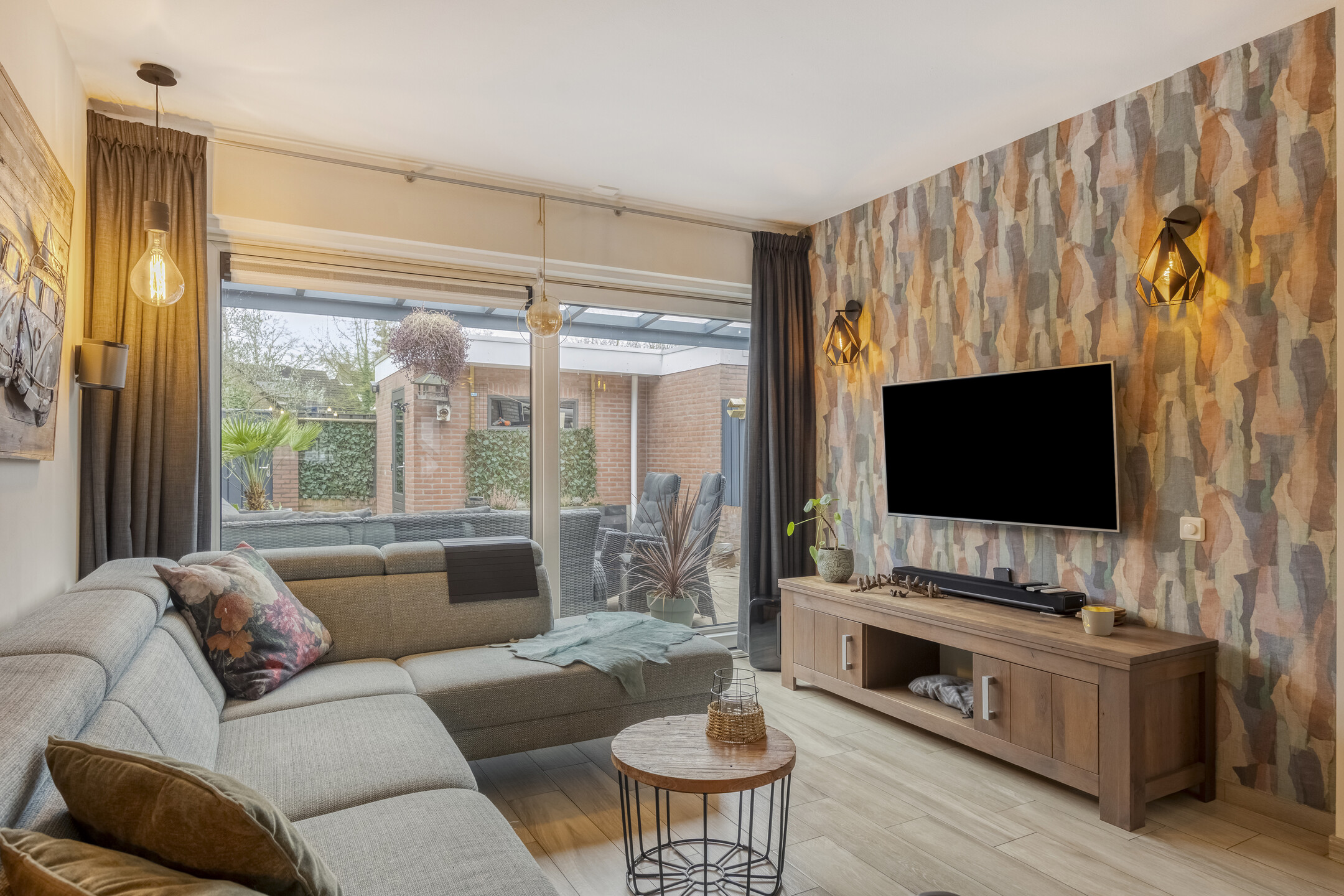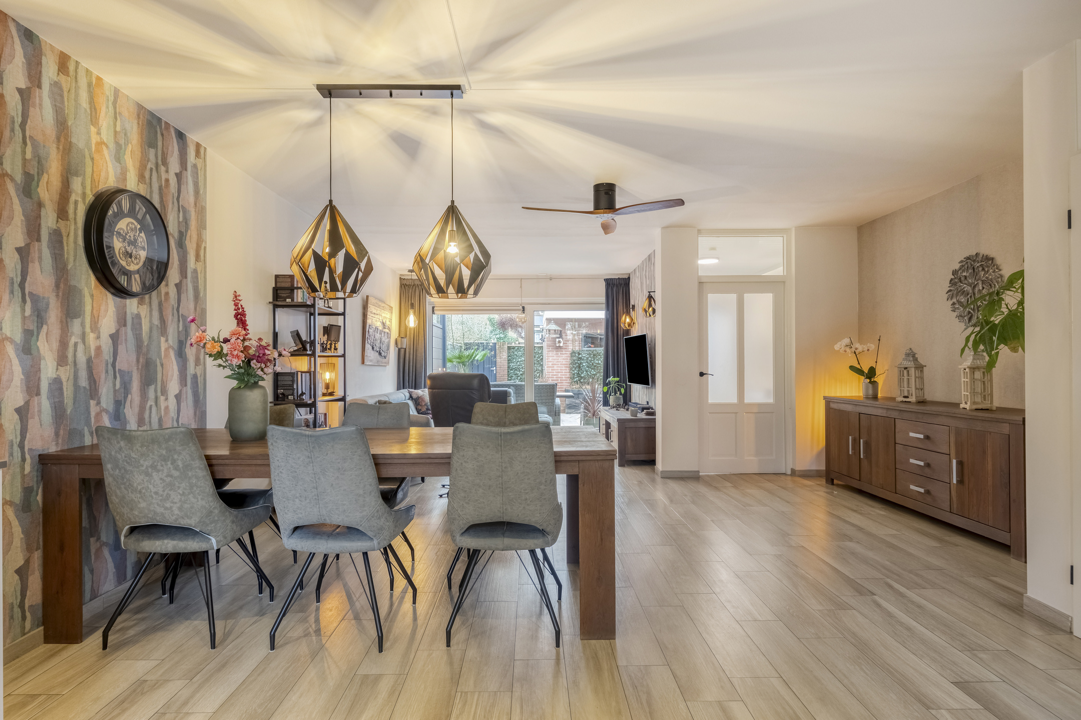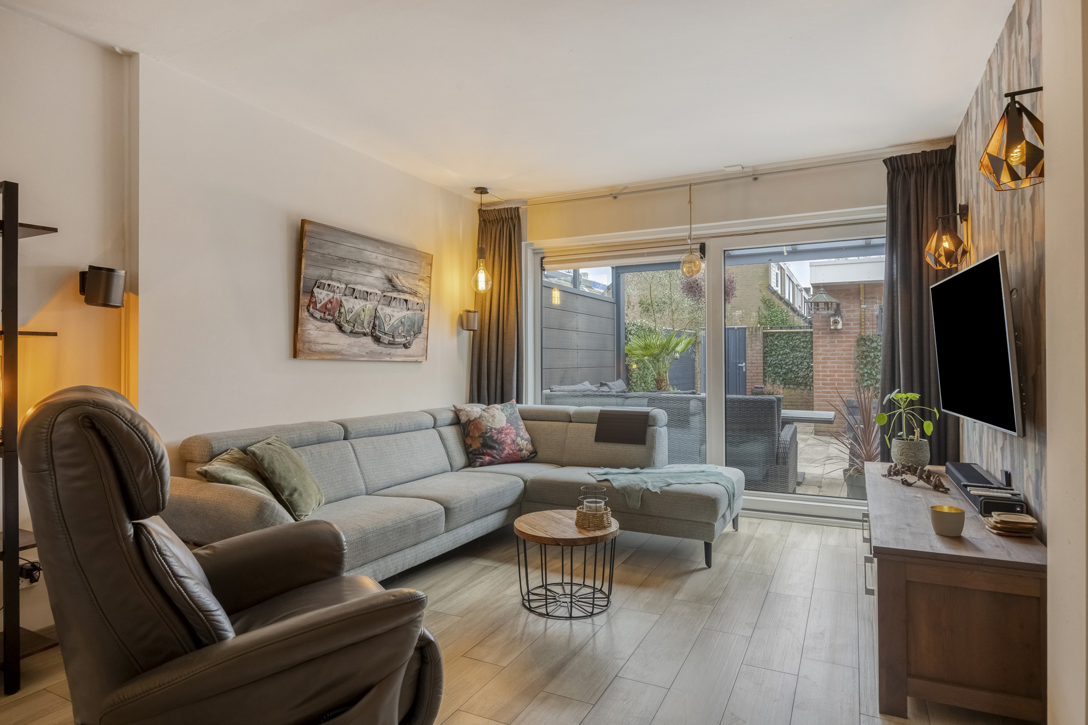 – de ruime woonkamer is tuingericht en beschikt over een moderne tegelvloer met vloerverwarming en grote raampartijen die zorgen voor prettig daglicht;