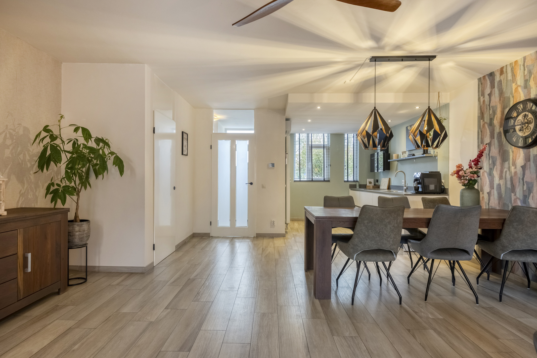 – de begane grond is afgewerkt met strak gestucte wanden en een onderhoudsvriendelijke vloer;