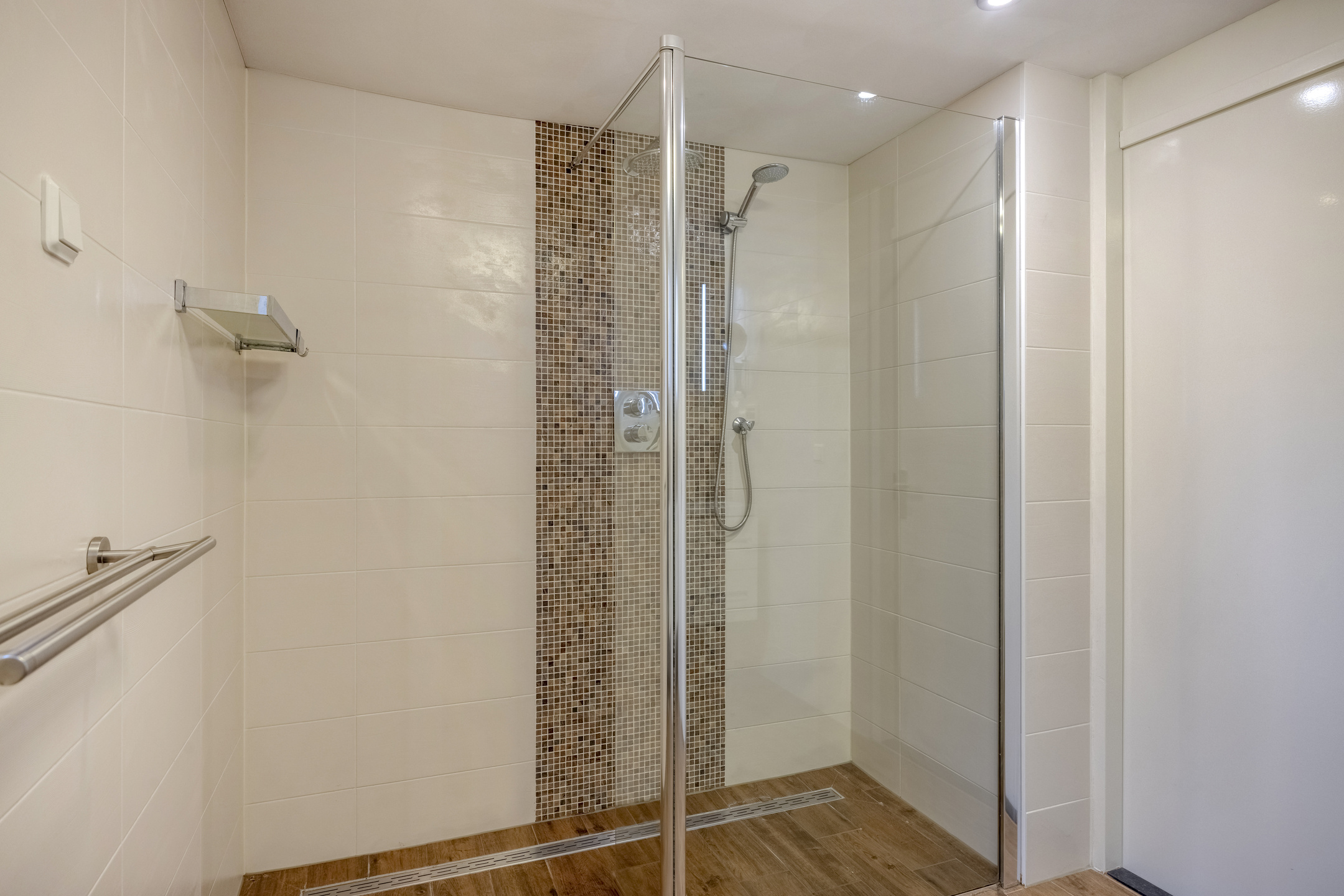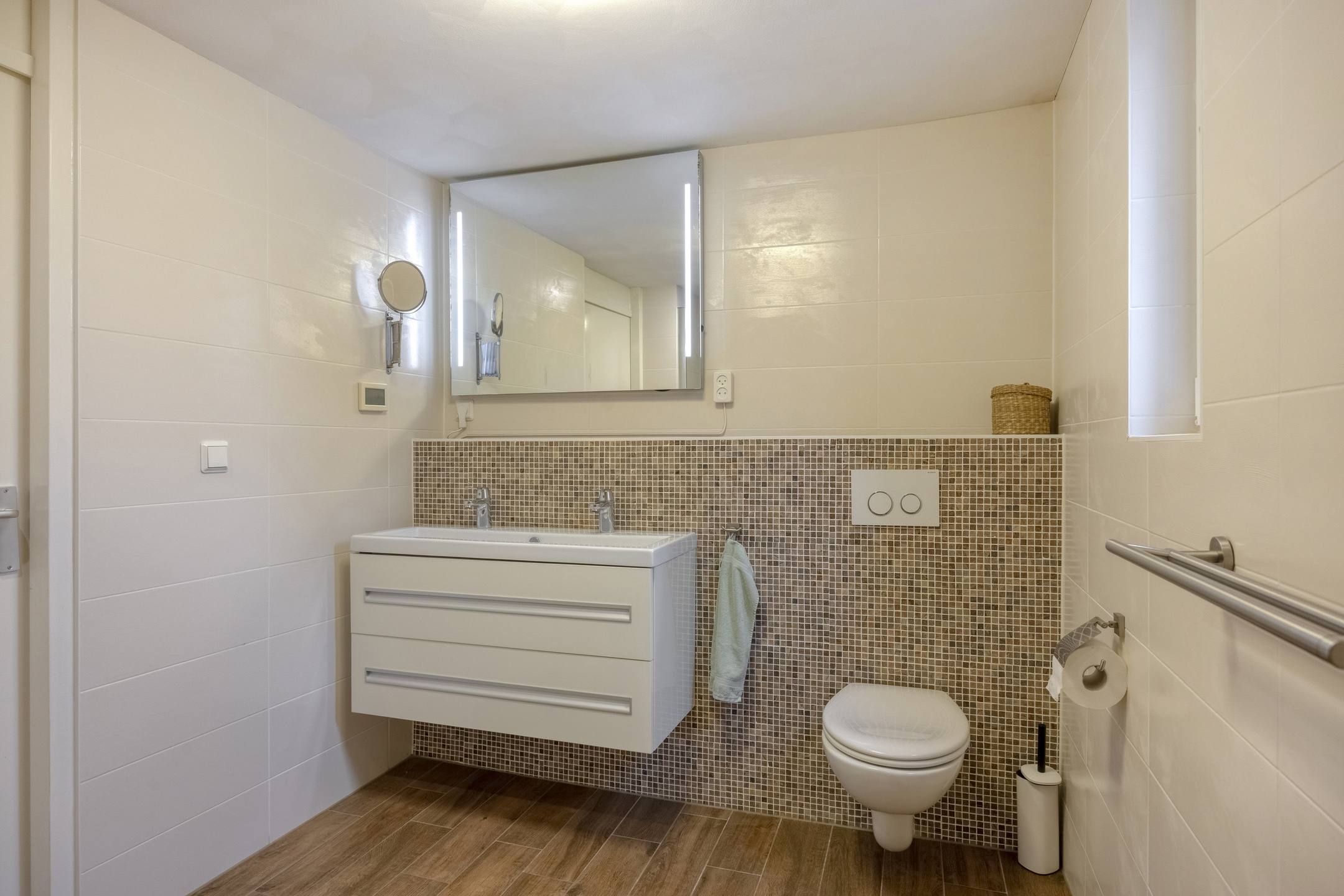 - Badkamervoorzieningen Toilet, dubbele wastafel, inloopdouche, vloerverwarming