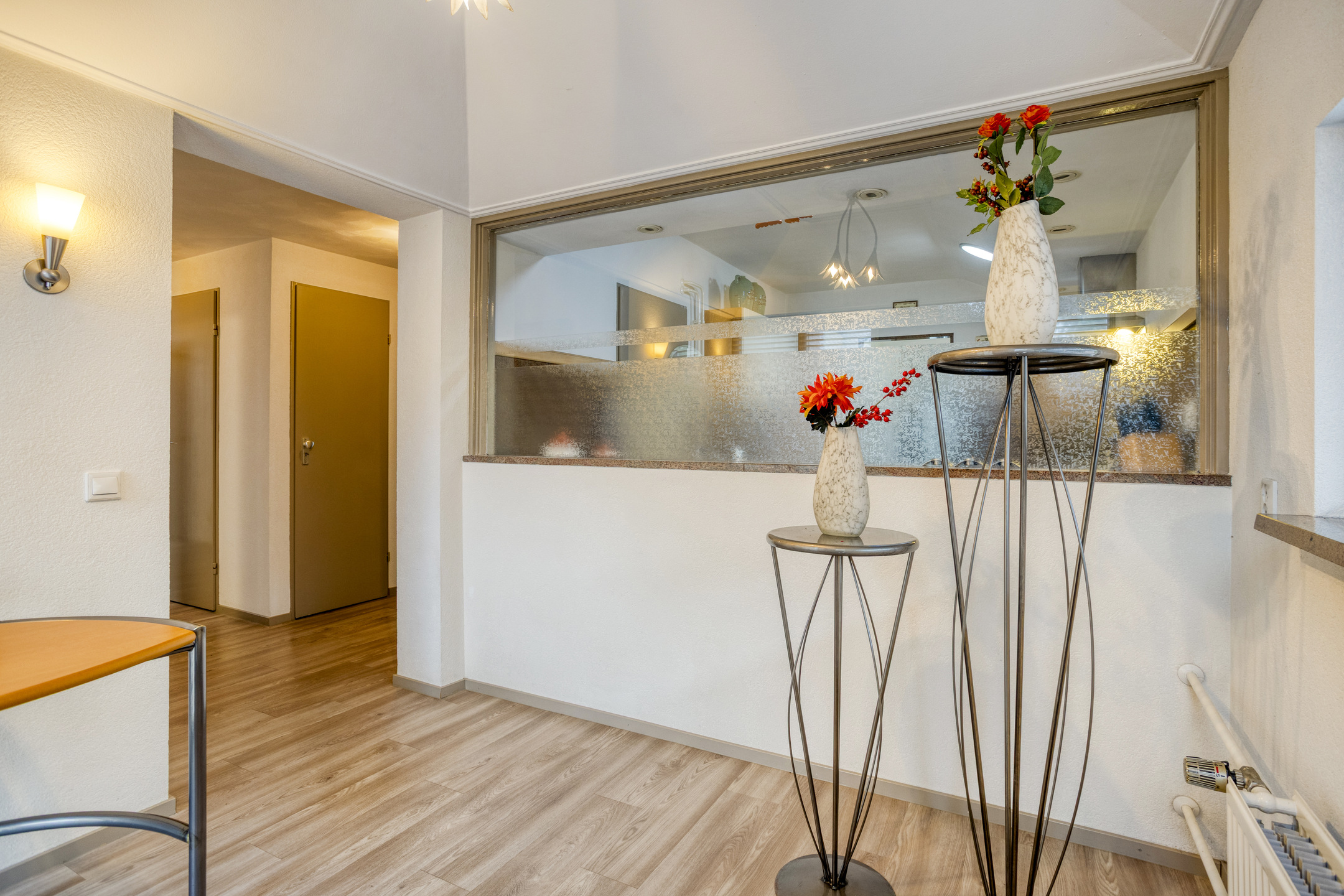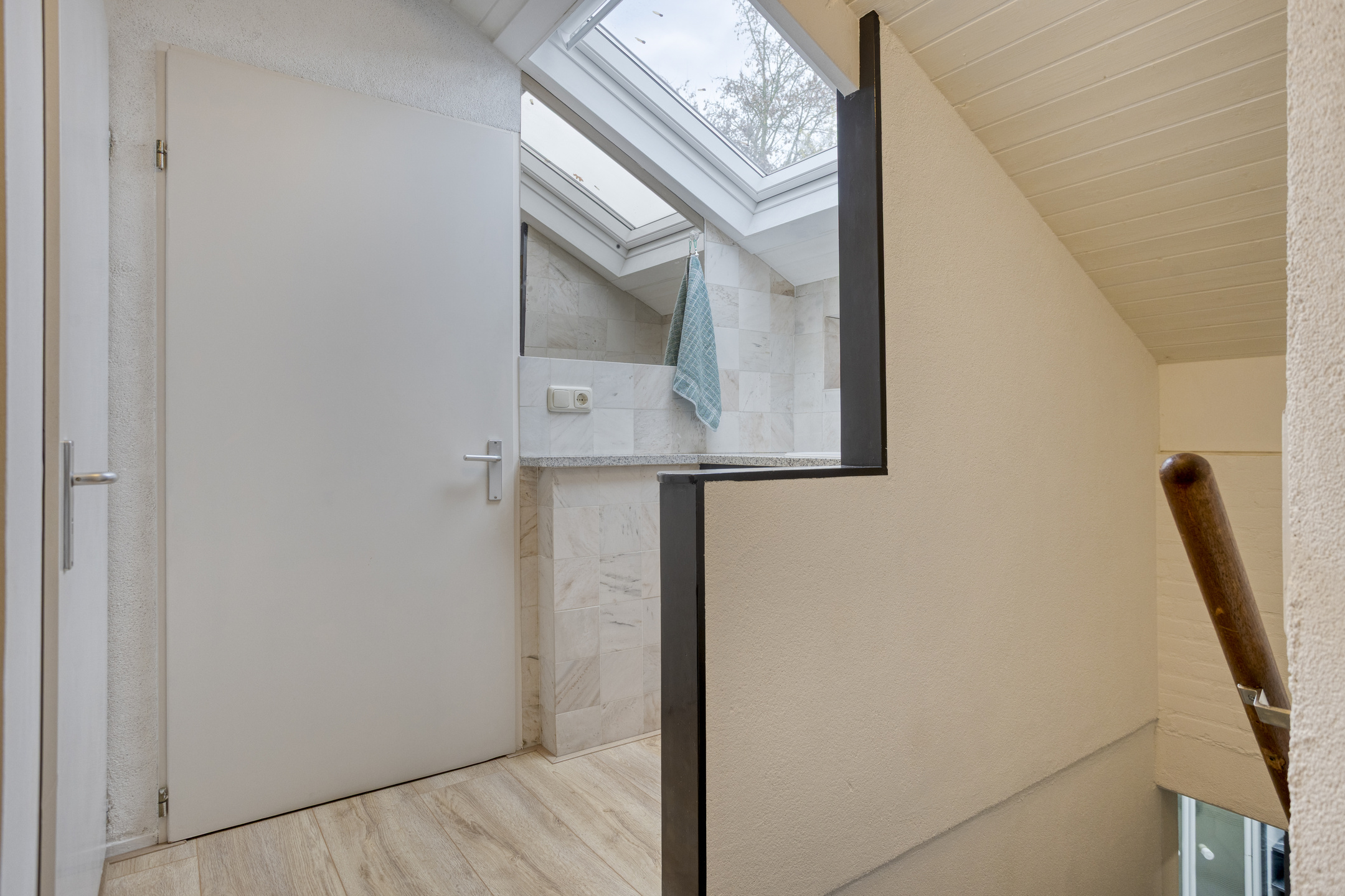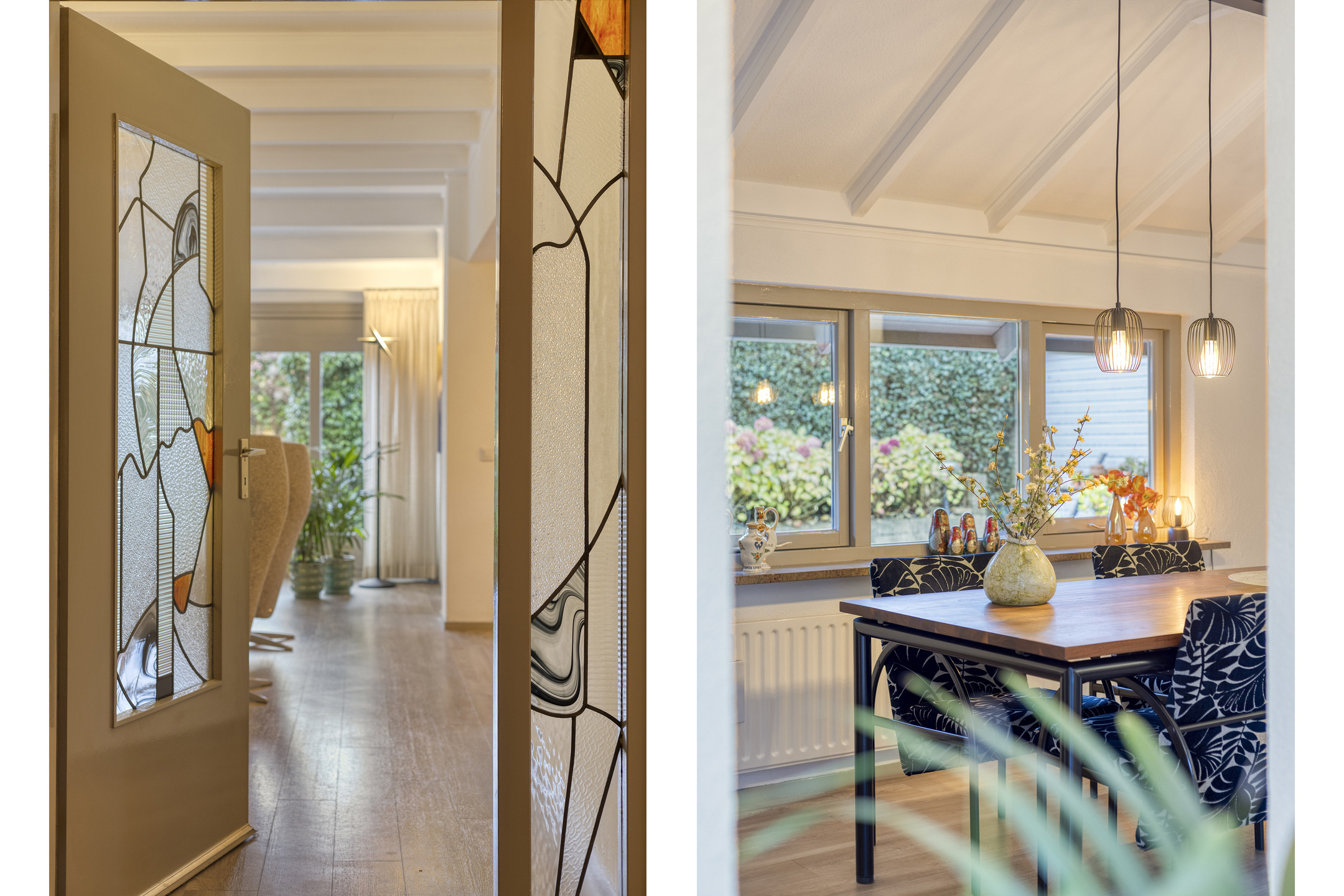 – het doorkijkraam tussen keuken en hal zorgt voor extra lichtinval én een speelse verbinding tussen de ruimtes, waardoor de woning een prettige open sfeer heeft;