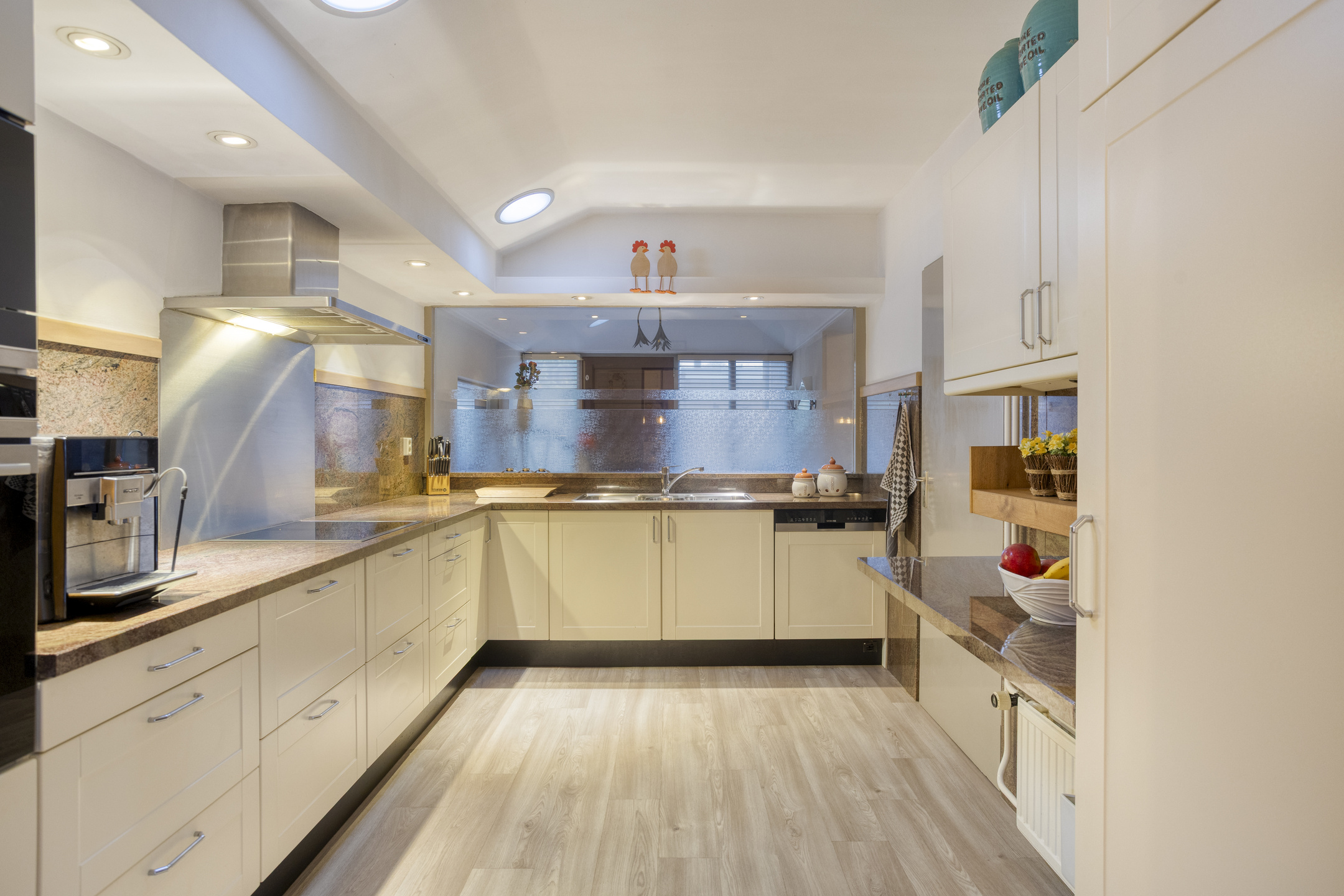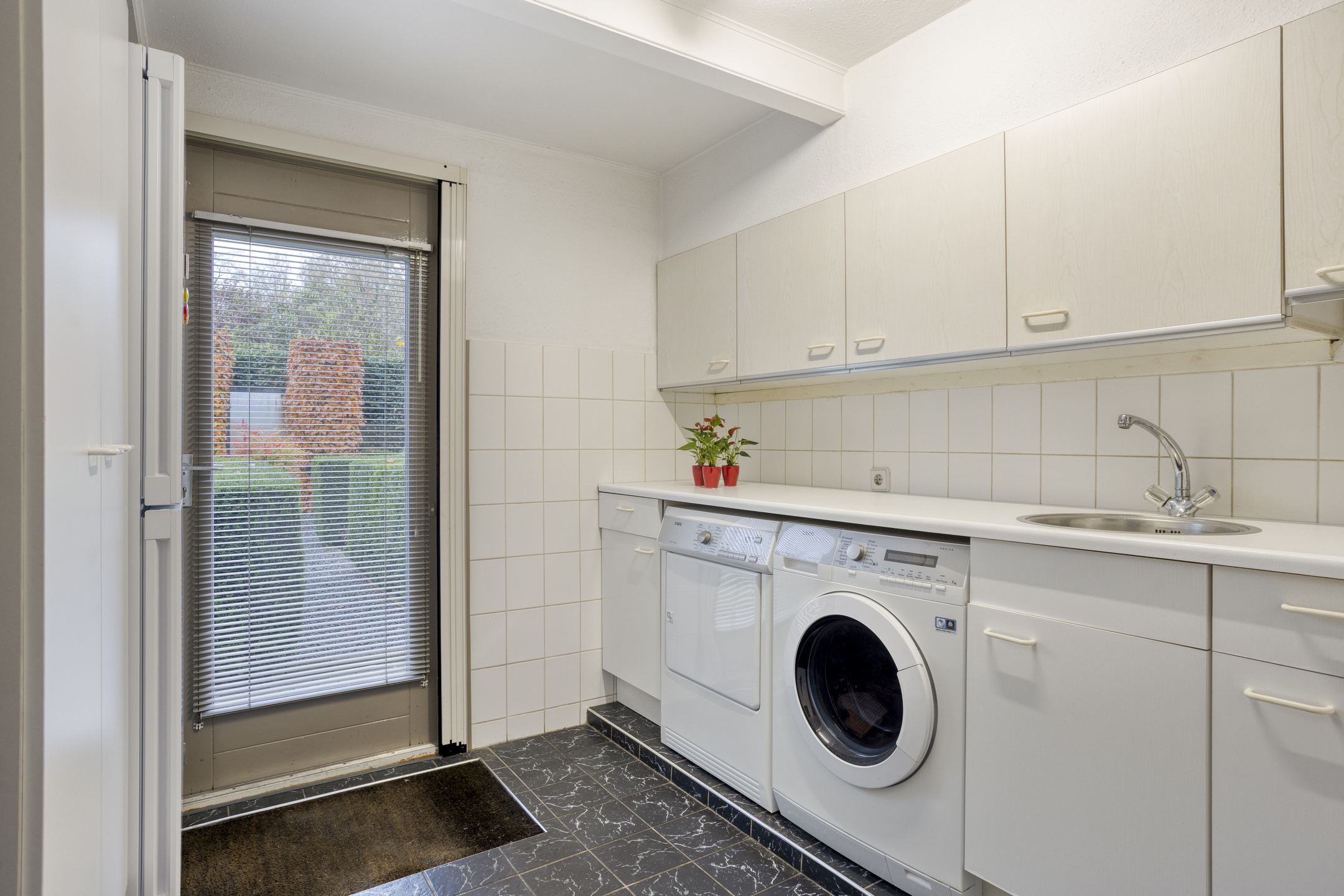 – de bijkeuken een zeer praktische ruimte is met een tweede werkblad, wasapparatuur, extra kastruimte en een deur naar de tuin;