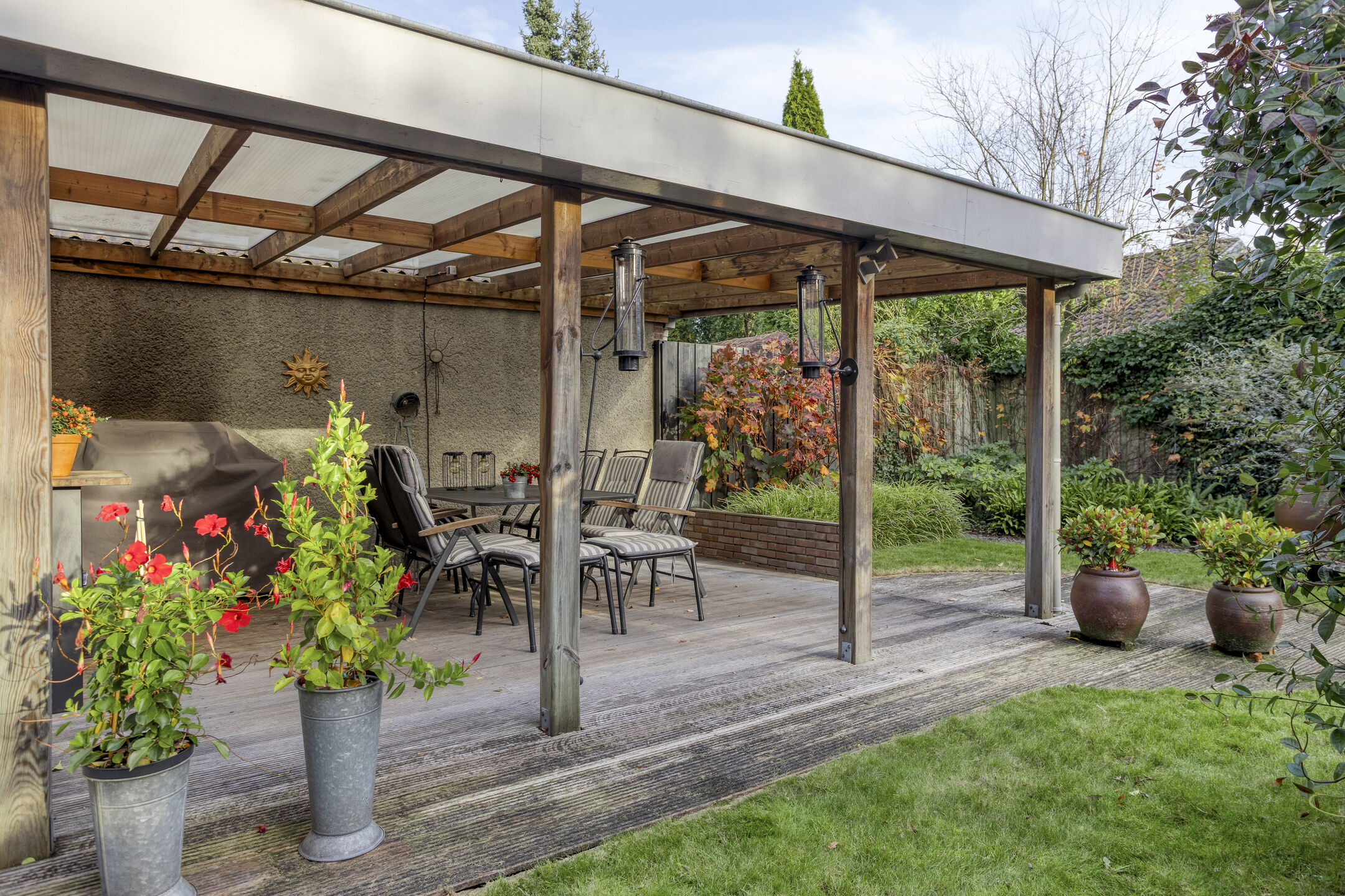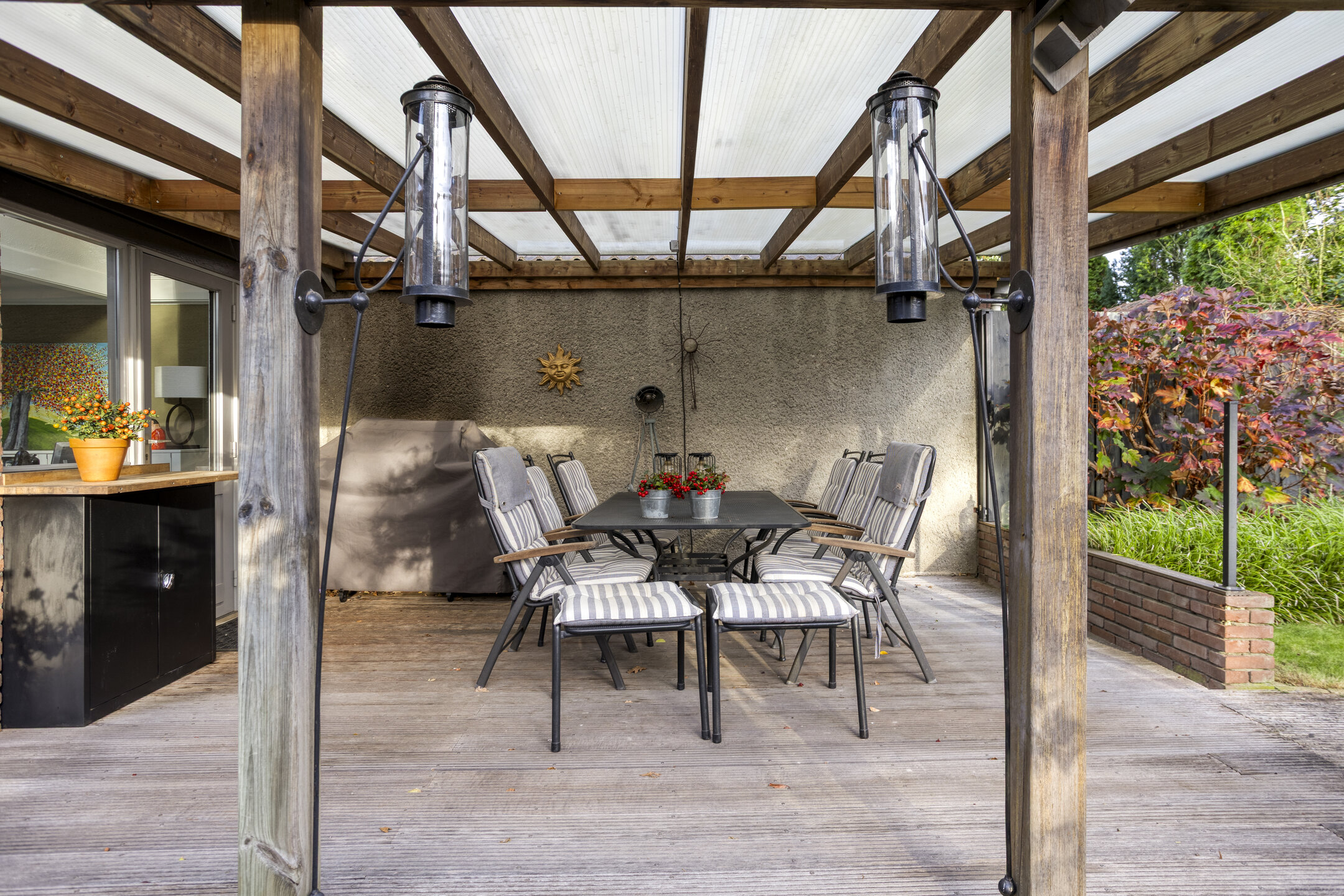 – de grote overkapping direct achter de woning een heerlijke plek vormt om vrijwel het hele jaar door buiten te zitten, met ruimte voor een grote tafel en loungeset;