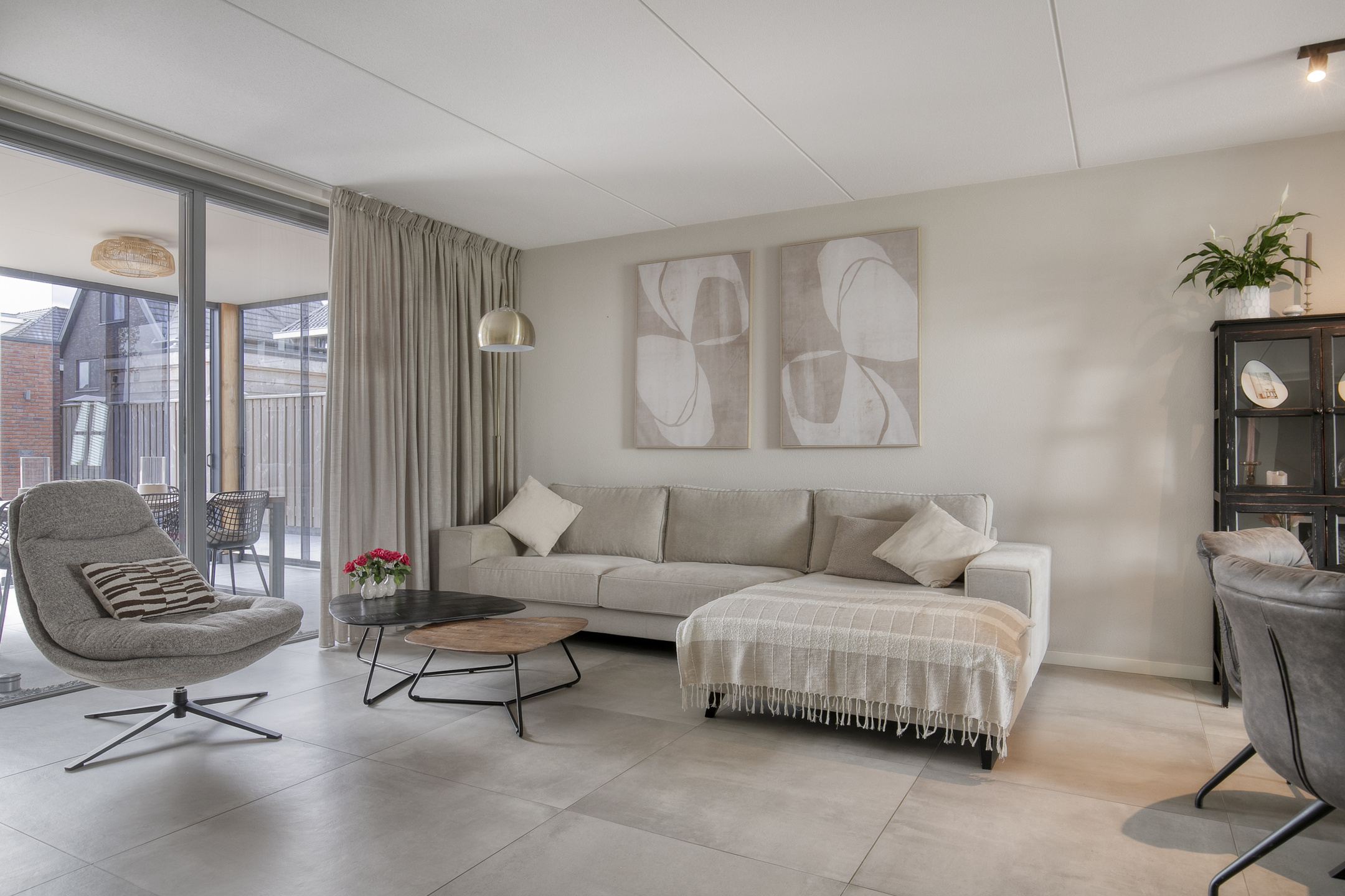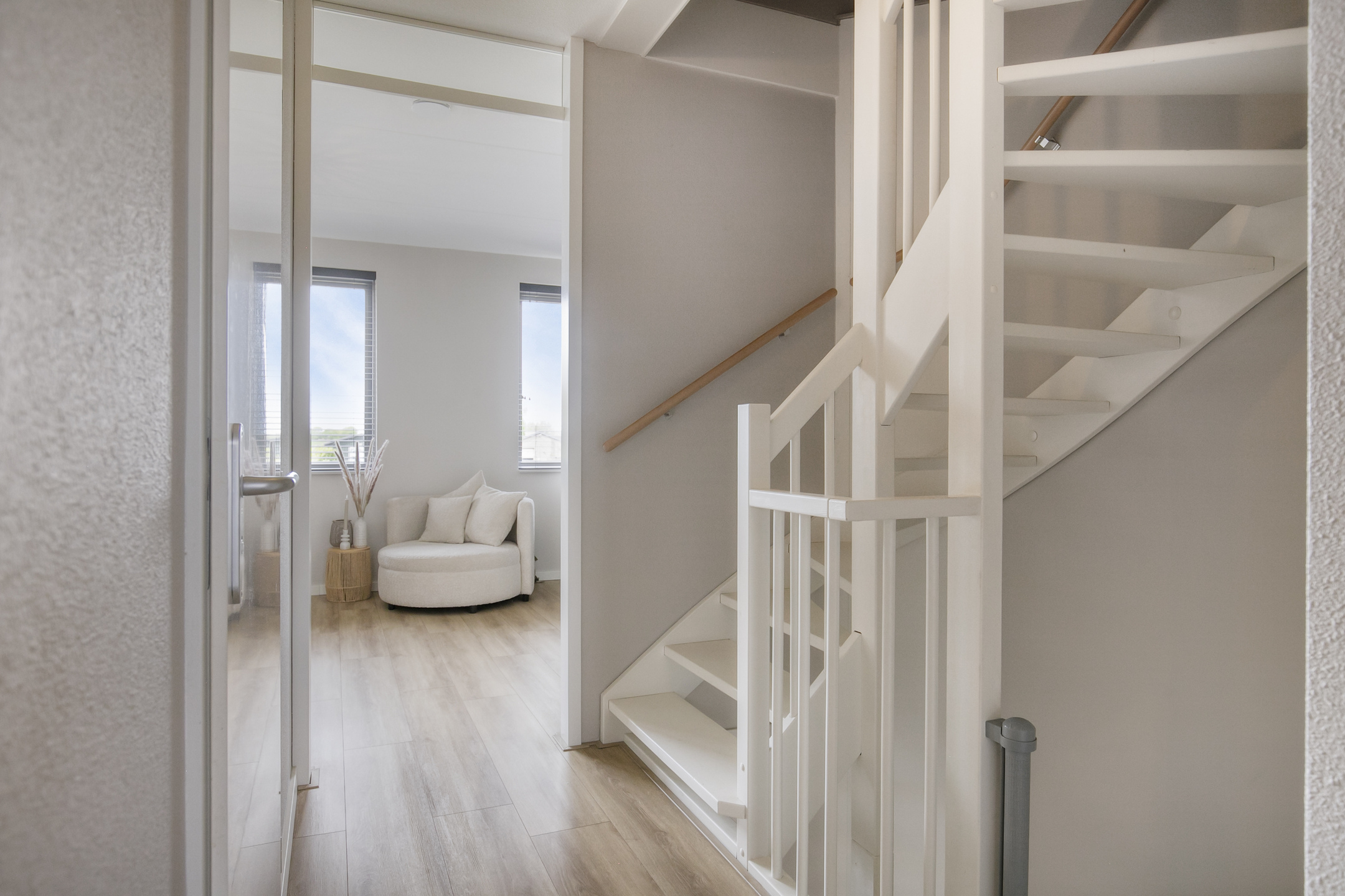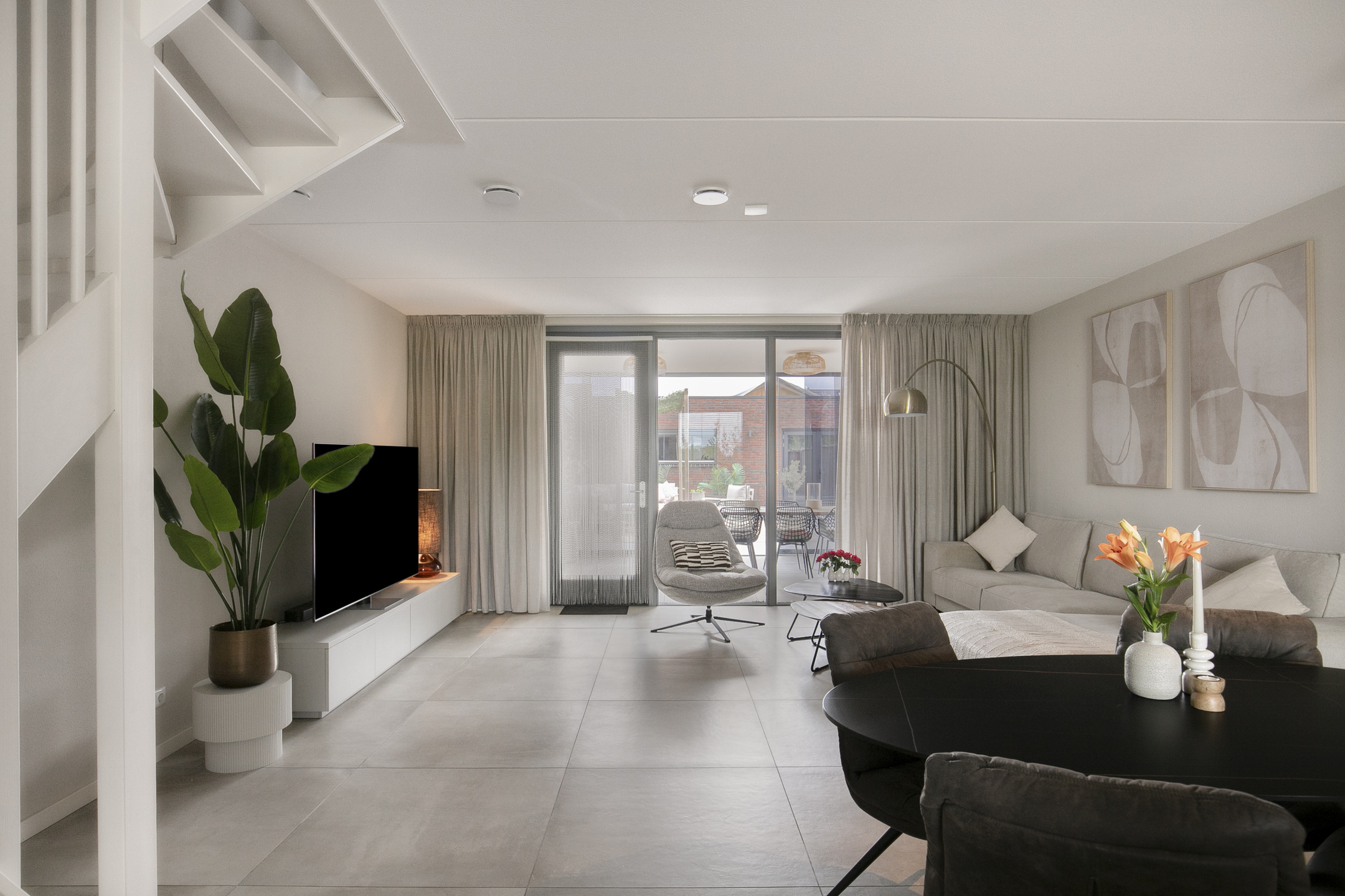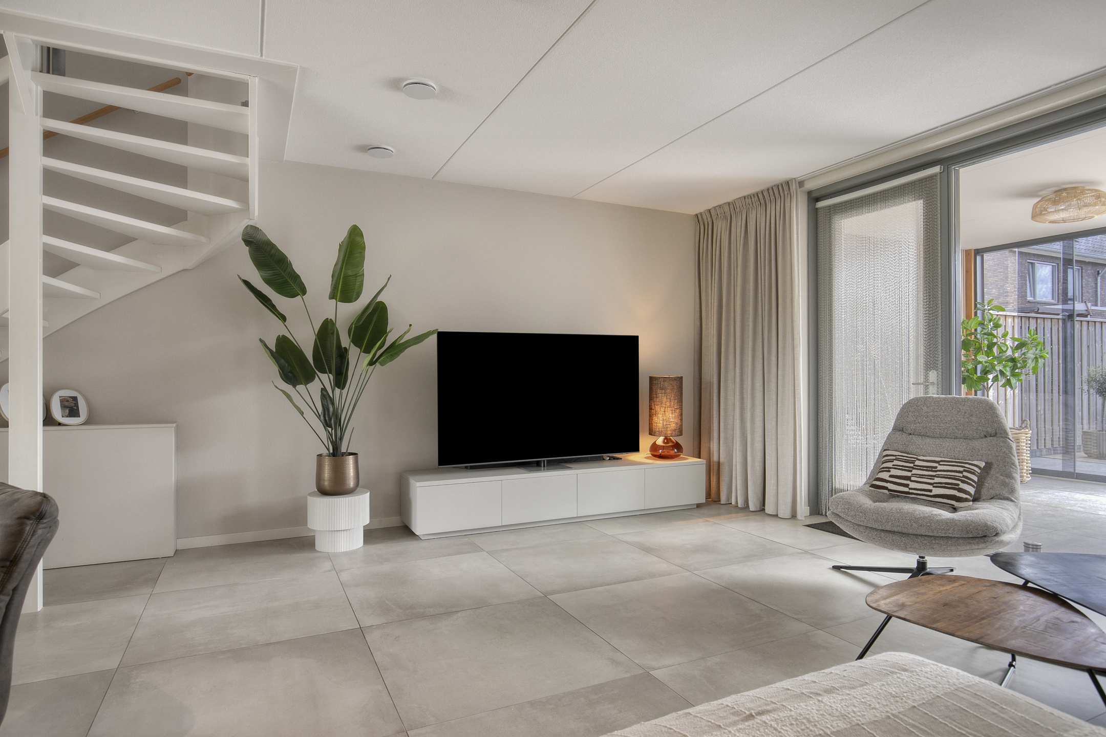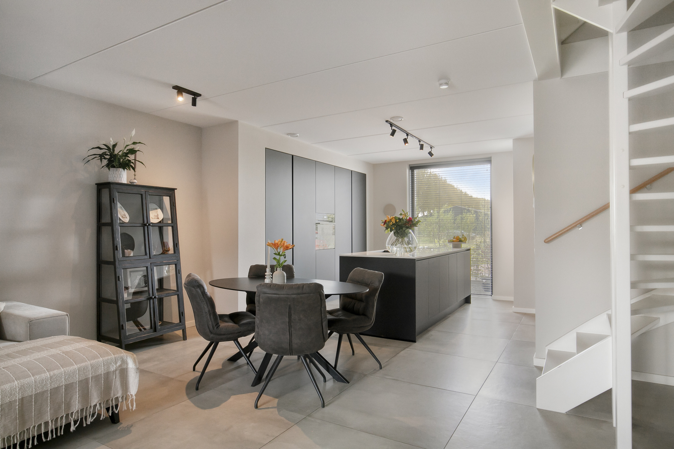 – de begane grond is voorzien van een strakke tegelvloer in combinatie met vloerverwarming, wat zorgt voor een aangename warmteverdeling en een luxe, rustige basis;