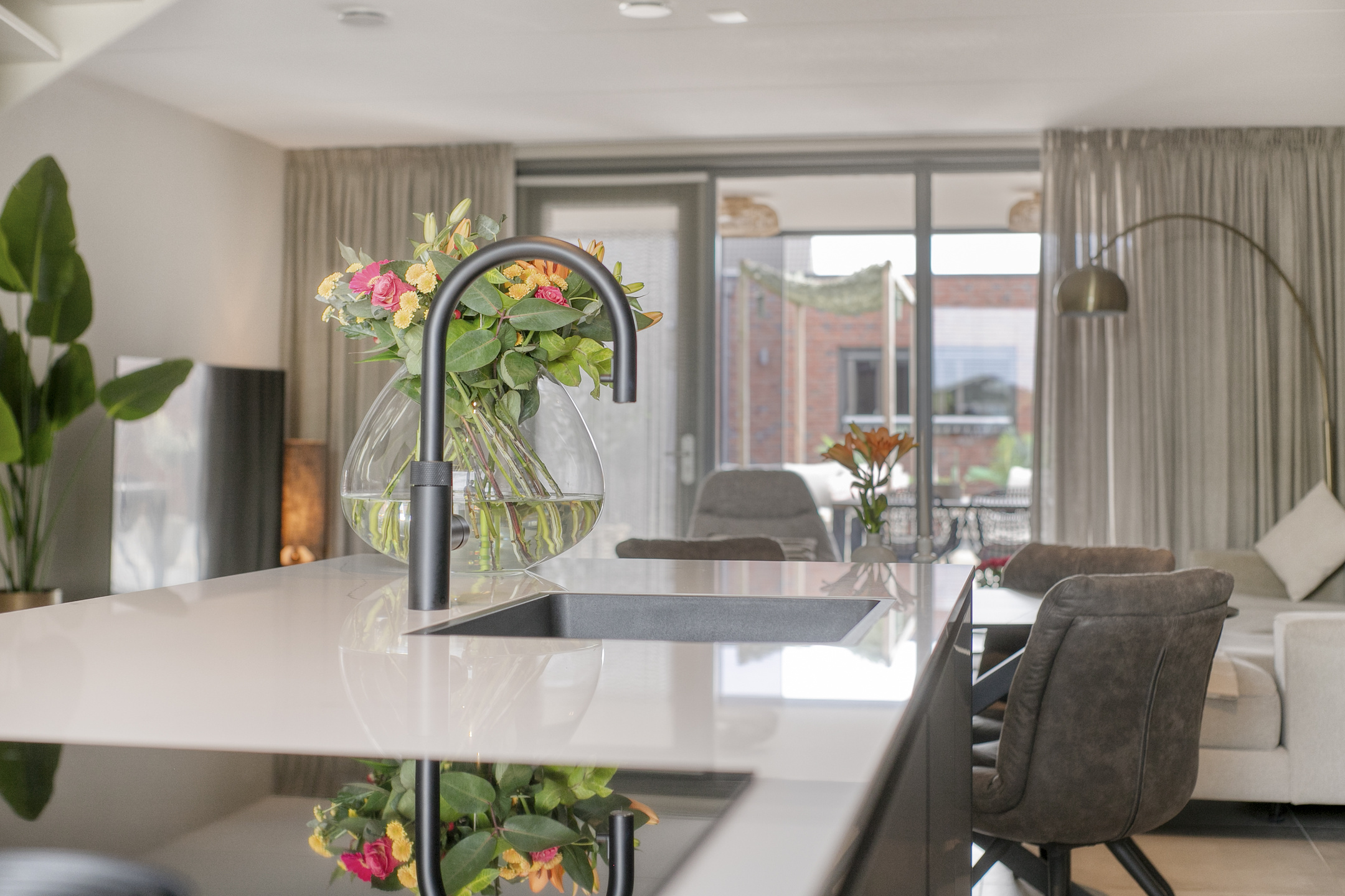 – de ruime woonkamer beschikt over grote raampartijen die zorgen voor een prettige lichtinval en een open, ruimtelijk gevoel, met een fijne verbinding naar de tuin;