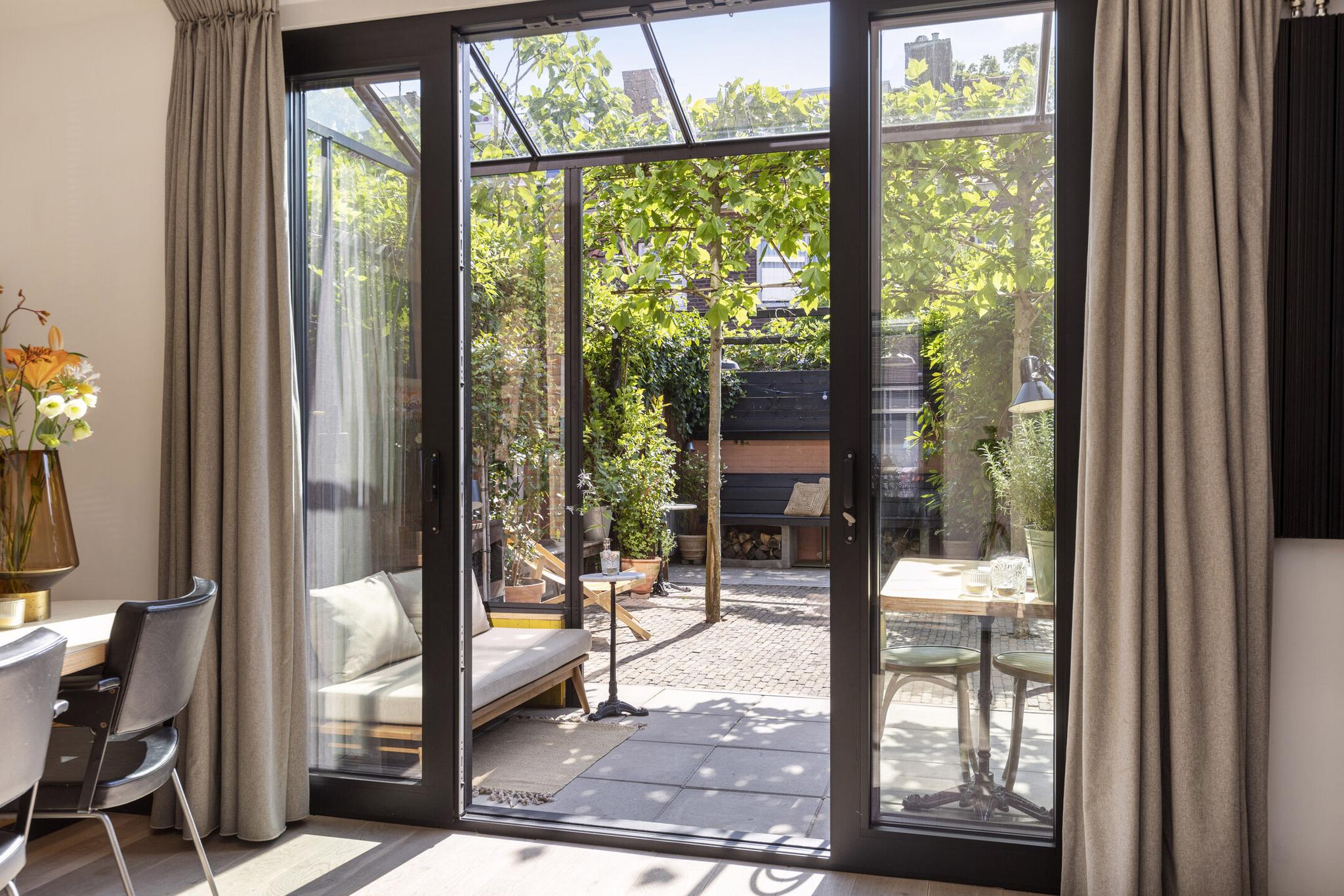 – de heerlijke (stads)tuin heeft een prettige sfeer, gelegen op het oosten en voorzien van een groot terras, een fraaie (glazen) overkapping (2022) en een berging; Achterin de tuin is nog een heerlijk (zonnig) zitje gesitueerd;