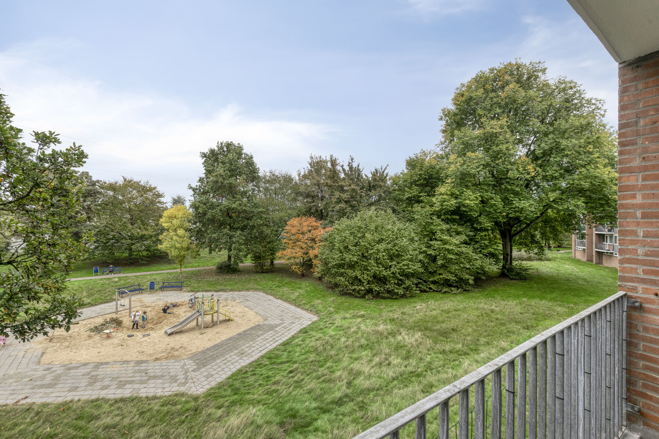 – vanuit de keuken toegang is tot het tweede balkon aan de achterzijde, met een fraai uitzicht op het groene plantsoen en de speeltuin. Dit balkon is een fijne plek om even buiten te zitten of de was te drogen;