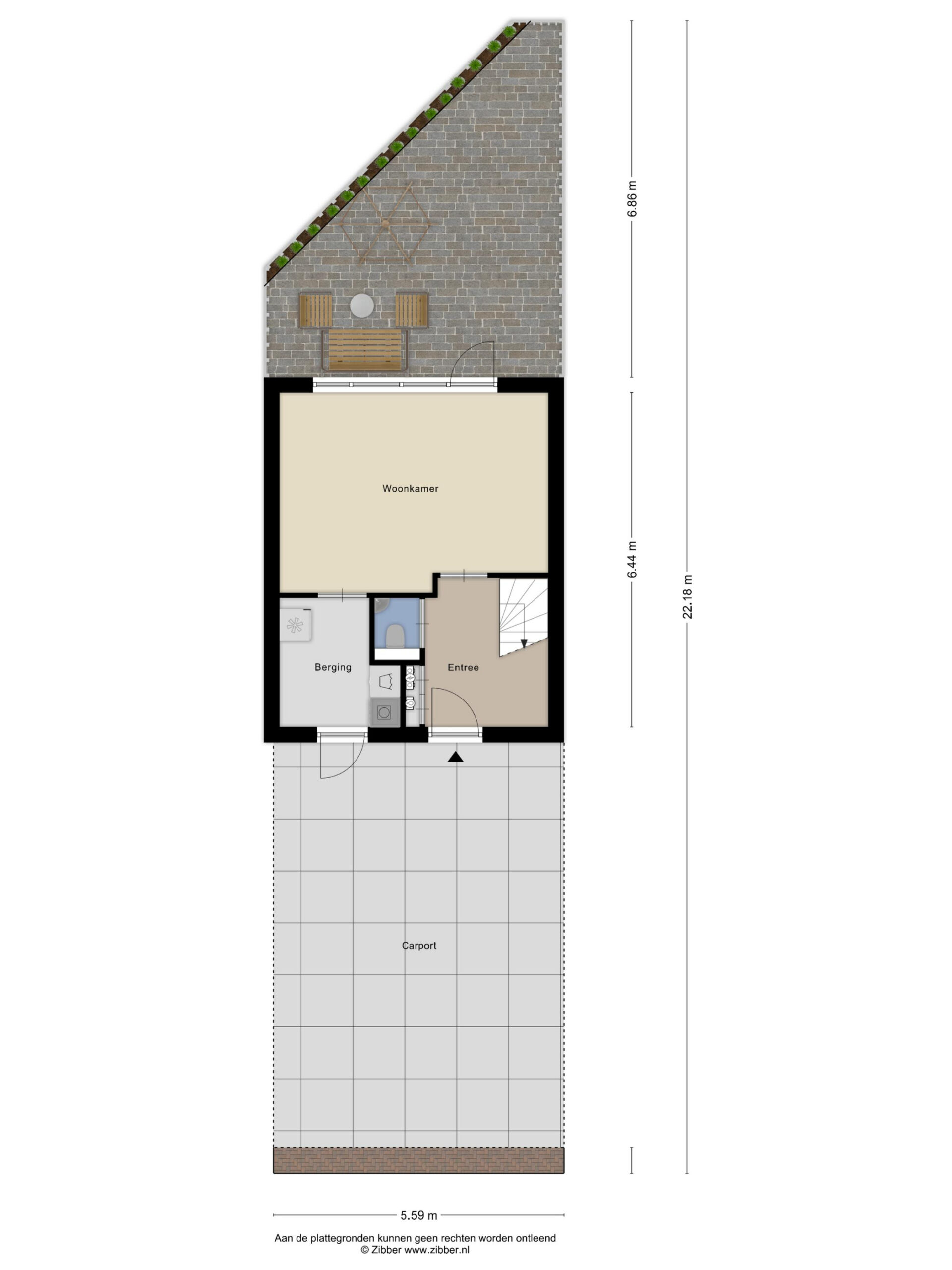 - Oppervlakte gebouwgebonden ca. 61 m2