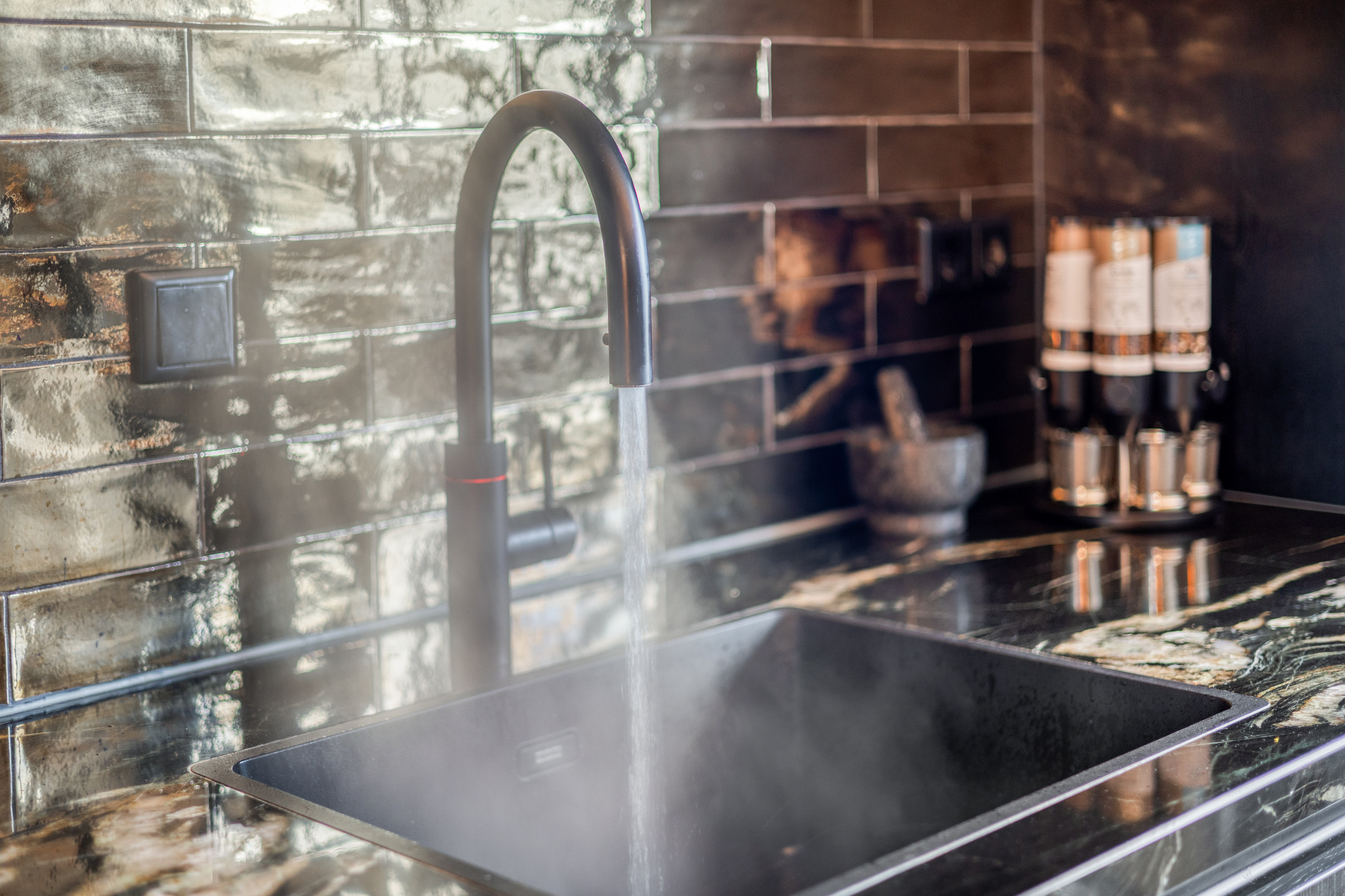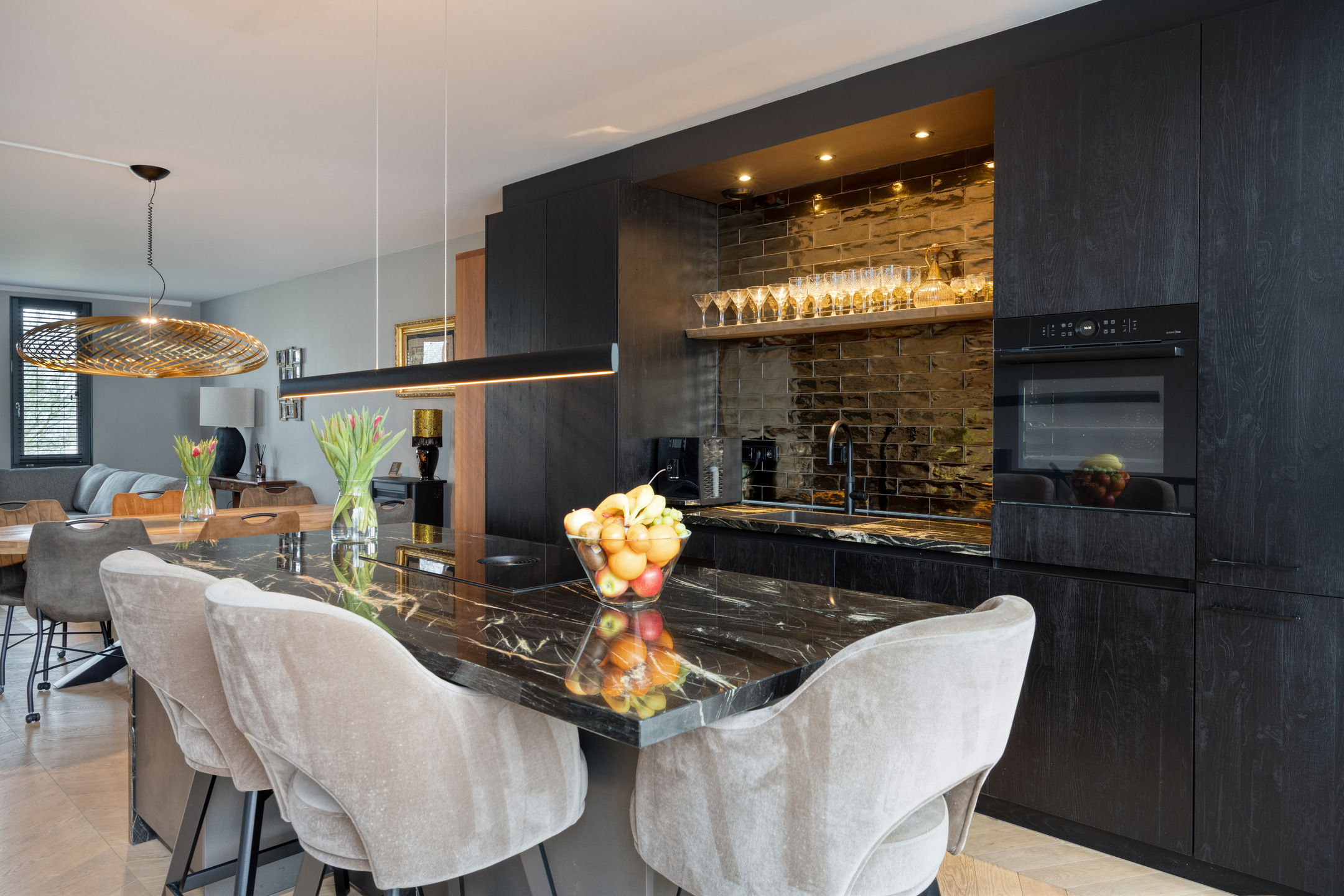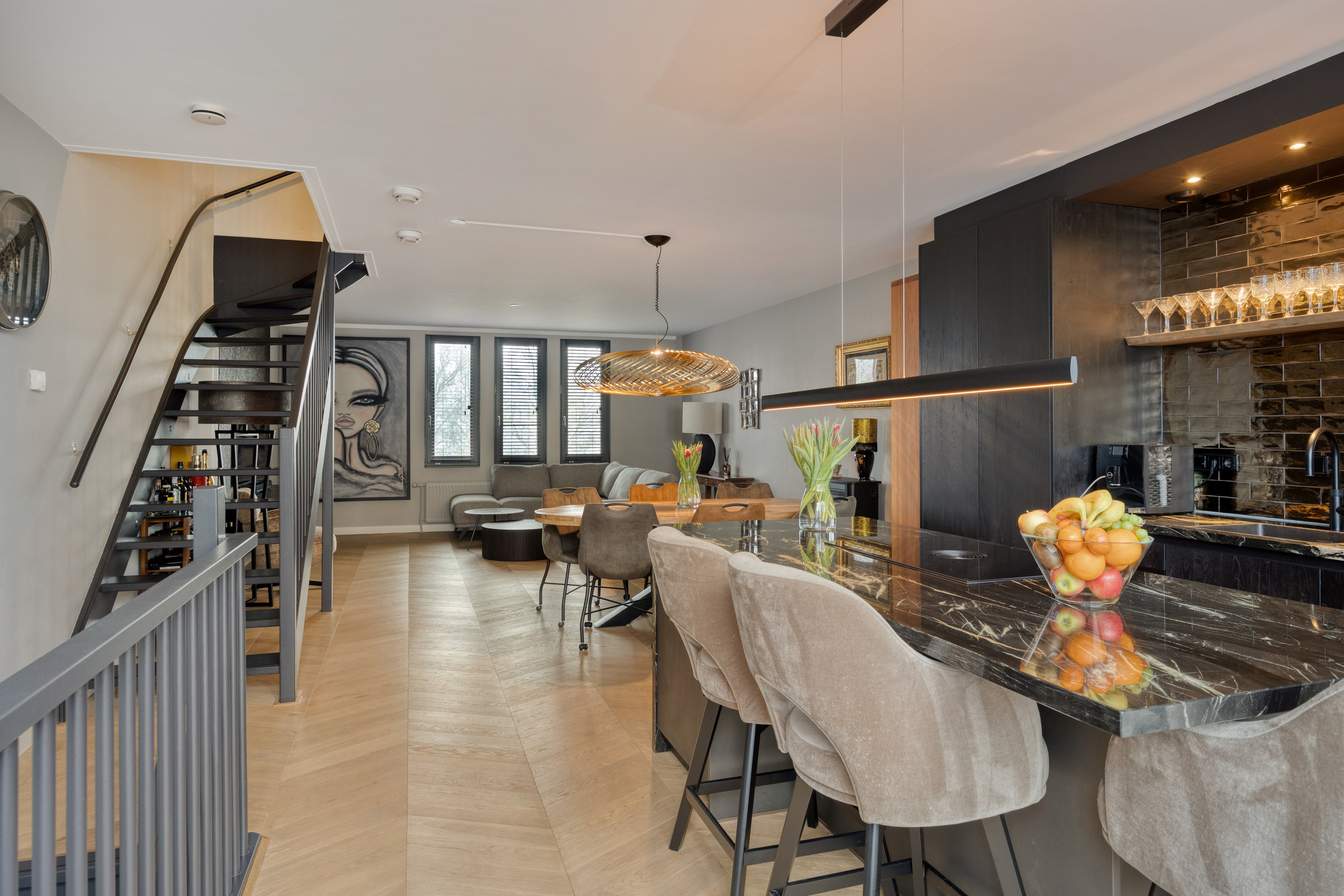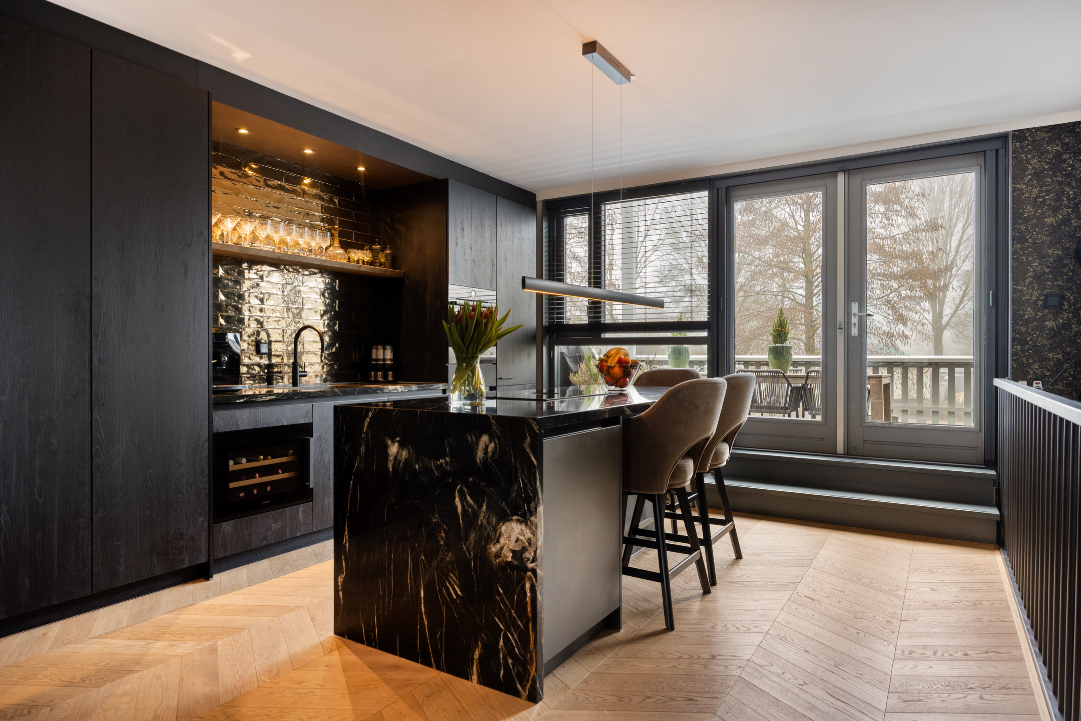 – de luxe keuken met kookeiland (2021) is van alle gemakken voorzien en beschikt over granieten werkbladen en complete inbouwapparatuur, te weten een Bora inductiekookplaat met afzuiging, koelkast, vriezer, oven, vaatwasser, een wijnklimaatkast en een quooker. De quooker heeft een 3-1 functie met kokend water, spa rood en spa blauw.