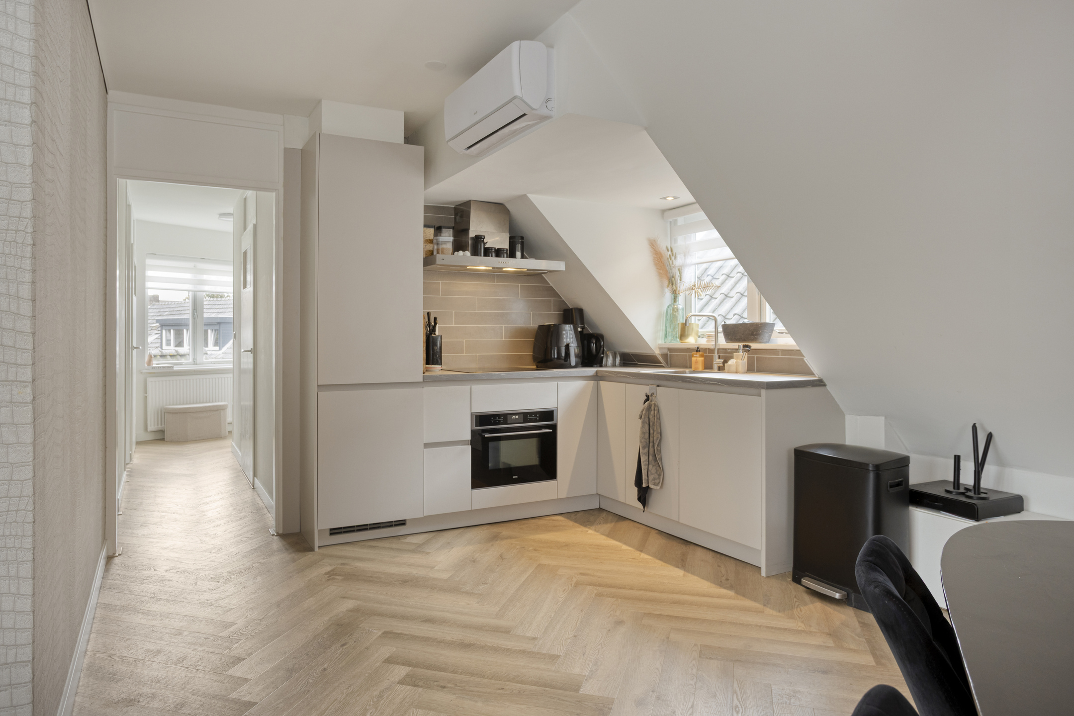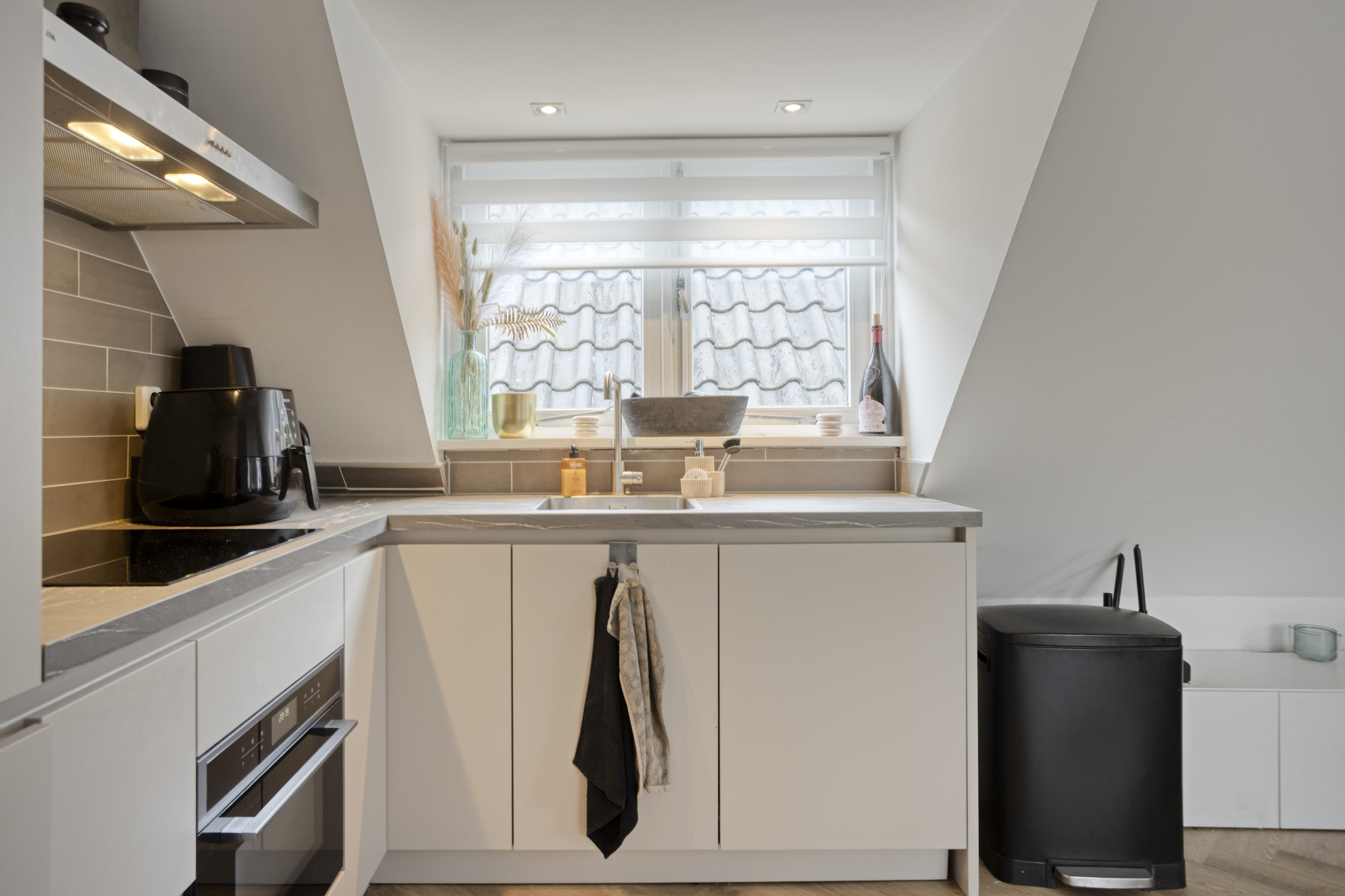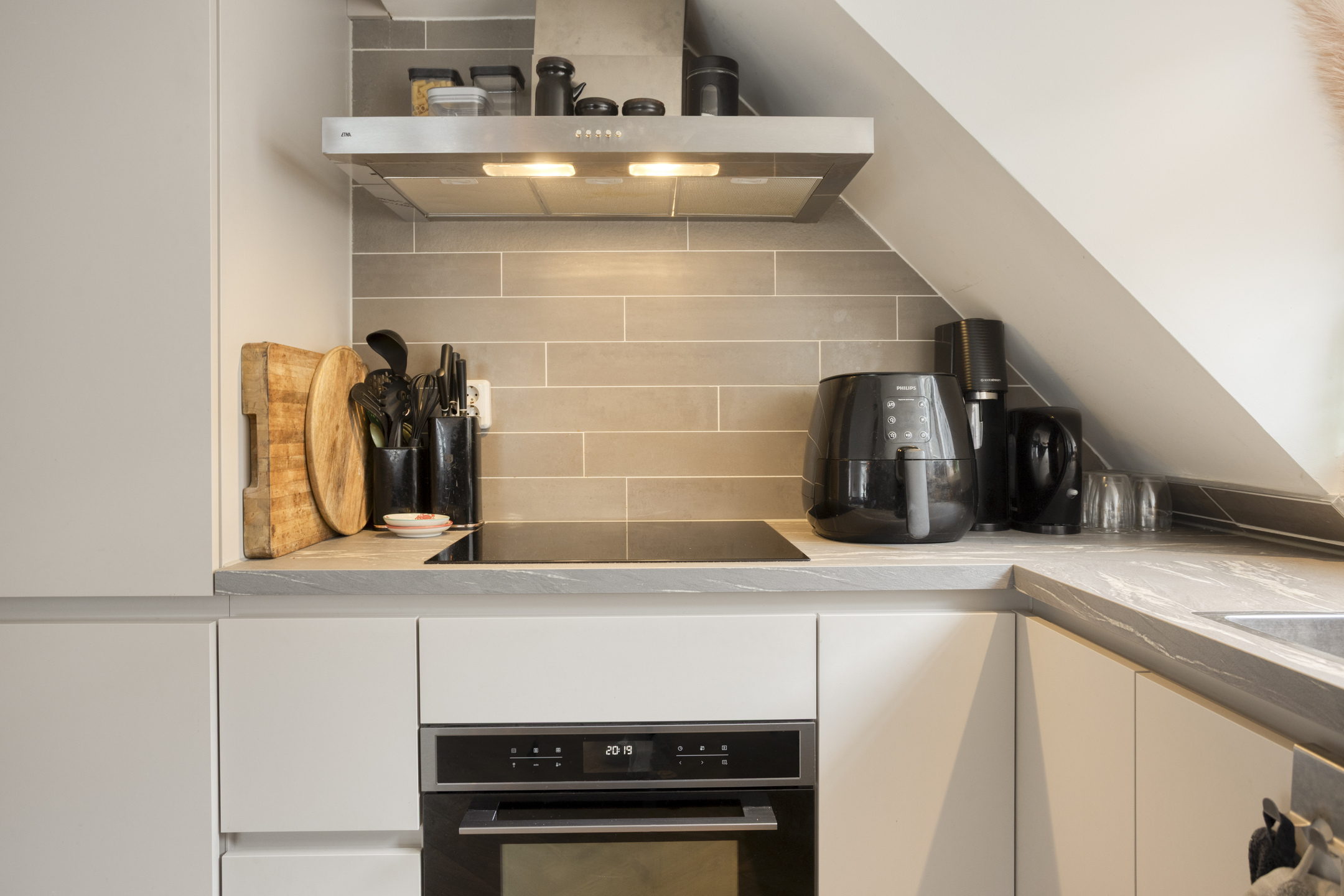 – de halfopen keuken (2024) is modern vormgegeven en voorzien van inbouwapparatuur zoals een inductiekookplaat, afzuigkap, combi-oven, koelkast en vaatwasser;