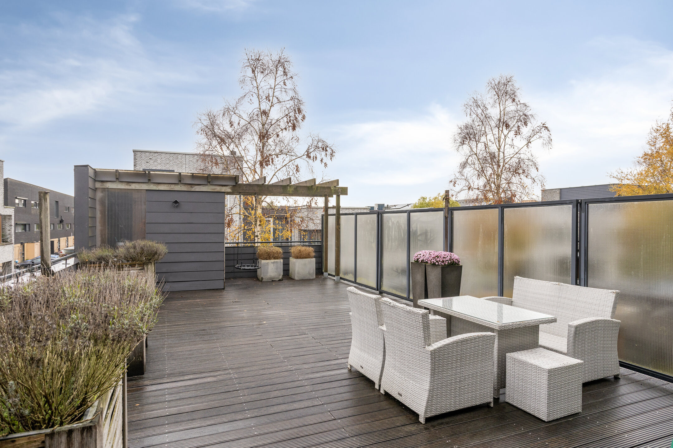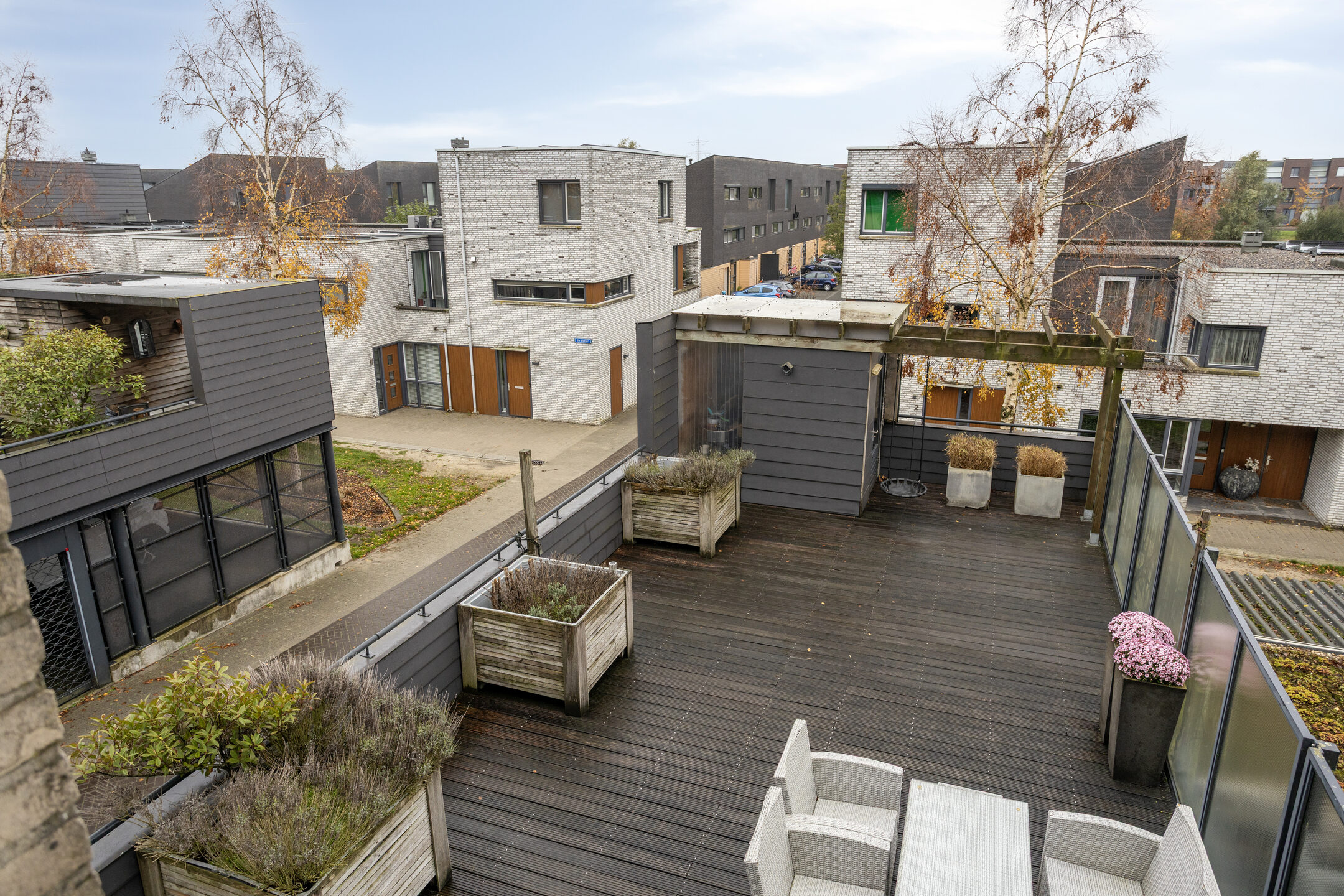 – de ruime daktuin op het zuidwesten is ingericht met een terras, plantenbakken en voldoende plek voor een lounge- of eethoek, zodat je hier volop van de zon kunt genieten;