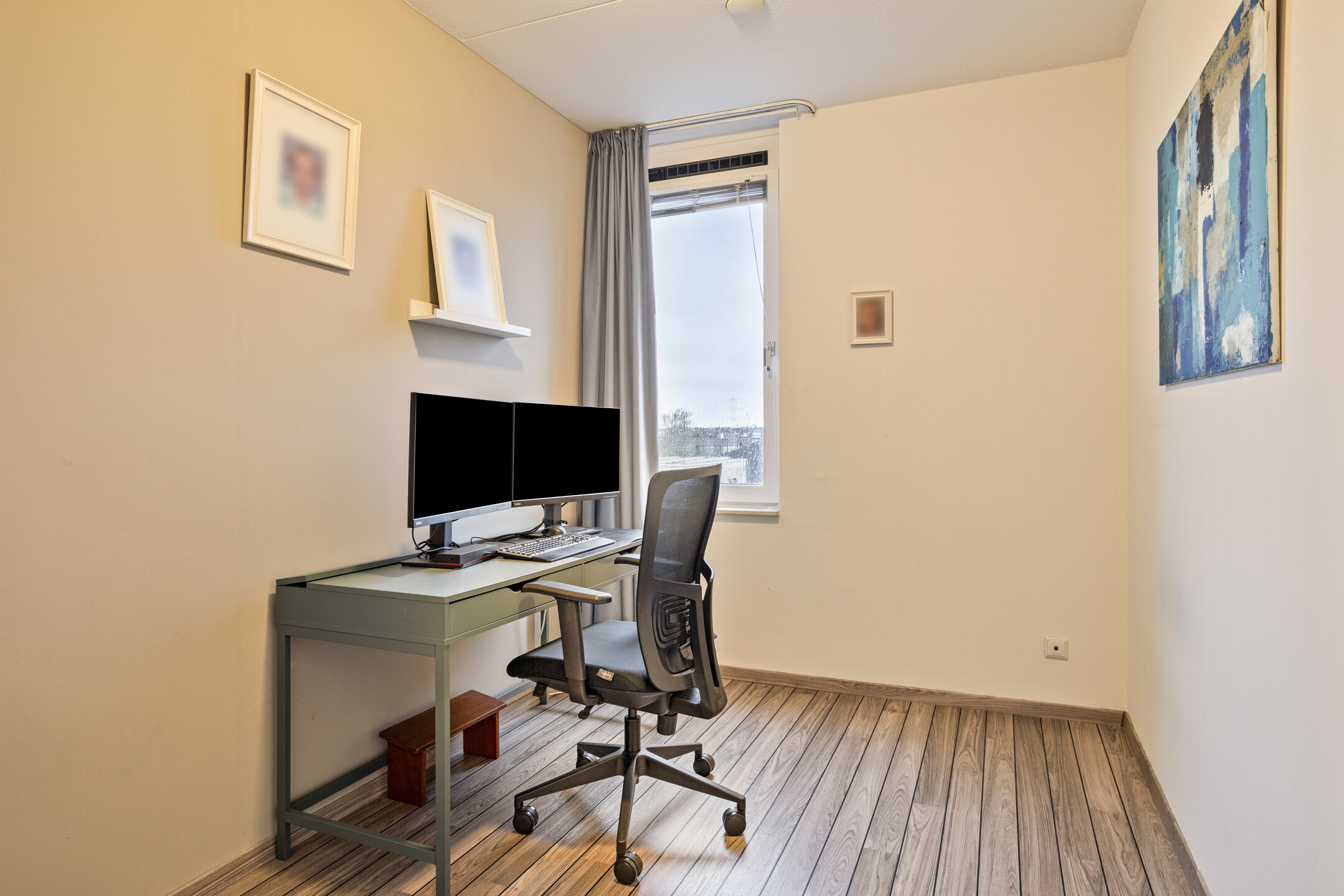 – de eerste verdieping één ruime slaapkamers telt, voorzien van een nette laminaatvloer en strak afgewerkte wanden, waardoor de kamer direct te betrekken is;