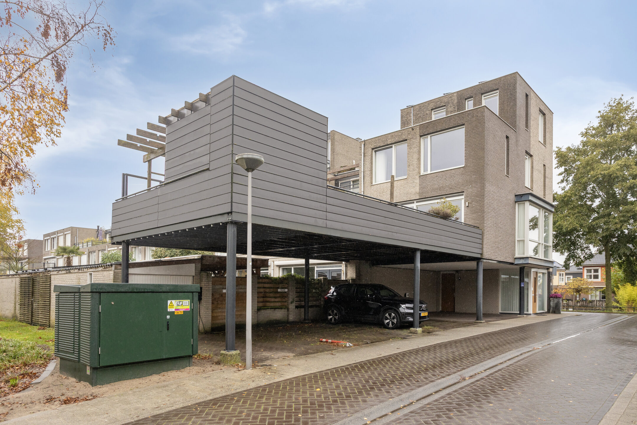 – parkeren mogelijk is op eigen terrein onder de carport met twee privéplaatsen en een laadpaal voor elektrische auto’s;