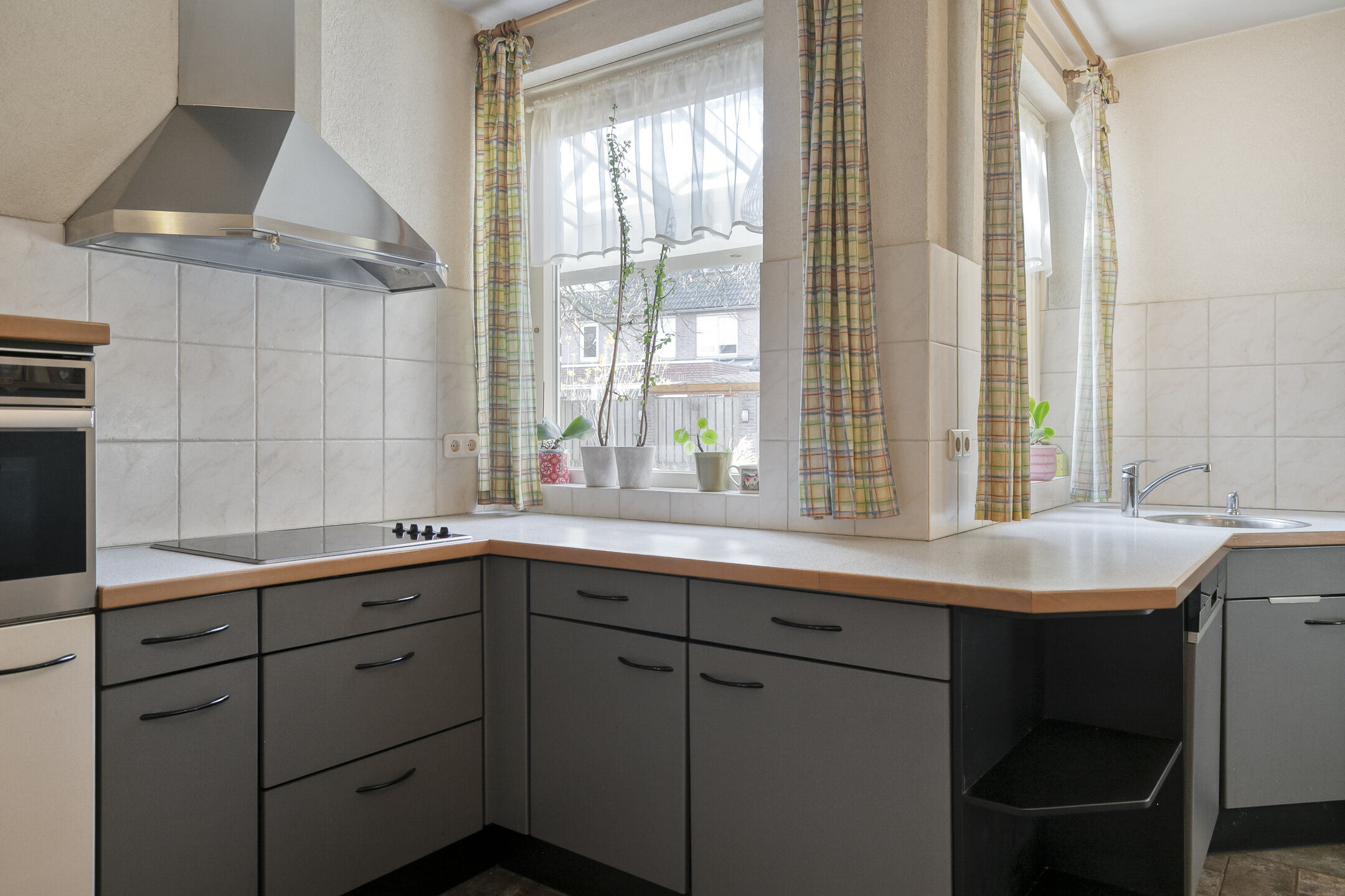 – De woonkeuken praktisch is ingericht met een hoekopstelling en beschikt over veel bergruimte, een keramische kookplaat, afzuigkap, vaatwasmachine, koelkast en een combi-magnetron, ideaal voor het bereiden van heerlijke maaltijden;