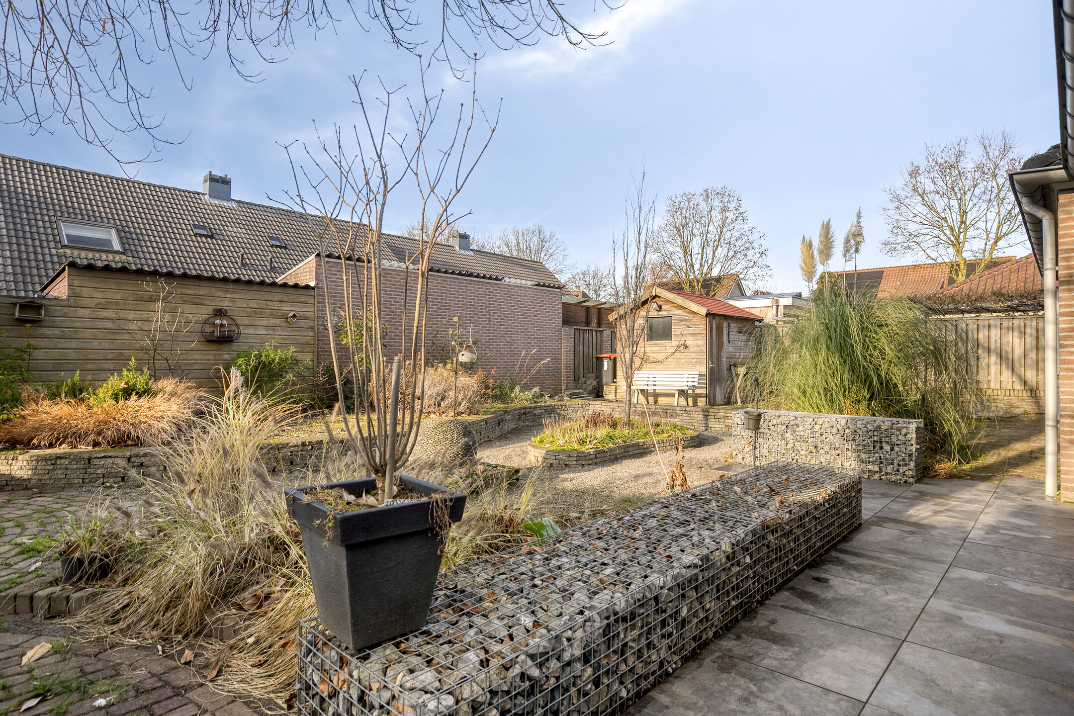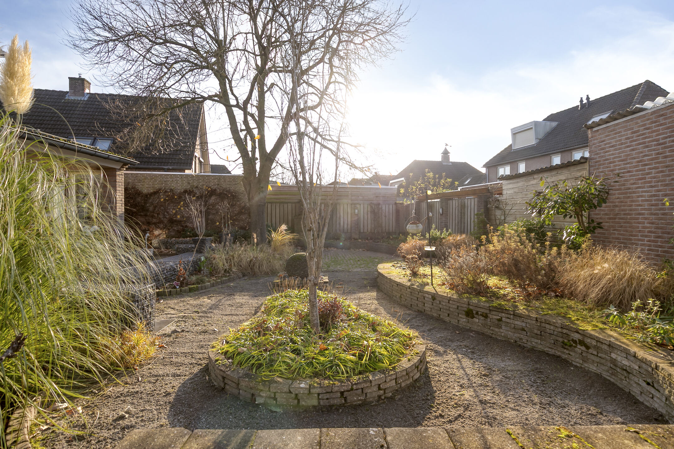– De achtertuin gelegen is op het Westen welke fraai is aangelegd met een groot terras, looppaden en borders met volwassen beplanting en voorzien van een sproeisysteem;
