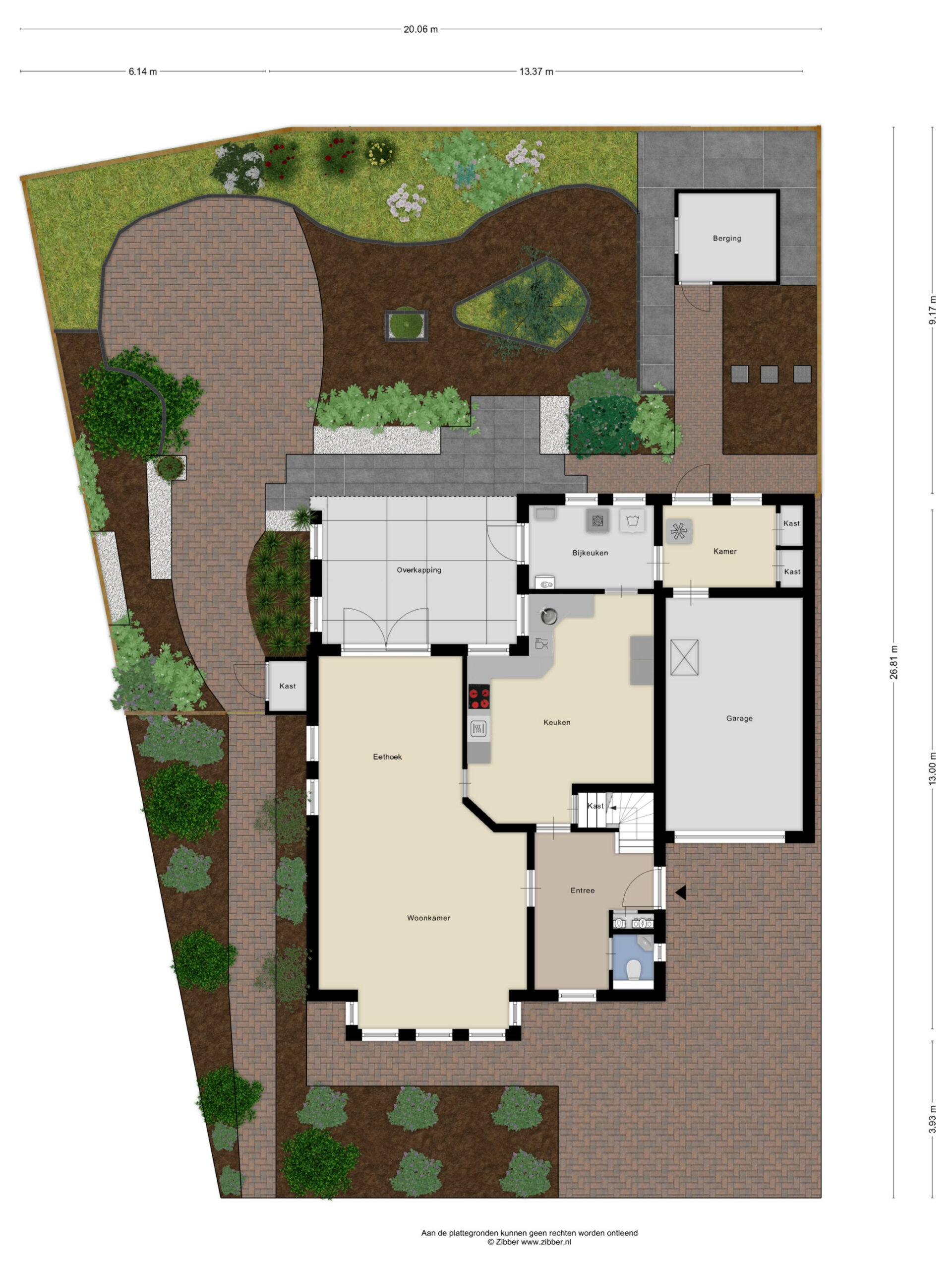 – De bijkeuken toegang biedt tot een berging en de garage;