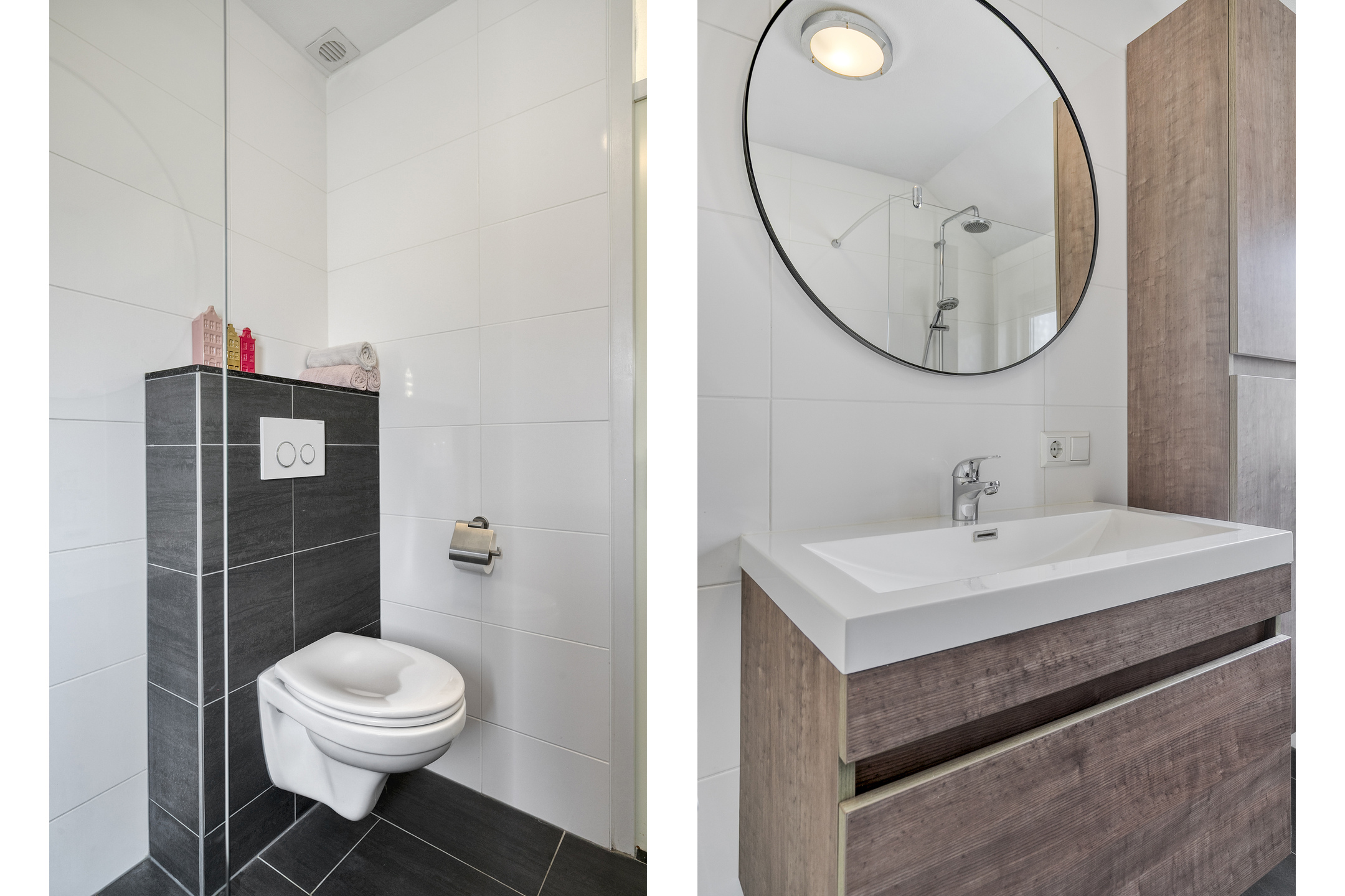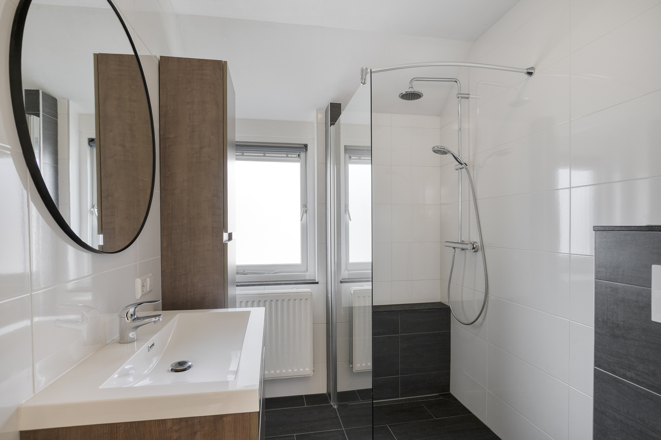 – de badkamer is modern uitgevoerd en beschikt over een inloopdouche, tweede toilet en een wastafel met meubel;