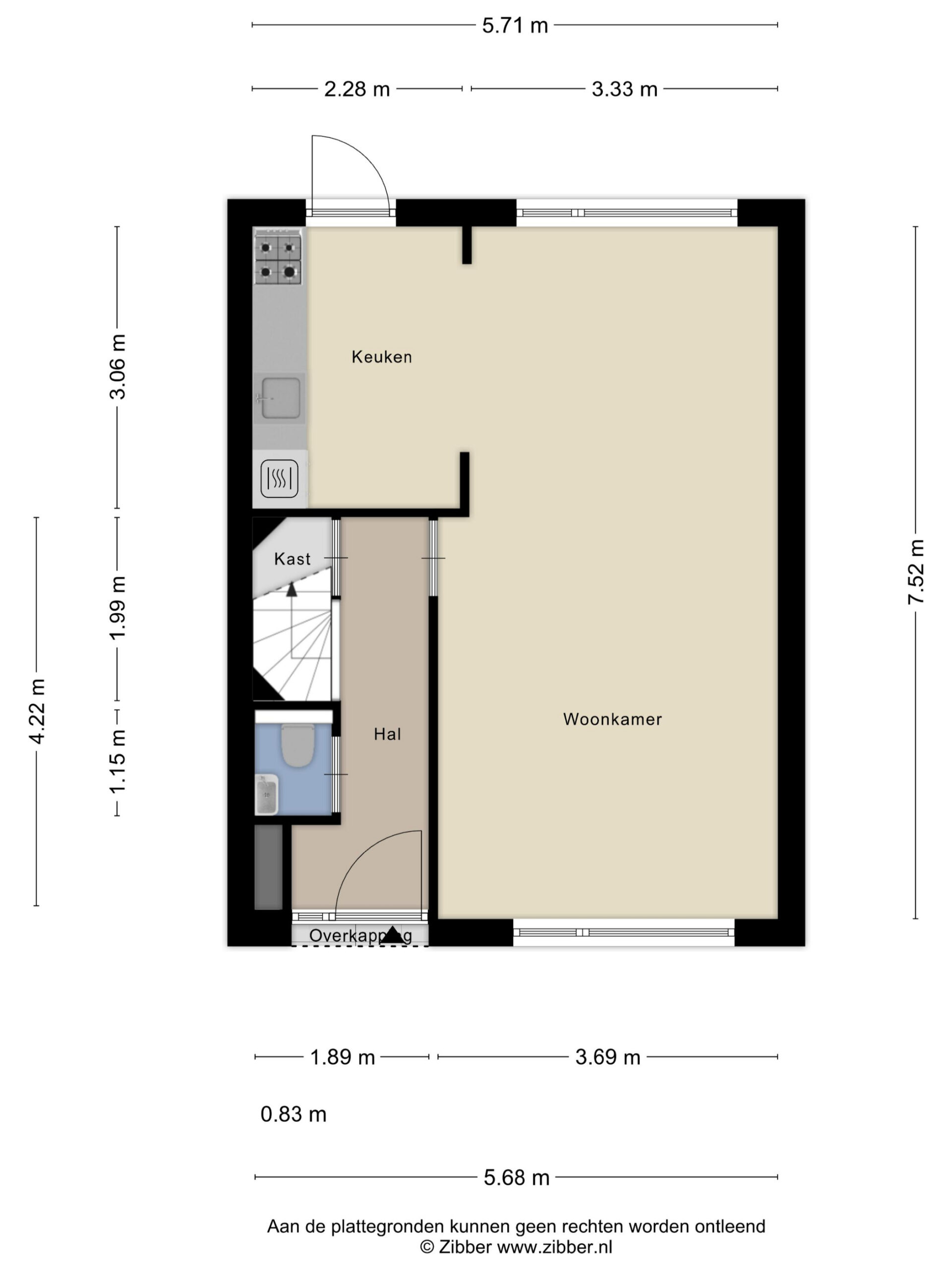 – de gebruiksoppervlakte wonen bedraagt 79 m² met daarnaast een externe berging van 6 m²;