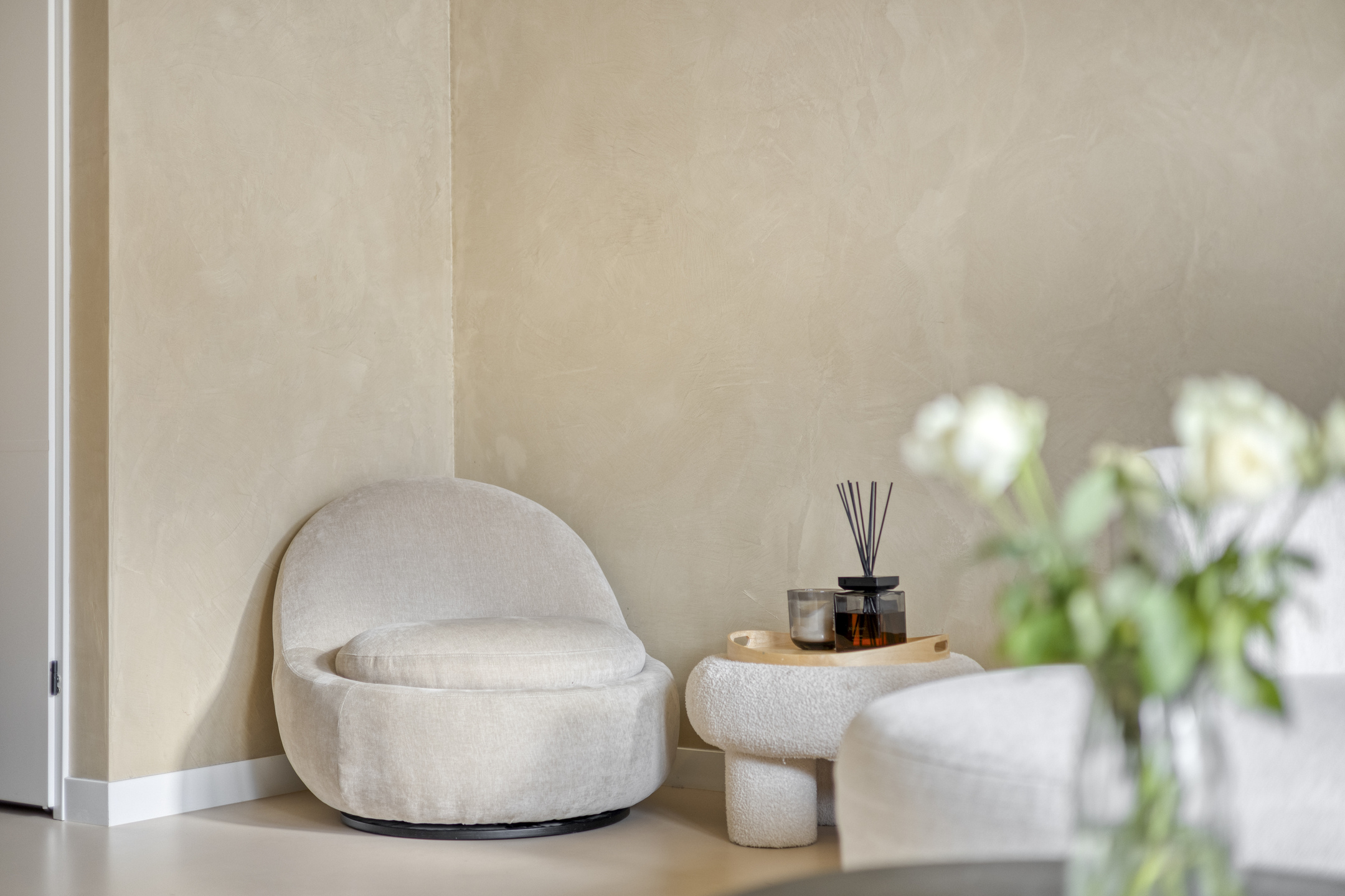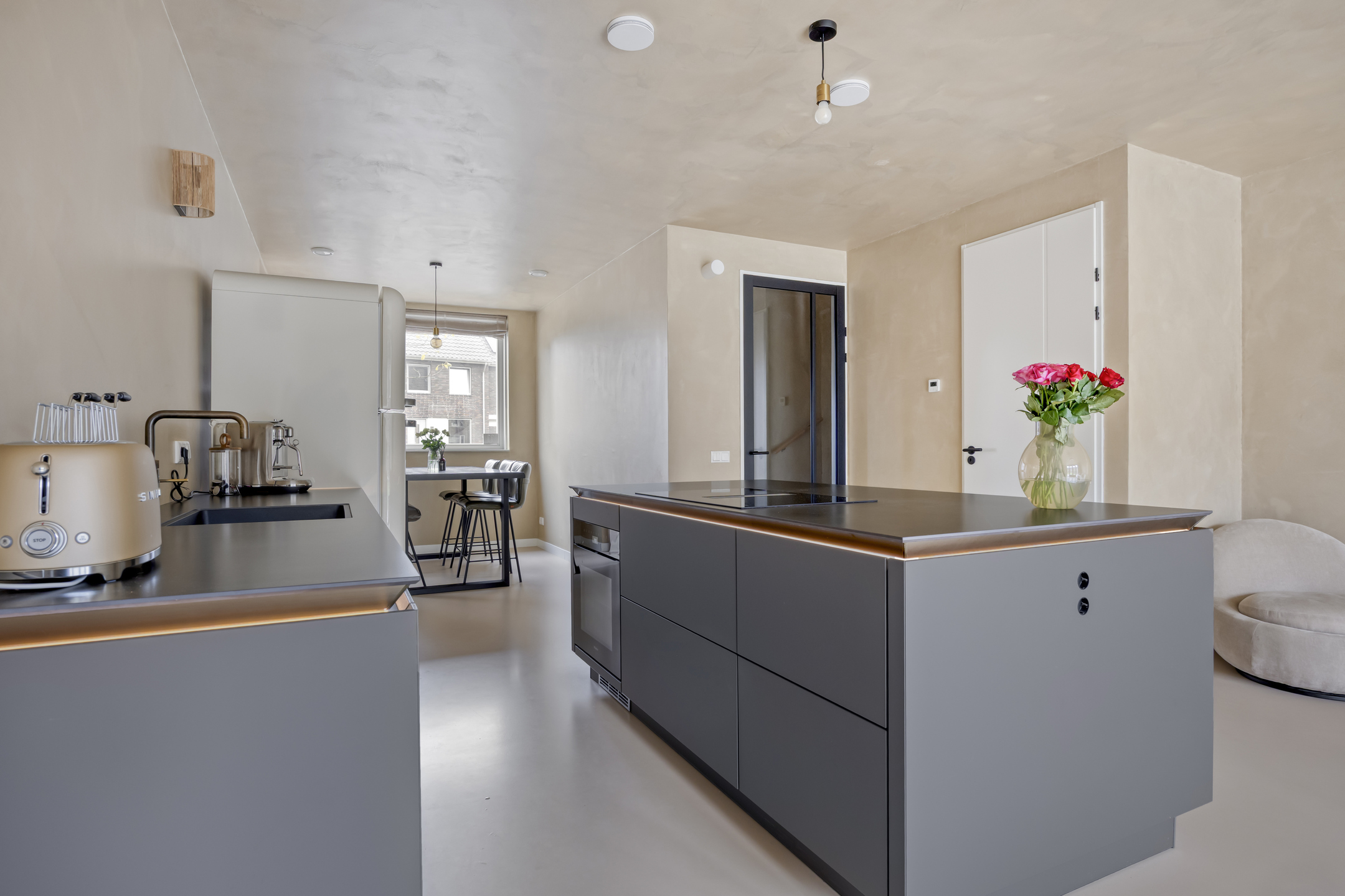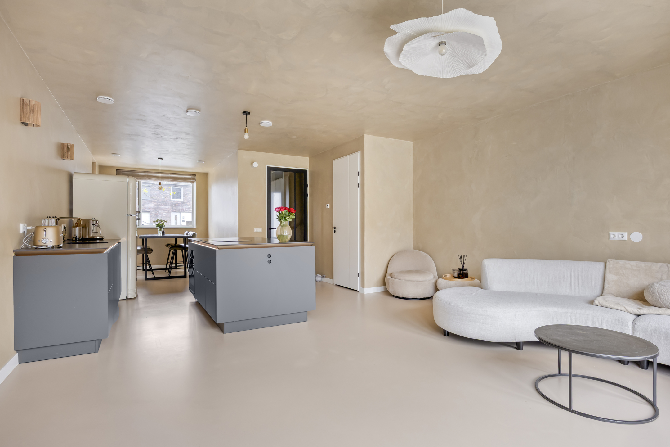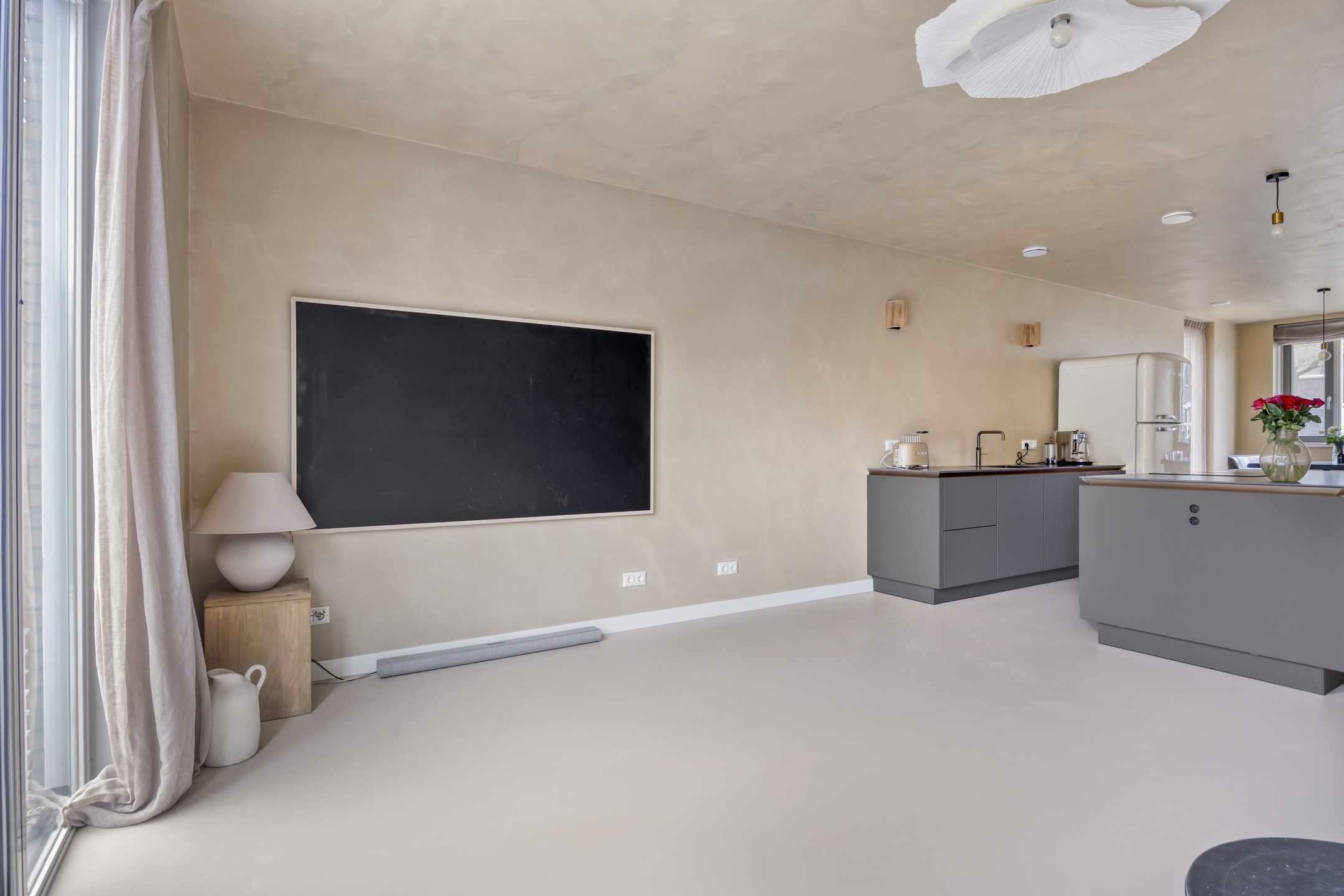 – de begane grond een stijlvolle basis heeft met beton ciré stucwerk en een strakke gietvloer, precies zo’n afwerking waar je zelf niets meer aan hoeft te doen;
