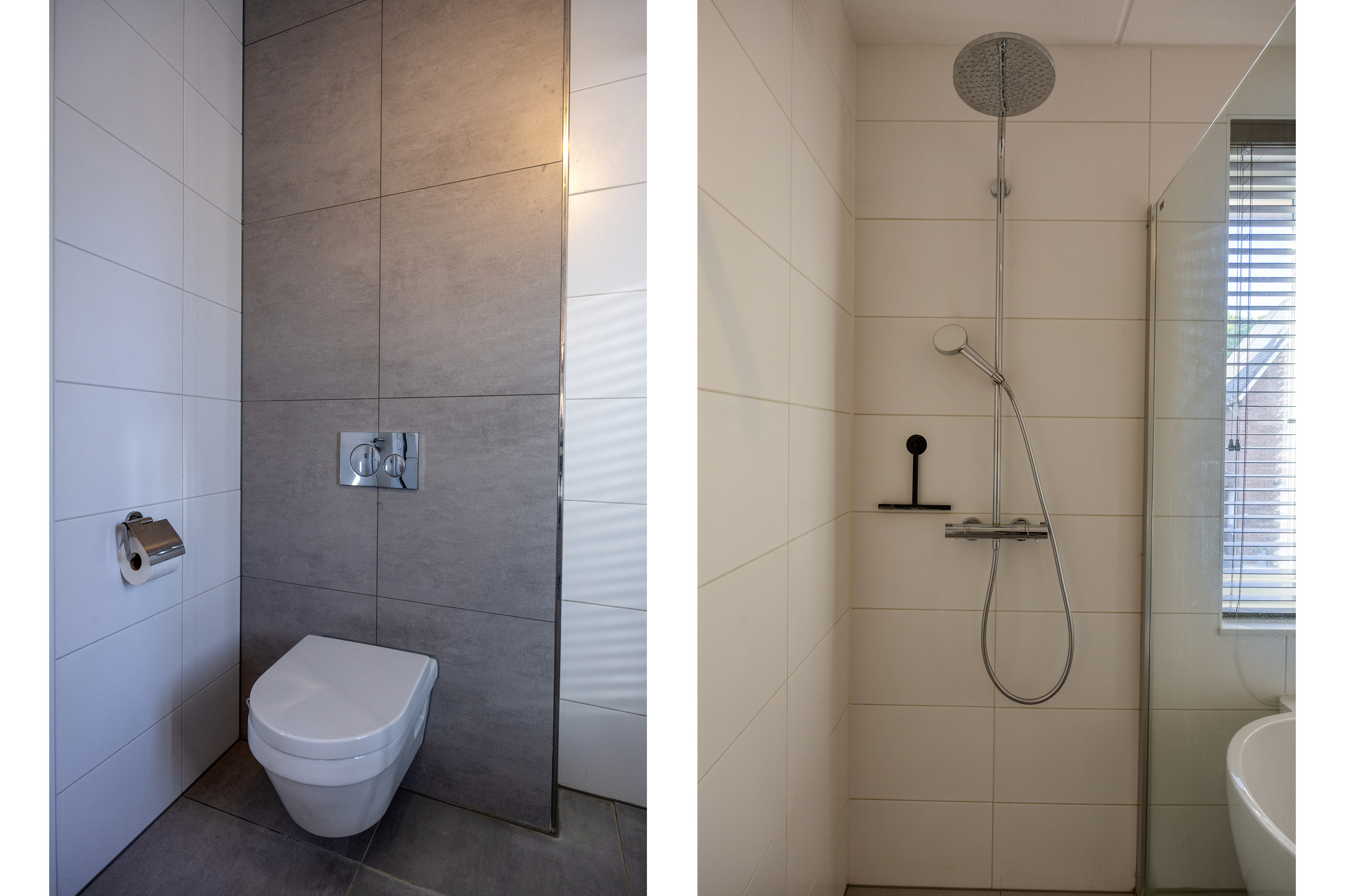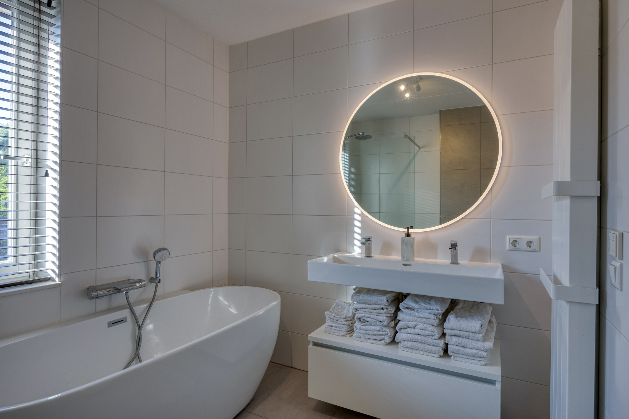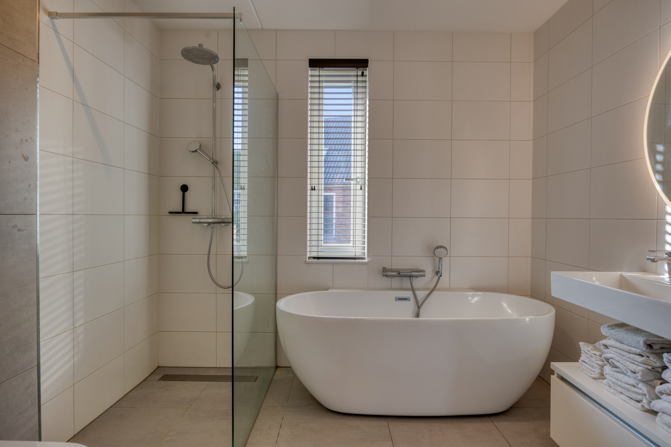 – de luxe badkamer (2019) is volledig betegeld en ingericht met een vrijstaand ligbad, een inloopdouche, een badkamermeubel met dubbele wastafel, een tweede toilet en een designradiator;