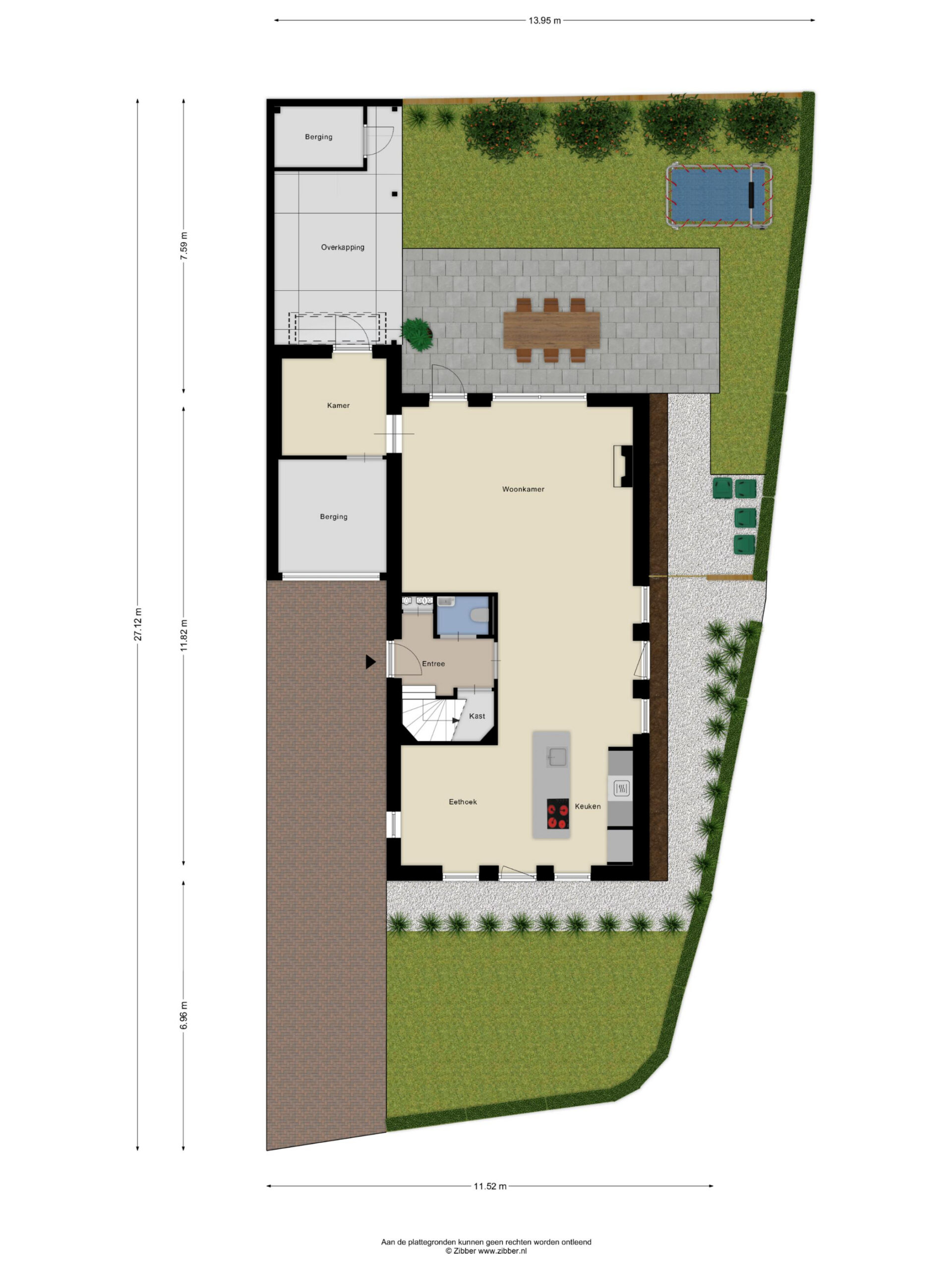 – via de speelkamer is de inpandige berging bereikbaar die tevens toegankelijk is via de oprit;