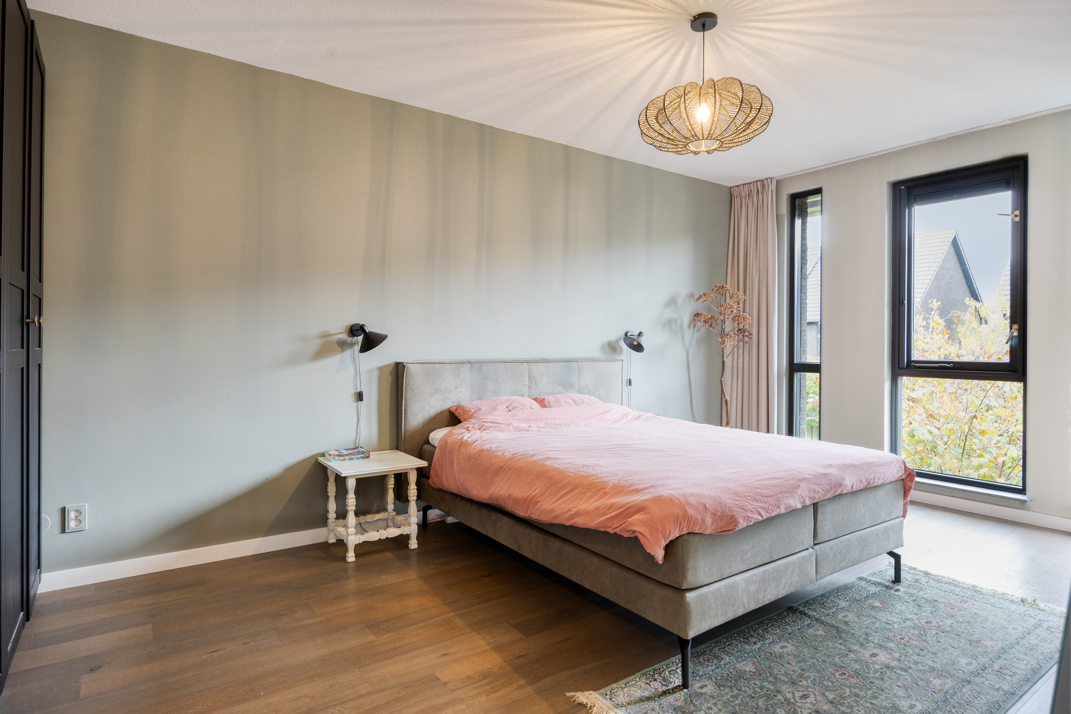 – de slaapkamers zijn voorzien van grote raampartijen, afgewerkt met een licht eiken laminaatvloer en strak gestukadoorde wanden;