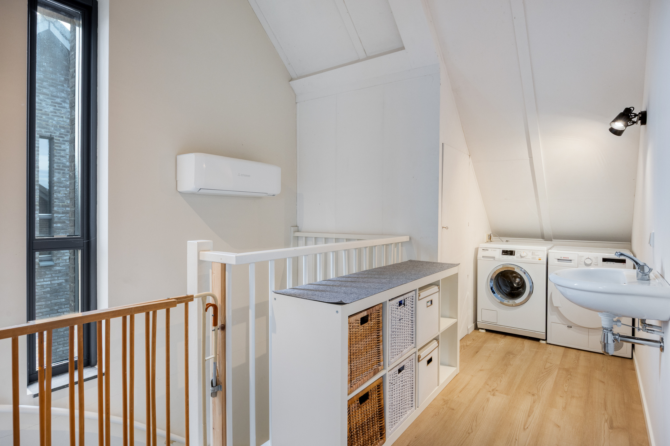 – de zolderverdieping is in 2023 ingedeeld met twee volwaardige kamers, een separate wasruimte met wastafel en een vliering voor nog meer opbergruimte;