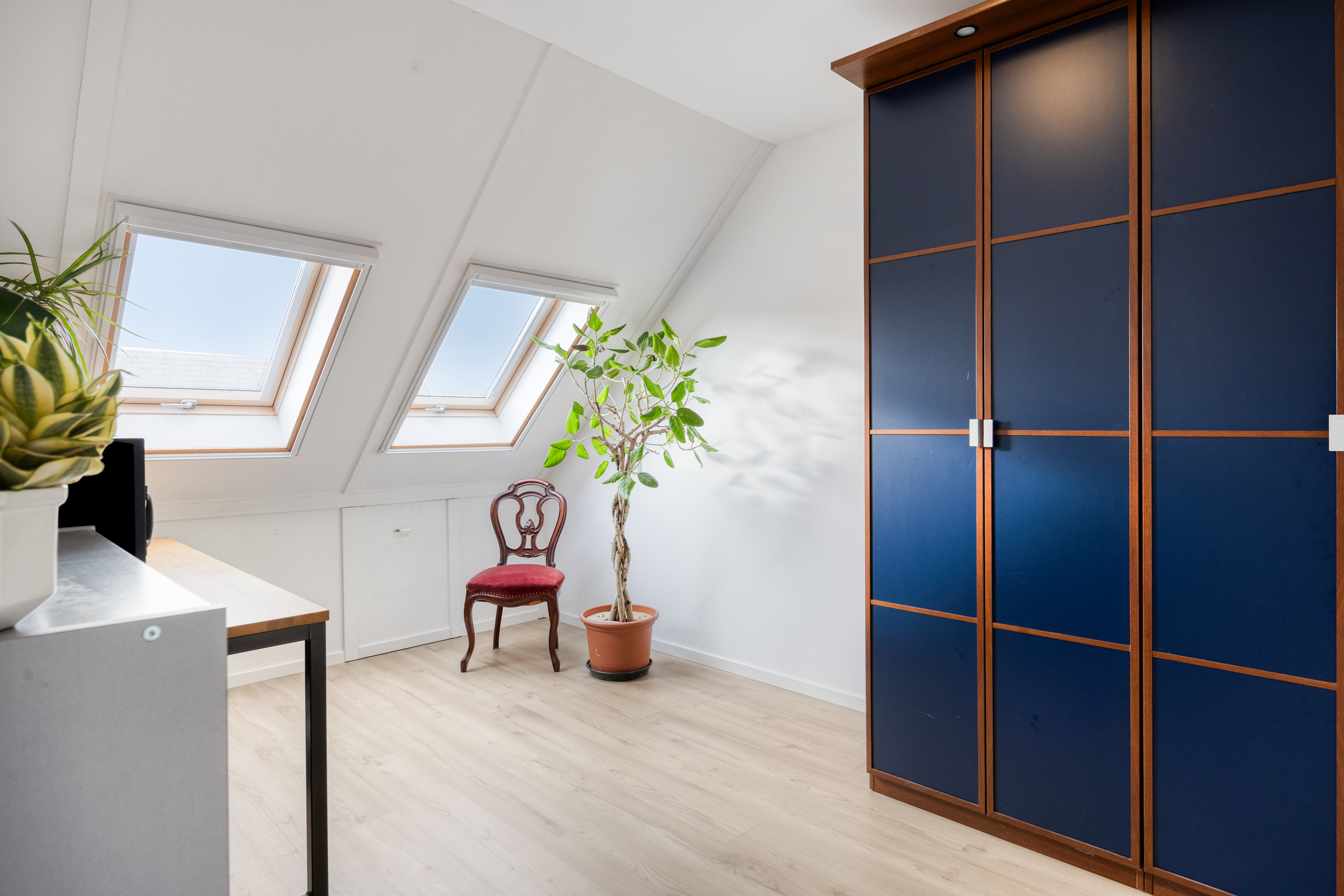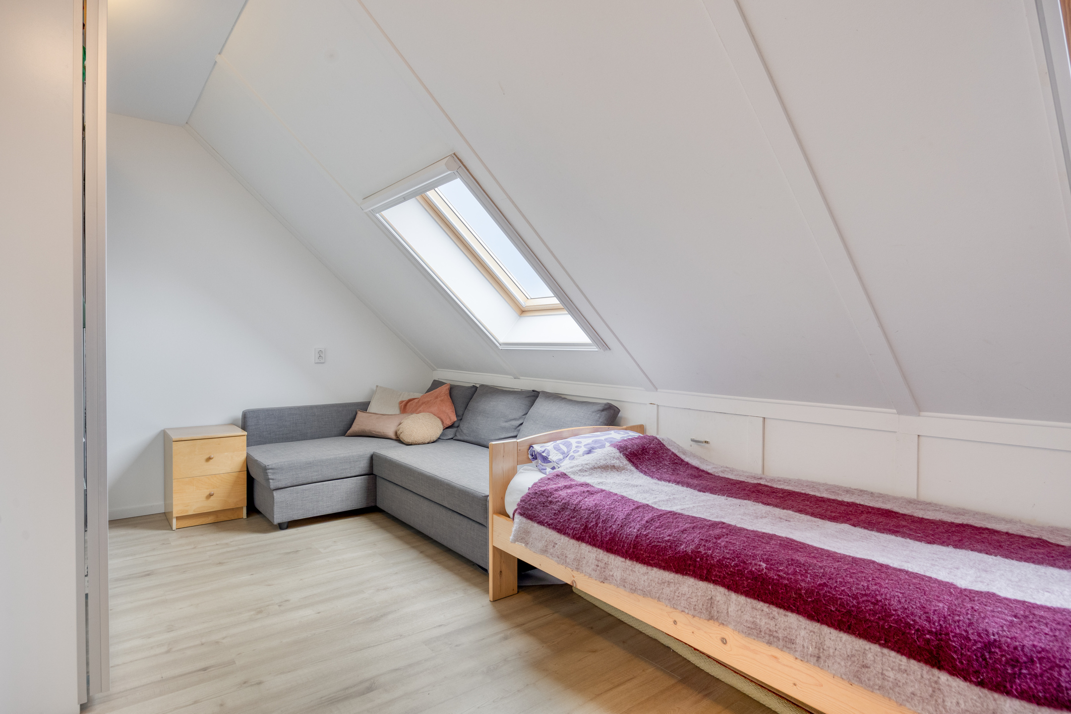 – dankzij de hoge nok en meerdere dakramen is er veel licht en ruimte, ideaal als slaap-, werk-, hobby- of logeerkamer;