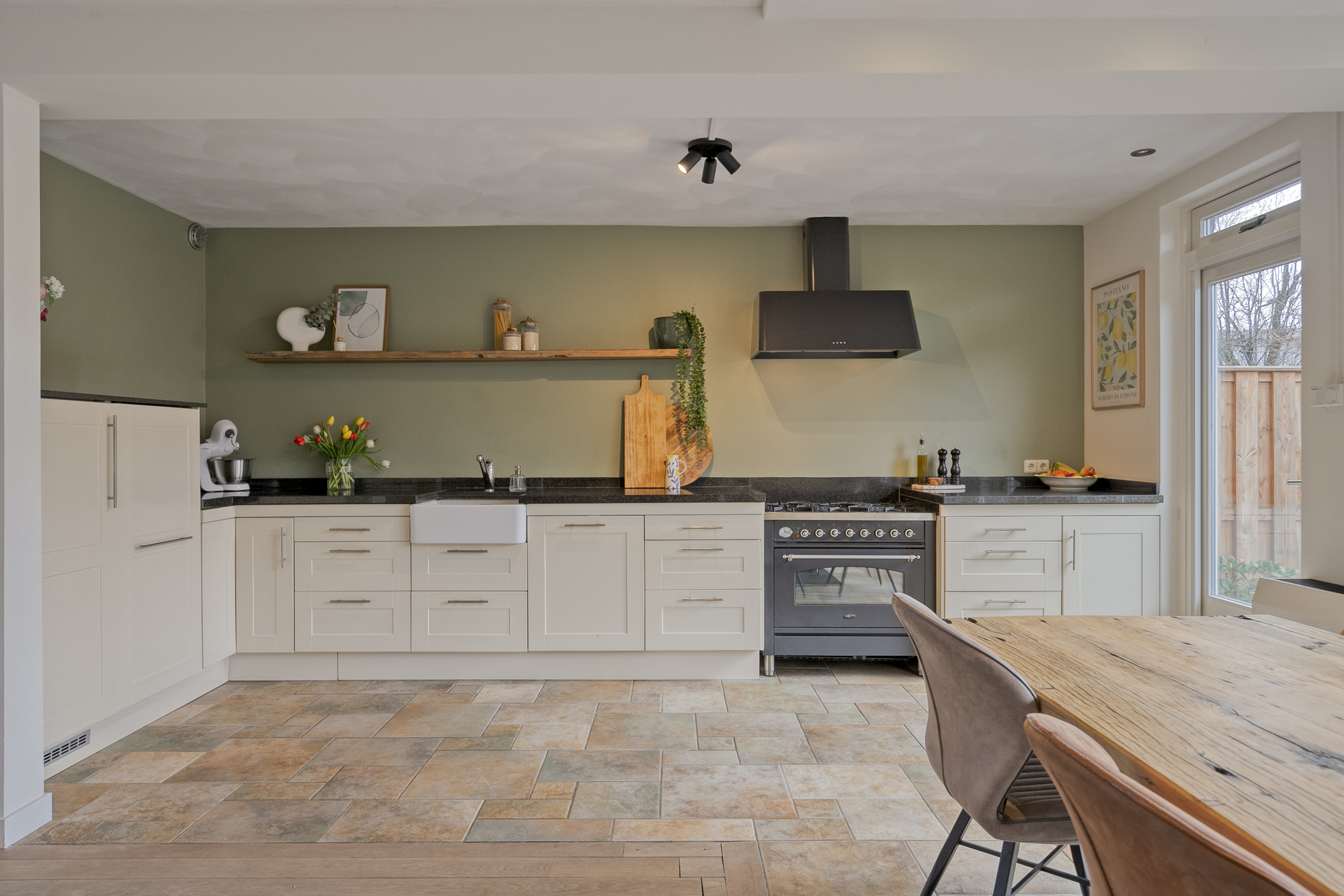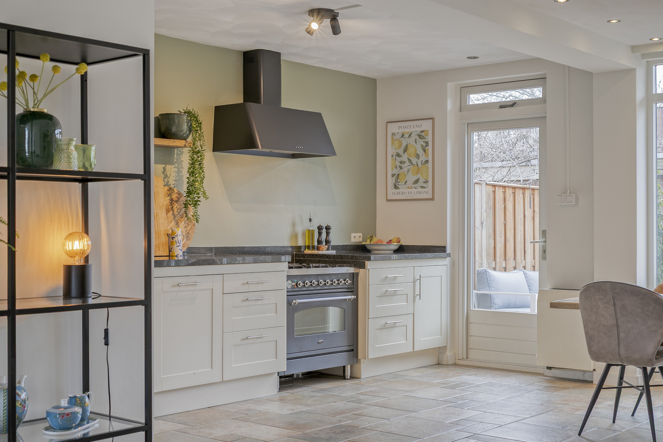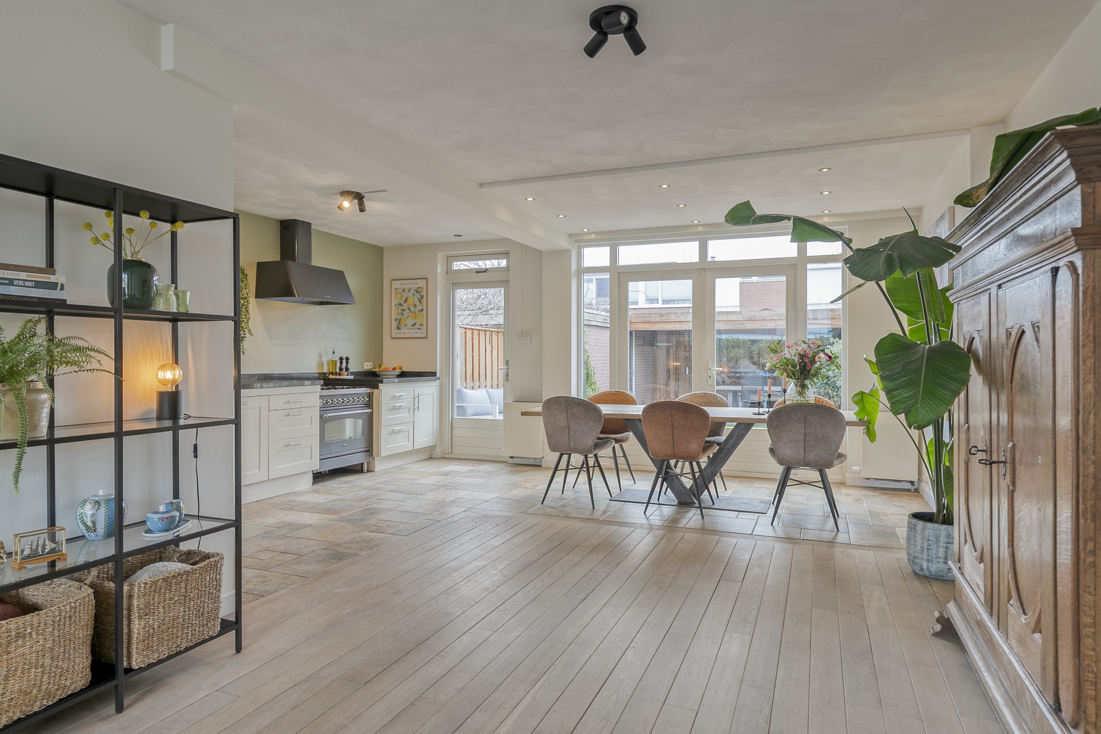 – brede openslaande deuren én een aparte loopdeur zorgen voor een fijne verbinding met het terras en de tuin.