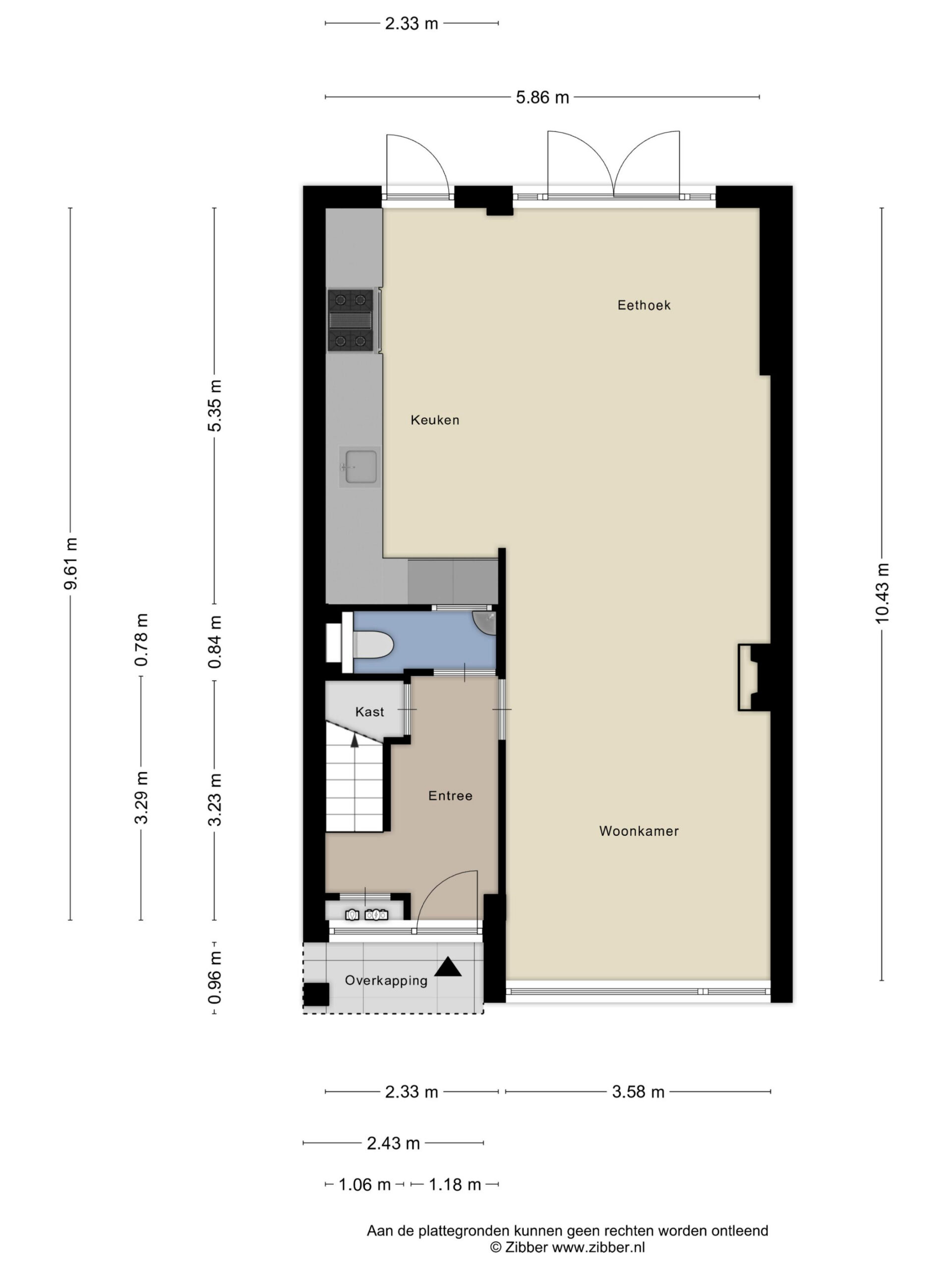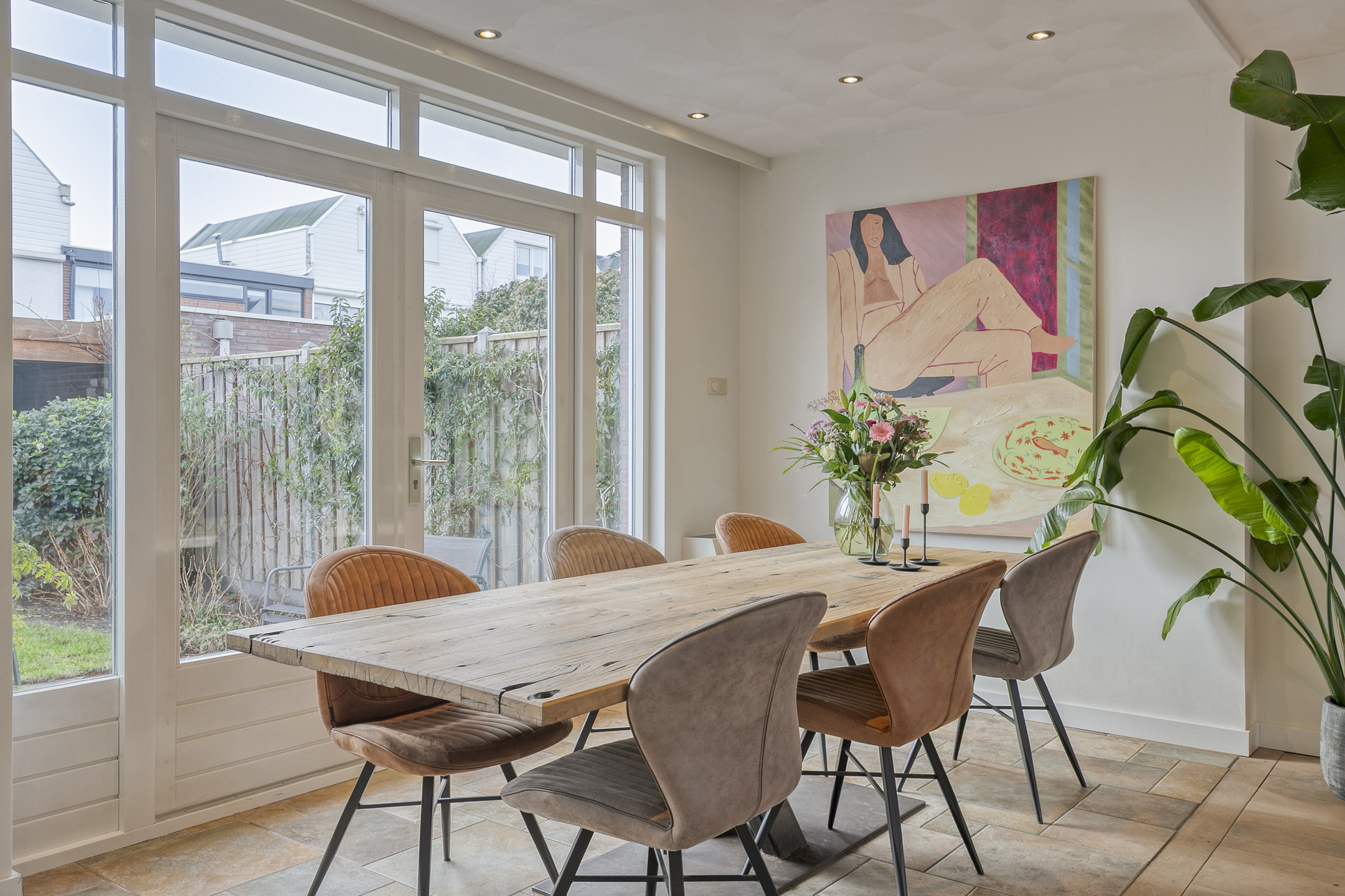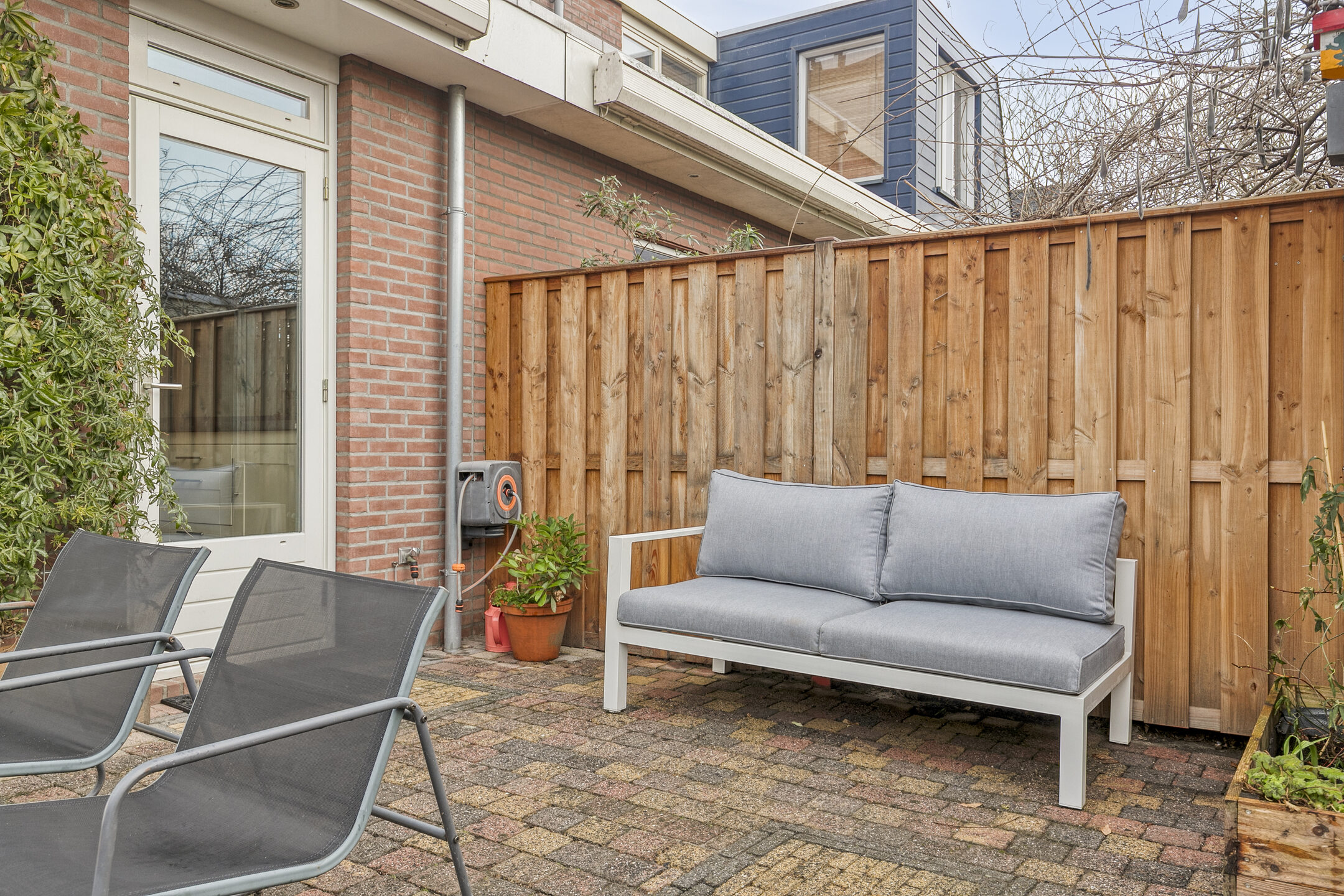 – brede openslaande deuren én een aparte loopdeur zorgen voor een fijne verbinding met het terras en de tuin.