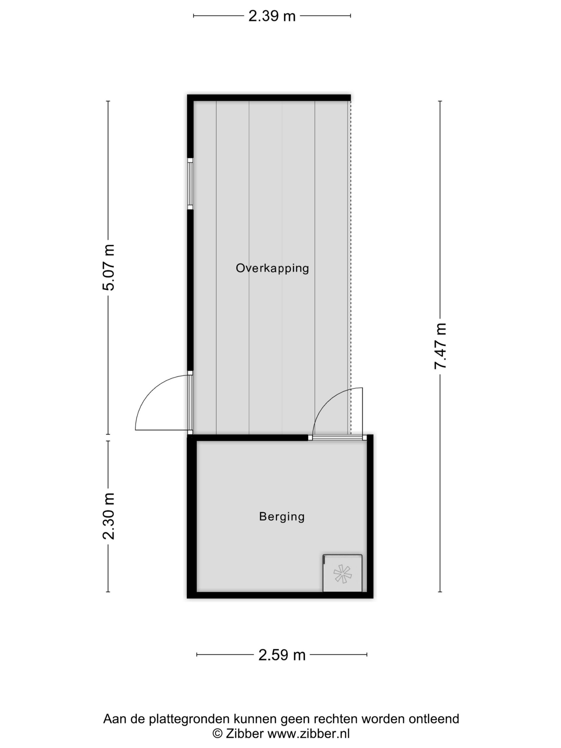 - Oppervlakte gebouwgebonden ca. 2 m2