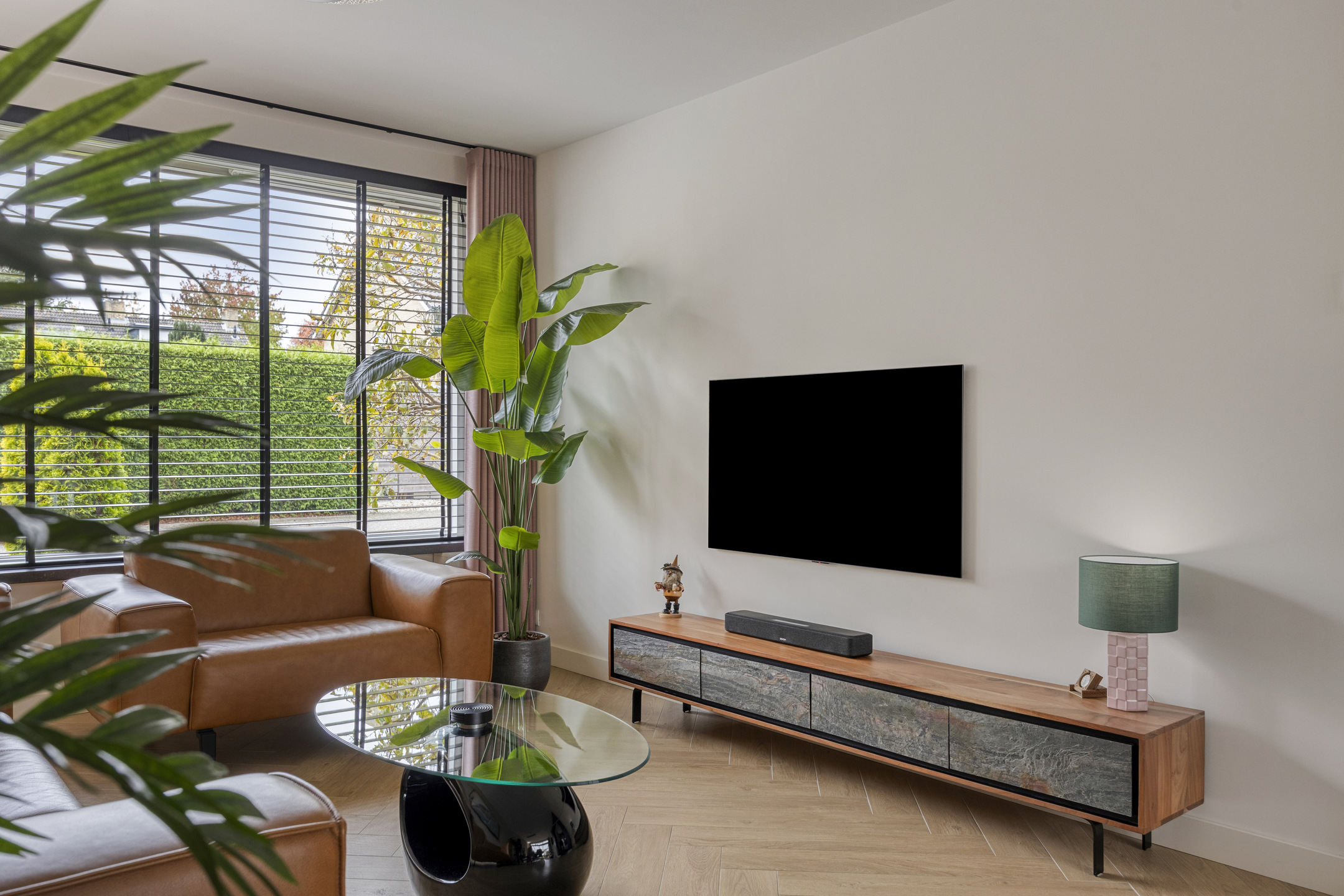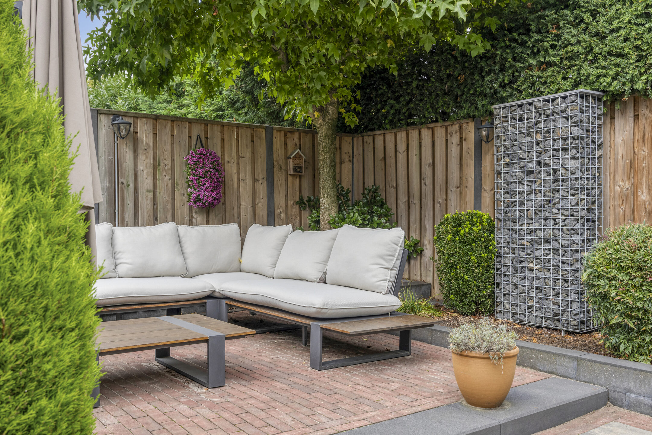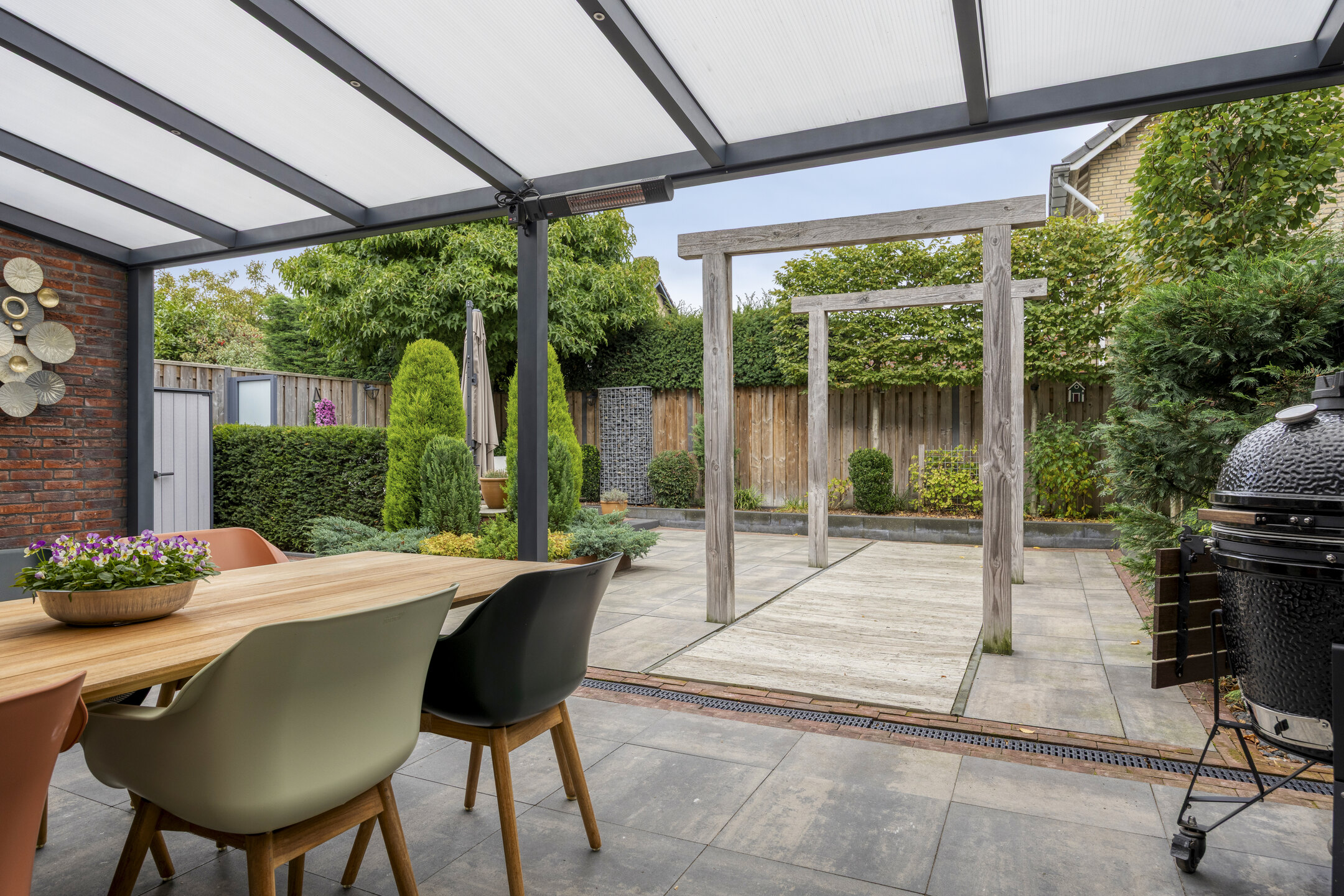 – de tuin is volledig opnieuw aangelegd met meerdere terrassen, sfeervolle verlichting en een aluminium overkapping met tv-aansluiting, waardoor je hier het hele jaar door comfortabel buiten kunt zitten;